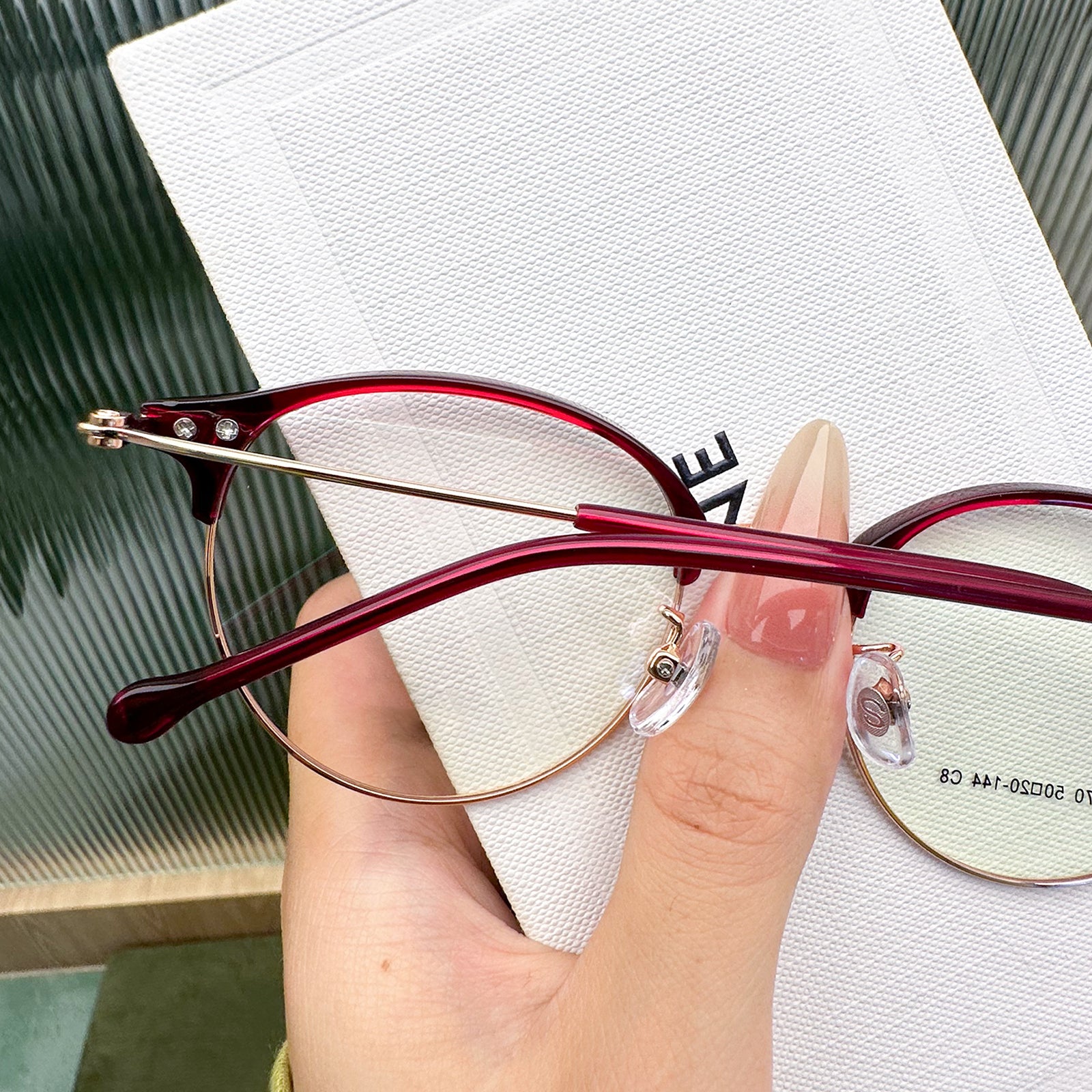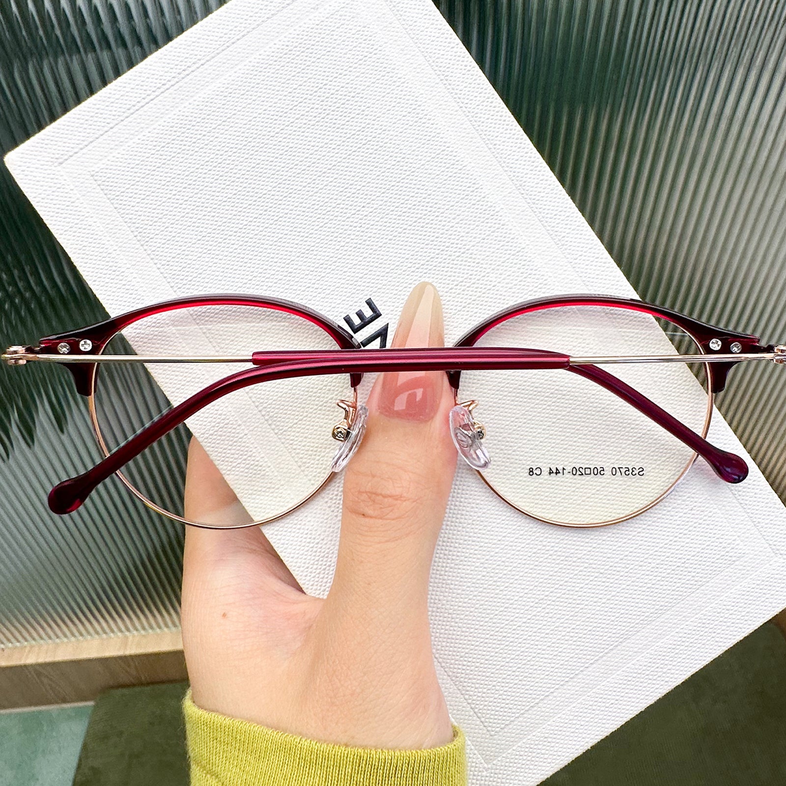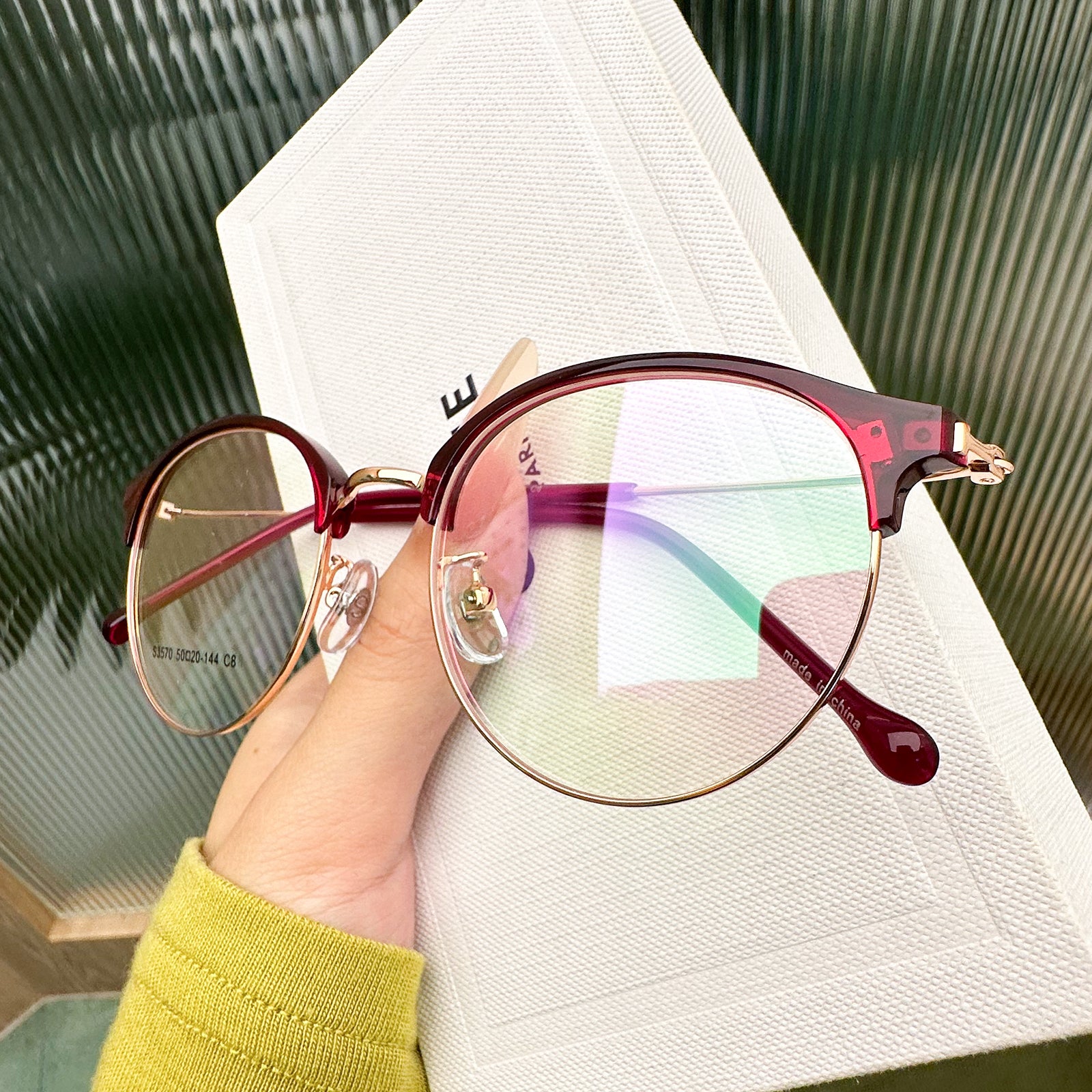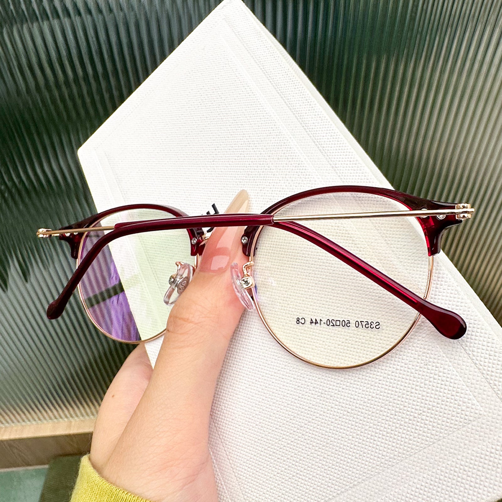 Red leopard-print half-rim metal glasses, the perfect blend of boldness and sophistication. Designed for the confident business lady, these frames add a touch of fierce elegance while maintaining a professional and polished look.