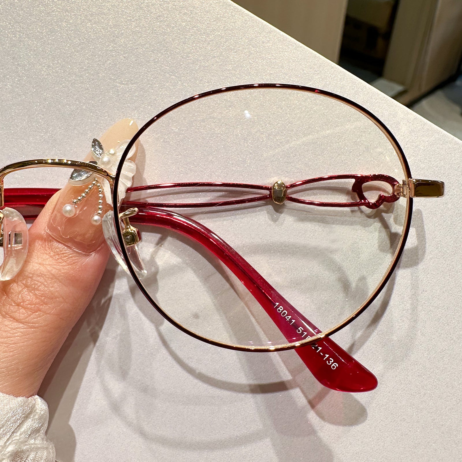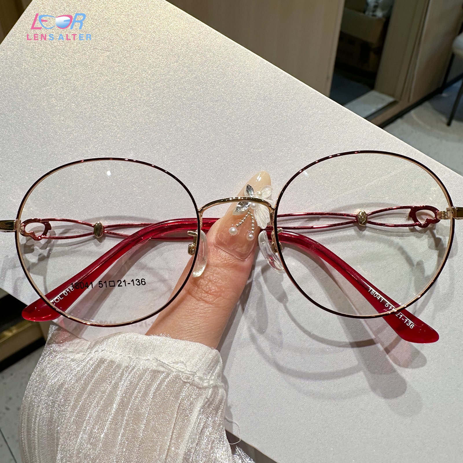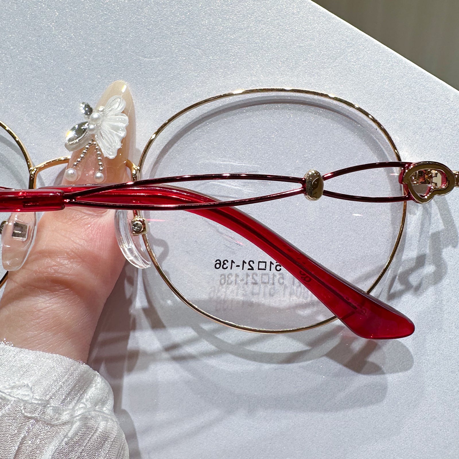 Embrace elegance and charm with our oval glasses featuring delightful love patterns on the temples. These glasses blend classic oval frames with a romantic touch, perfect for those who appreciate stylish eyewear with a whimsical twist.