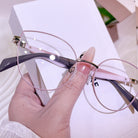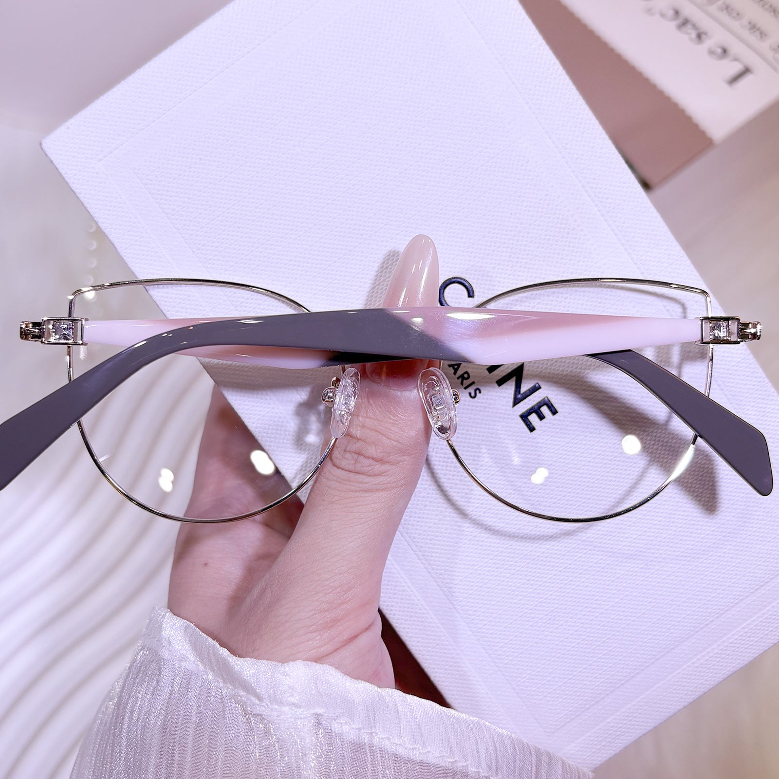 These cat-eye metal frame glasses feature a sleek, fluid color finish on the temples that adds a refined touch. The elegant silhouette and smooth detailing make them a perfect choice for women who appreciate sophistication with a modern twist.