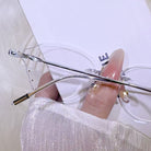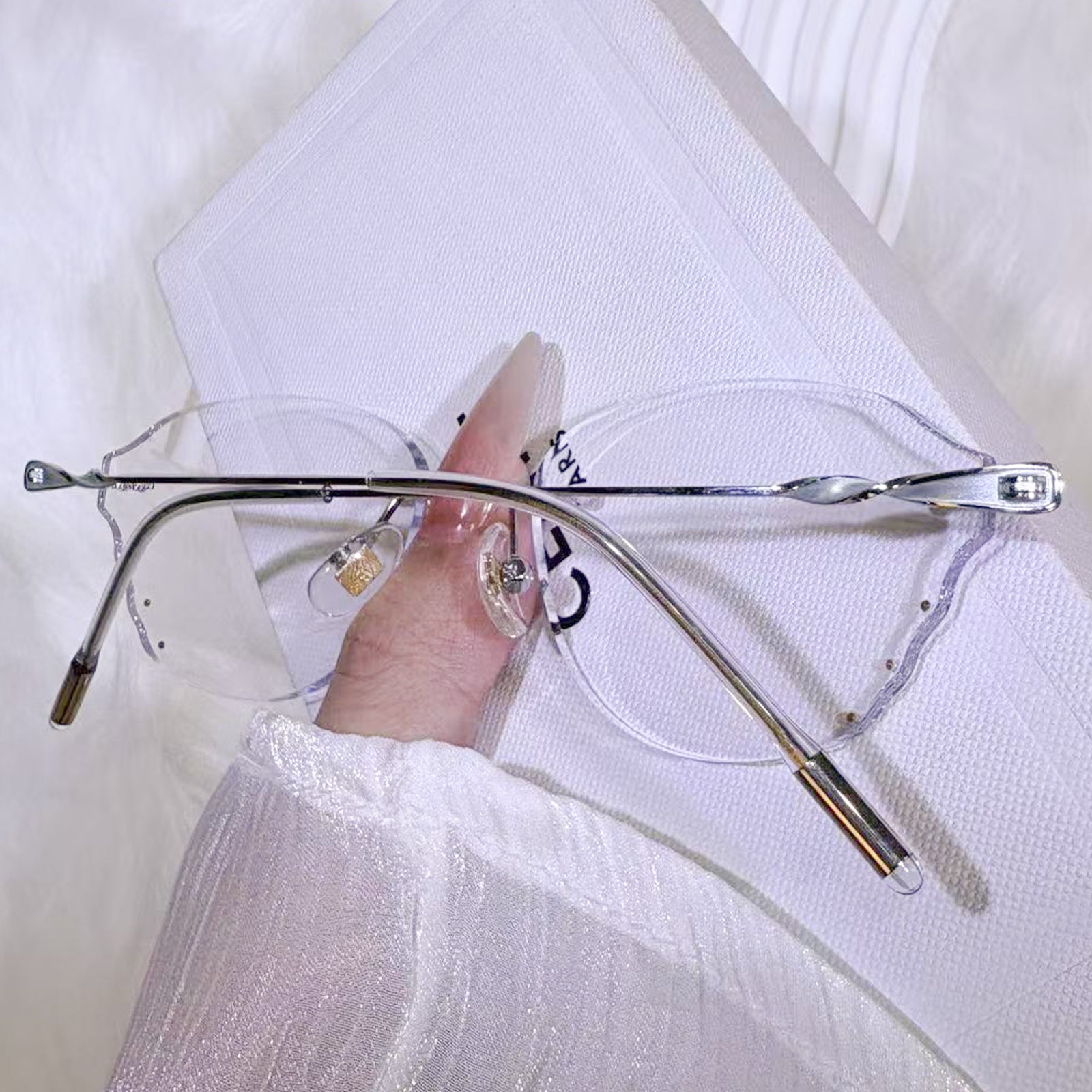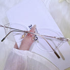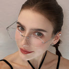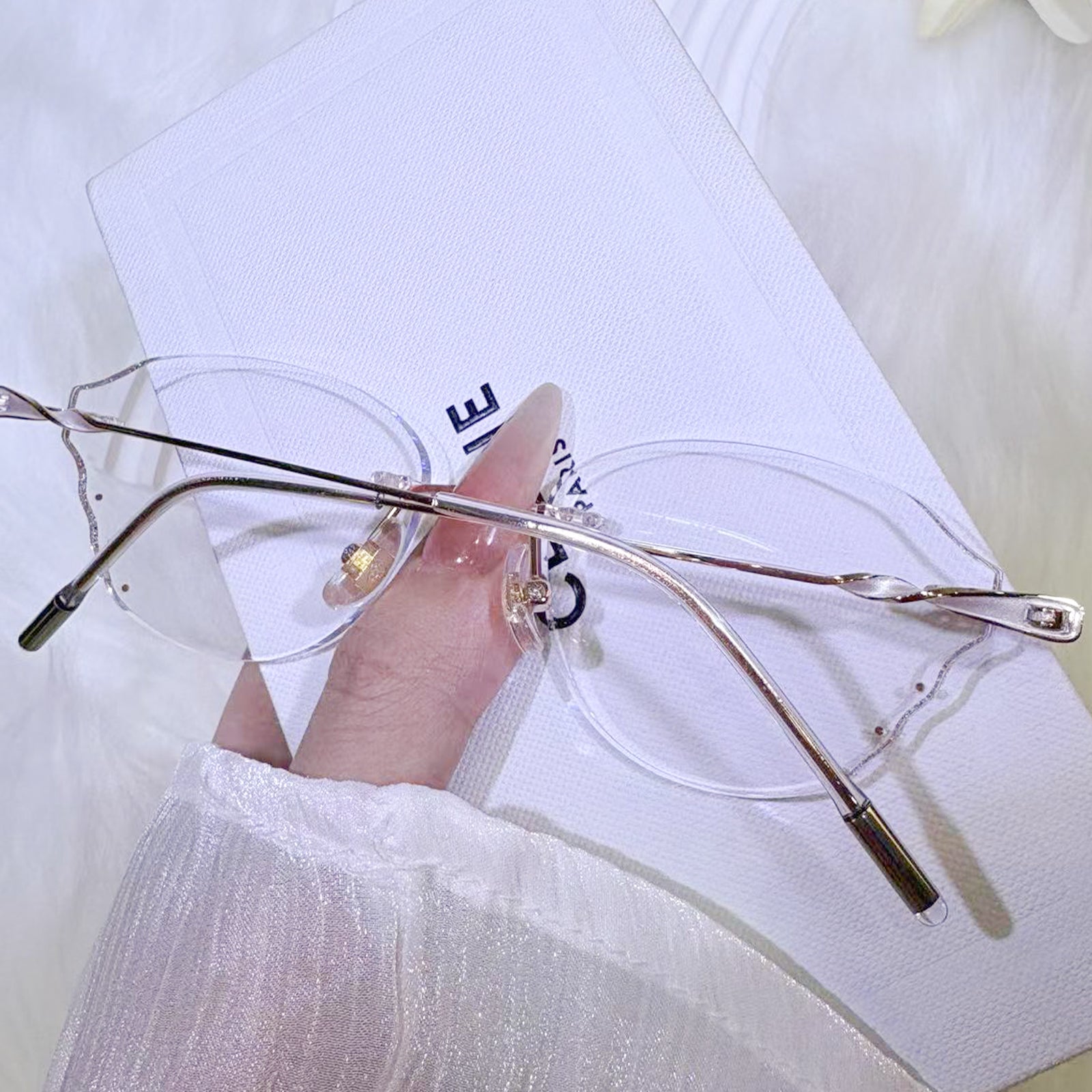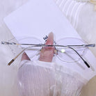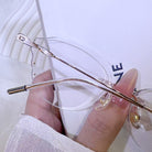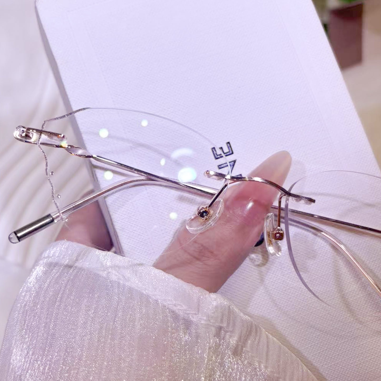 Inspired by delicate butterfly wings, these rimless glasses feature sparkling glitter and diamond accents on the lenses for a truly graceful look. Crafted from metal, they combine lightweight durability with refined elegance. Perfect for those who want to make a sophisticated, eye-catching statement.