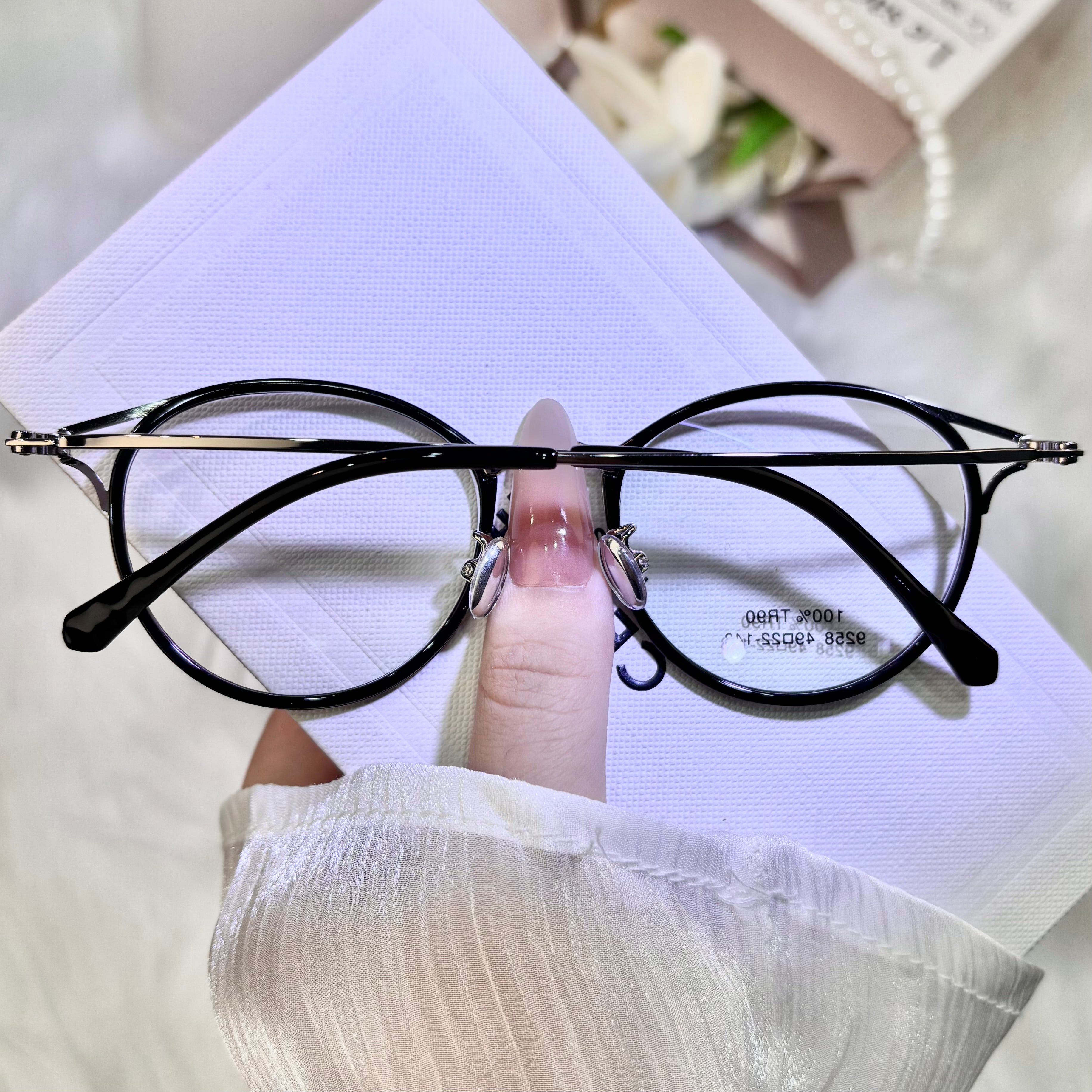 A harmonious fusion of playful charm and structural simplicity, these cat-eye glasses showcase the perfect balance between form and function. The featherlight TR frame and softened angles create a look of effortless grace—for those who believe true style lies in details that whisper rather than shout.