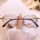 A symphony of structured elegance, these metal glasses redefine minimalism through their geometric composition. The interplay of sharp angles and smooth metal surfaces offers a look that is both boldly contemporary and effortlessly wearable—for the woman who believes true style lies in the perfect balance of form and function.