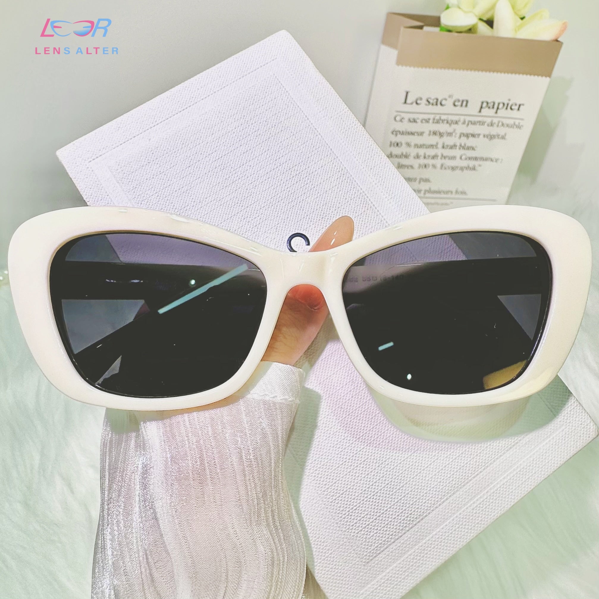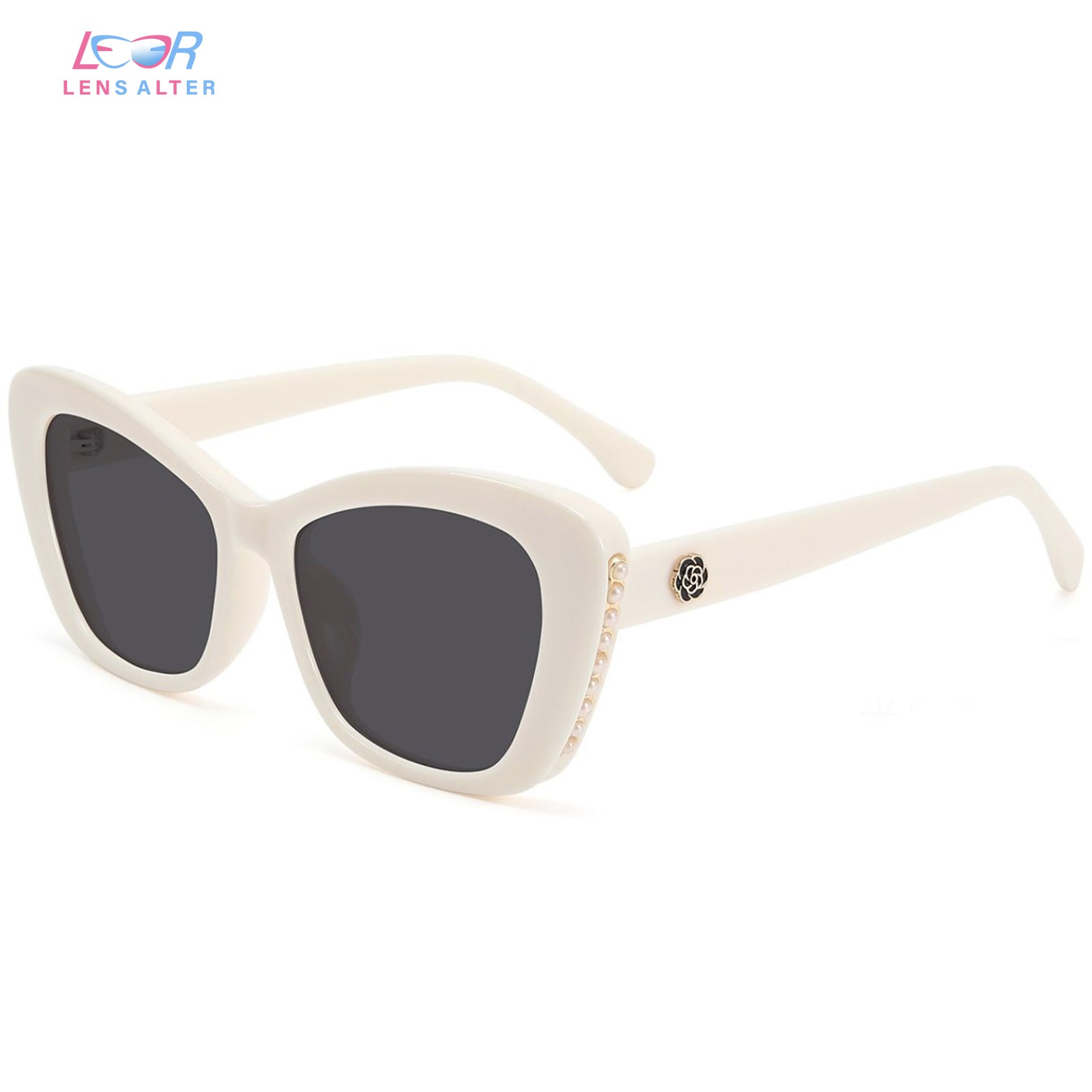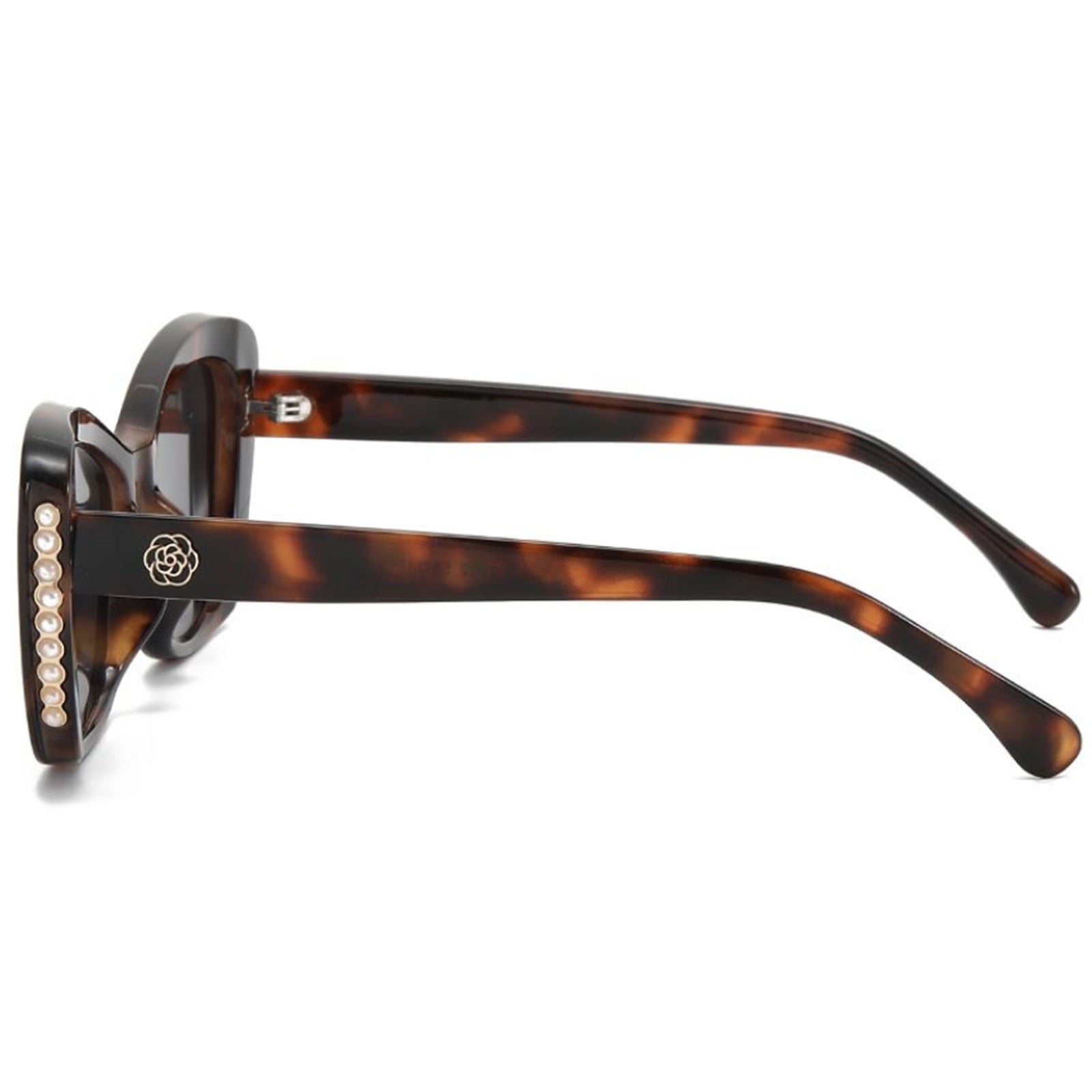 Sleek cat-eye sunglasses crafted from PC material, featuring elegant pearl detailing along the lenses and romantic rose accents on the temples. A perfect fusion of modern sophistication and timeless femininity.