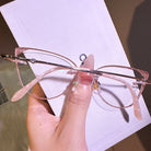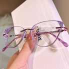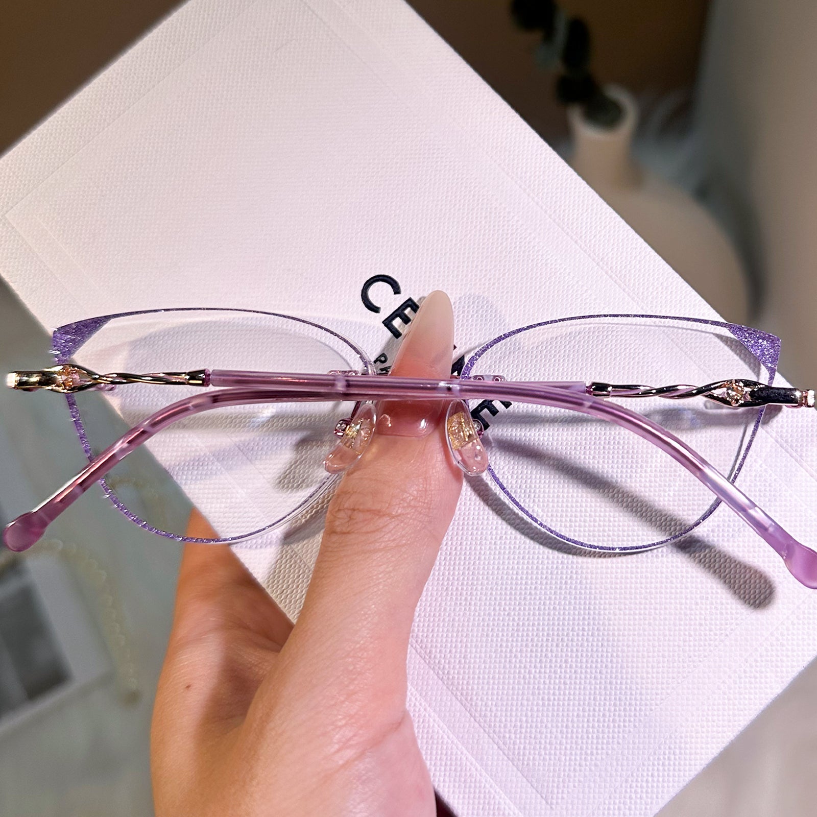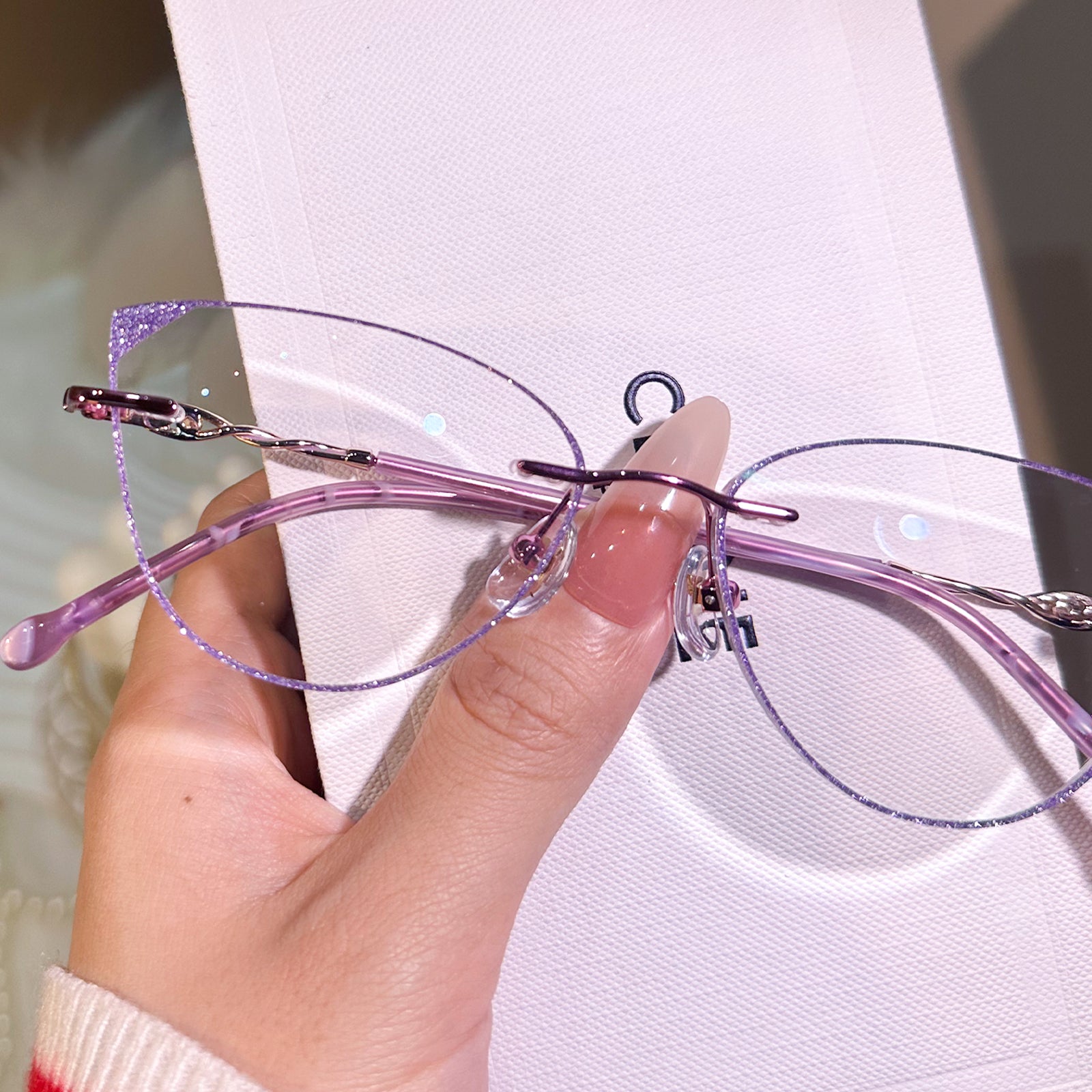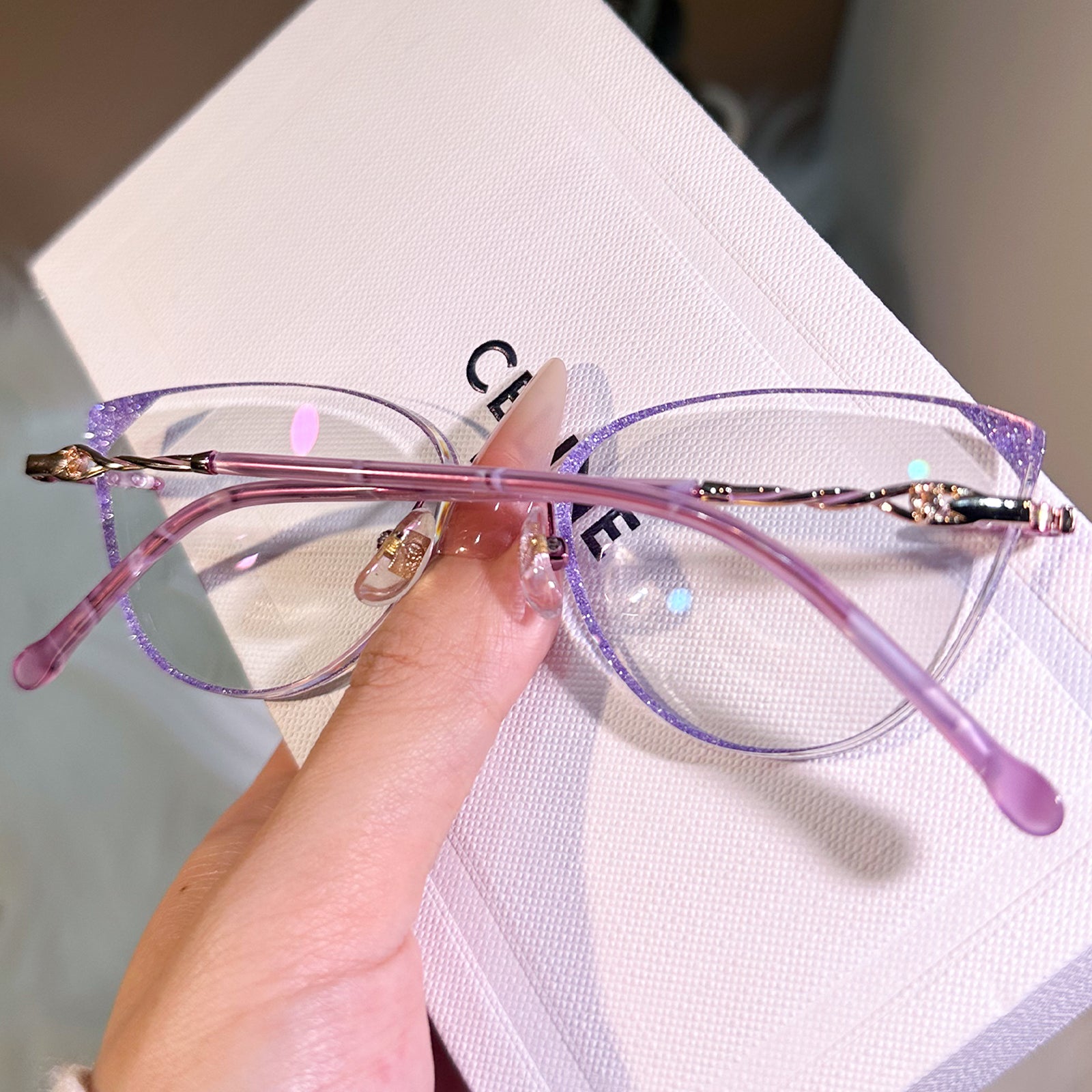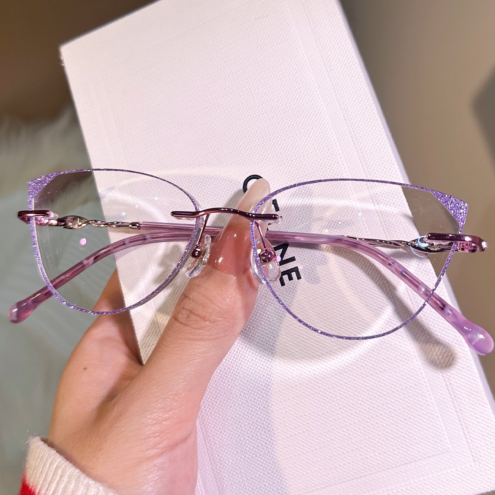 Rimless cat-eye glasses redefine elegance with their sleek design and dazzling gemstone-adorned temples. Chic, luxurious, and effortlessly glamorous—perfect for making a bold fashion statement!
