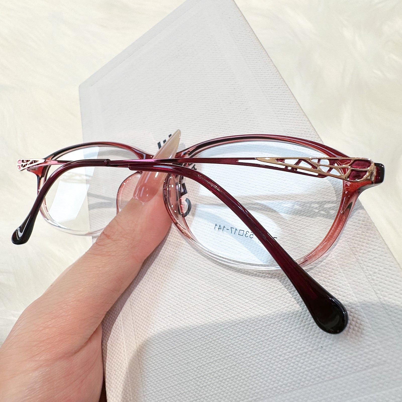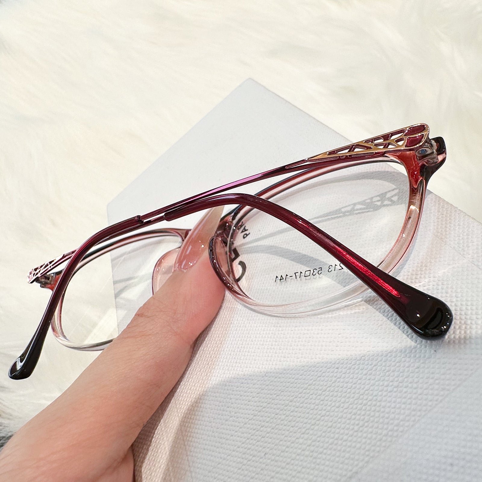 These narrow frames offer a sleek and modern design, enhanced by beautifully detailed leaf-like patterns on the temples. The intricate craftsmanship adds a touch of nature-inspired elegance, making these glasses perfect for those who love understated sophistication with a dash of refinement.
