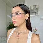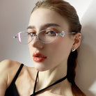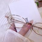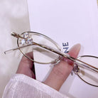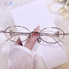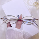 These Y2K-inspired oval frame glasses feature a sleek metal build with a glossy, high-quality finish that radiates style. The addition of sparkling diamonds on the temples adds a luxurious touch, making them both fashionable and eye-catching.