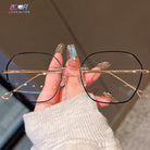 This pair of rimless glasses is sophisticated and modern, with a refined look. The gold metal temples and bridge give it a classy look, while the rimless design only accentuates its sophisticated and eclectic style. Simple yet luxurious, these glasses go with any outfit, accentuating the wearer's facial features without being too overbearing.