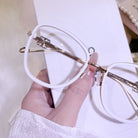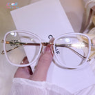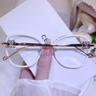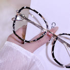 Minimalist statement, maximum contrast. This metal cat-eye frame in stark black and white redefines modern elegance. Its sharp lines and high-contrast palette create an unforgettable silhouette—for the woman who wears her confidence as clearly as her colors.