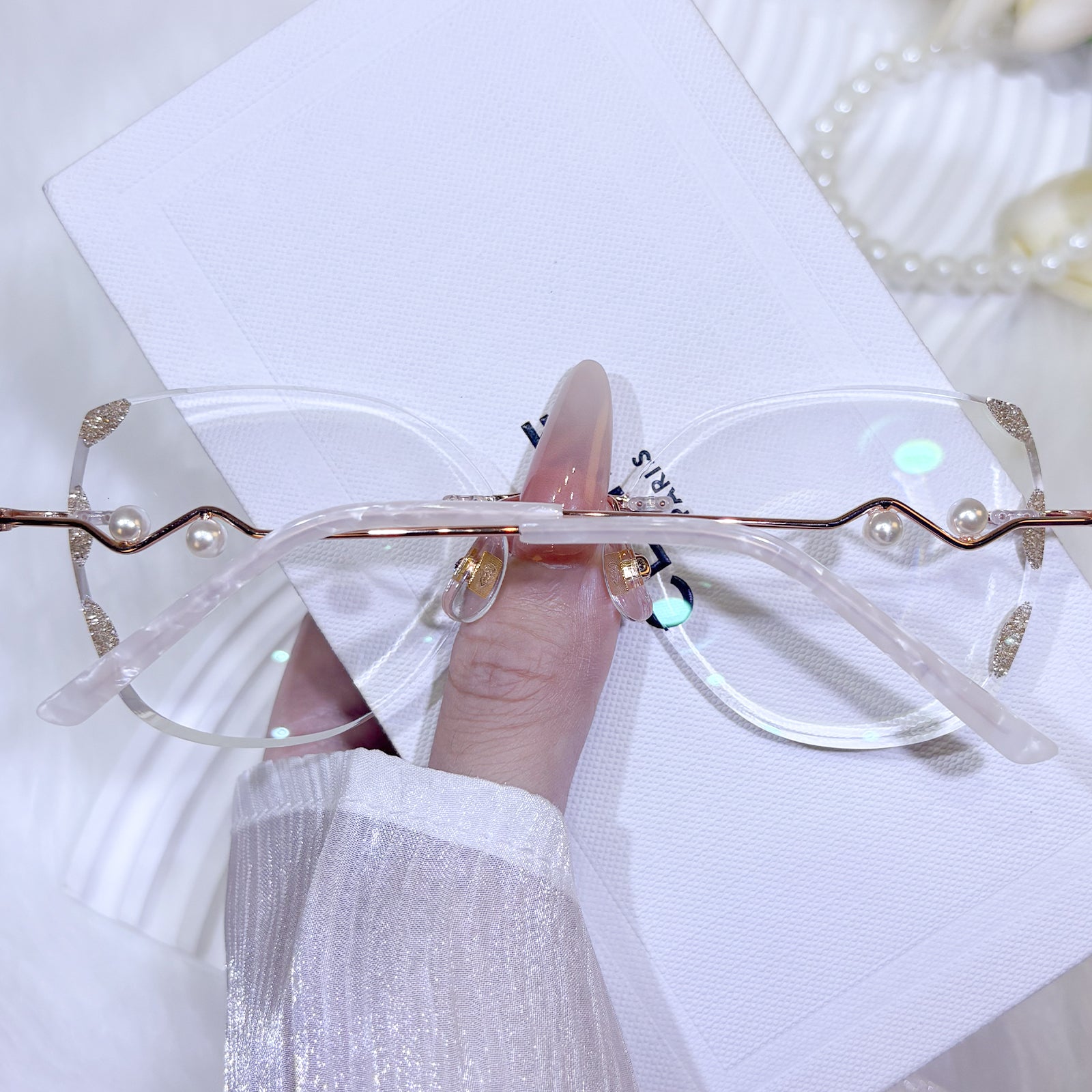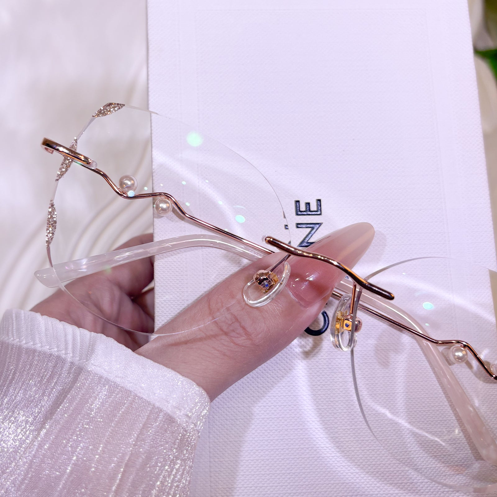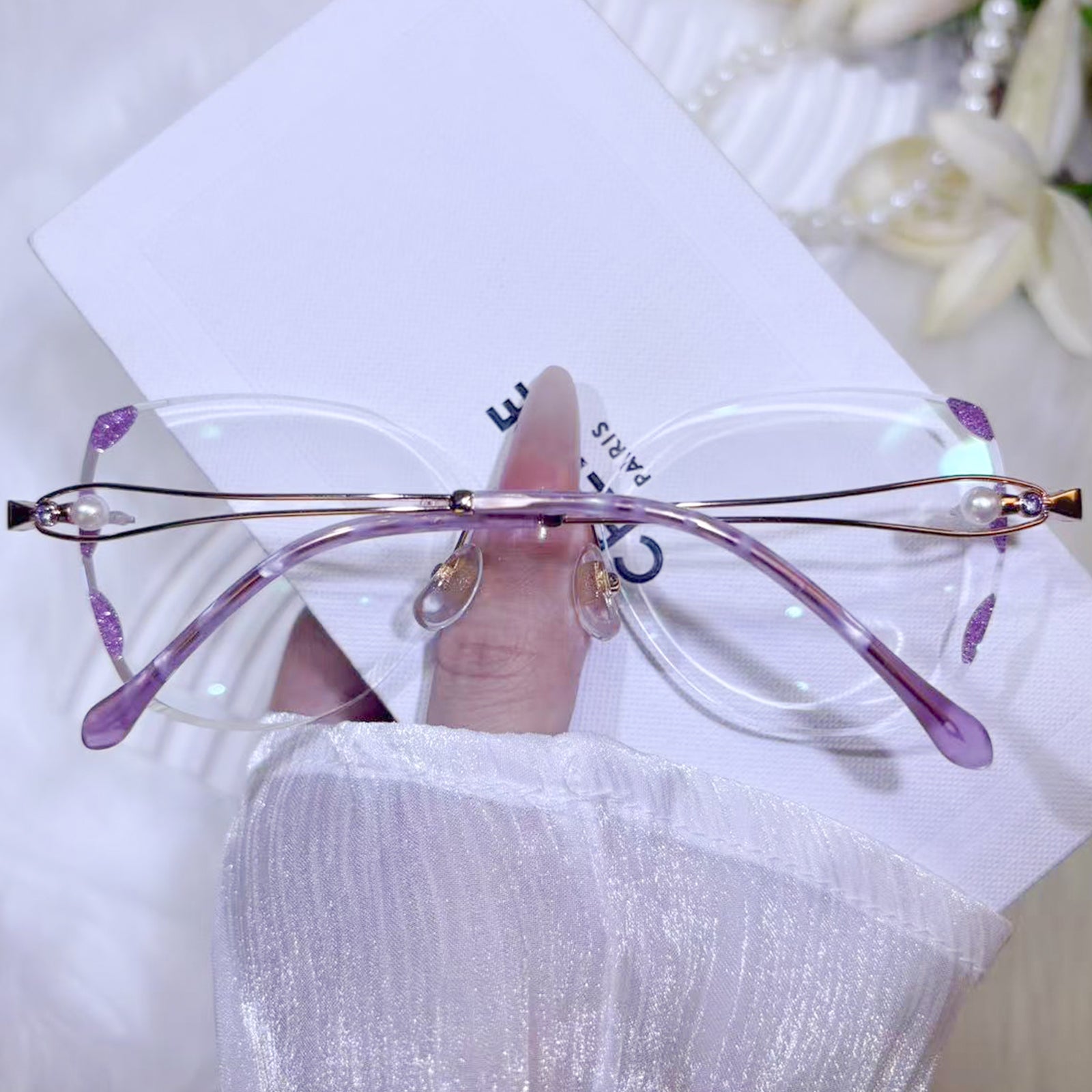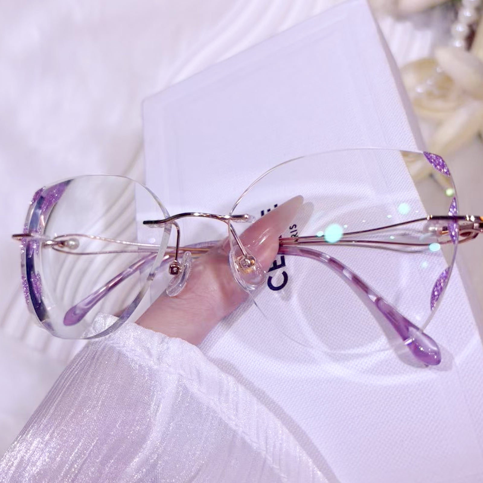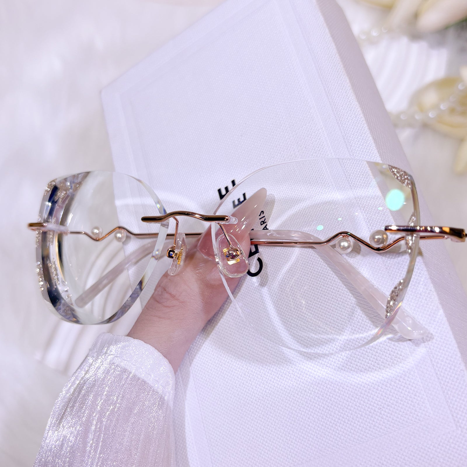 | Exclusive Design |These rimless cat-eye glasses feature lenses adorned with a touch of shimmering glitter, creating a dazzling bling-bling effect. Their glamorous design makes them a bold yet elegant statement piece for women who love sparkle and sophistication.
