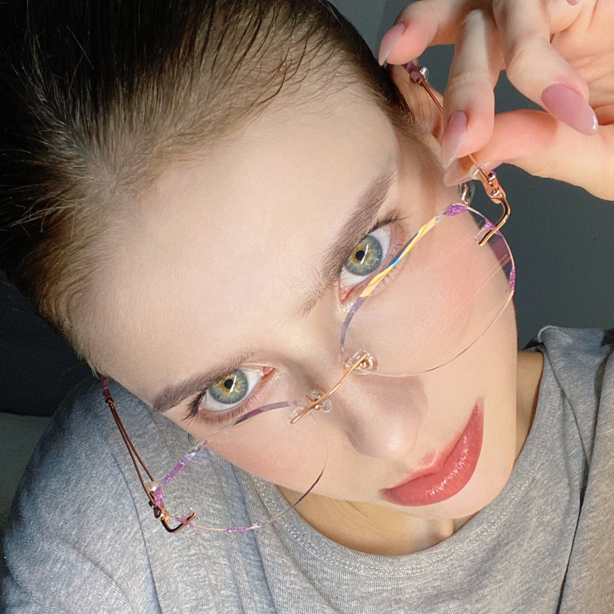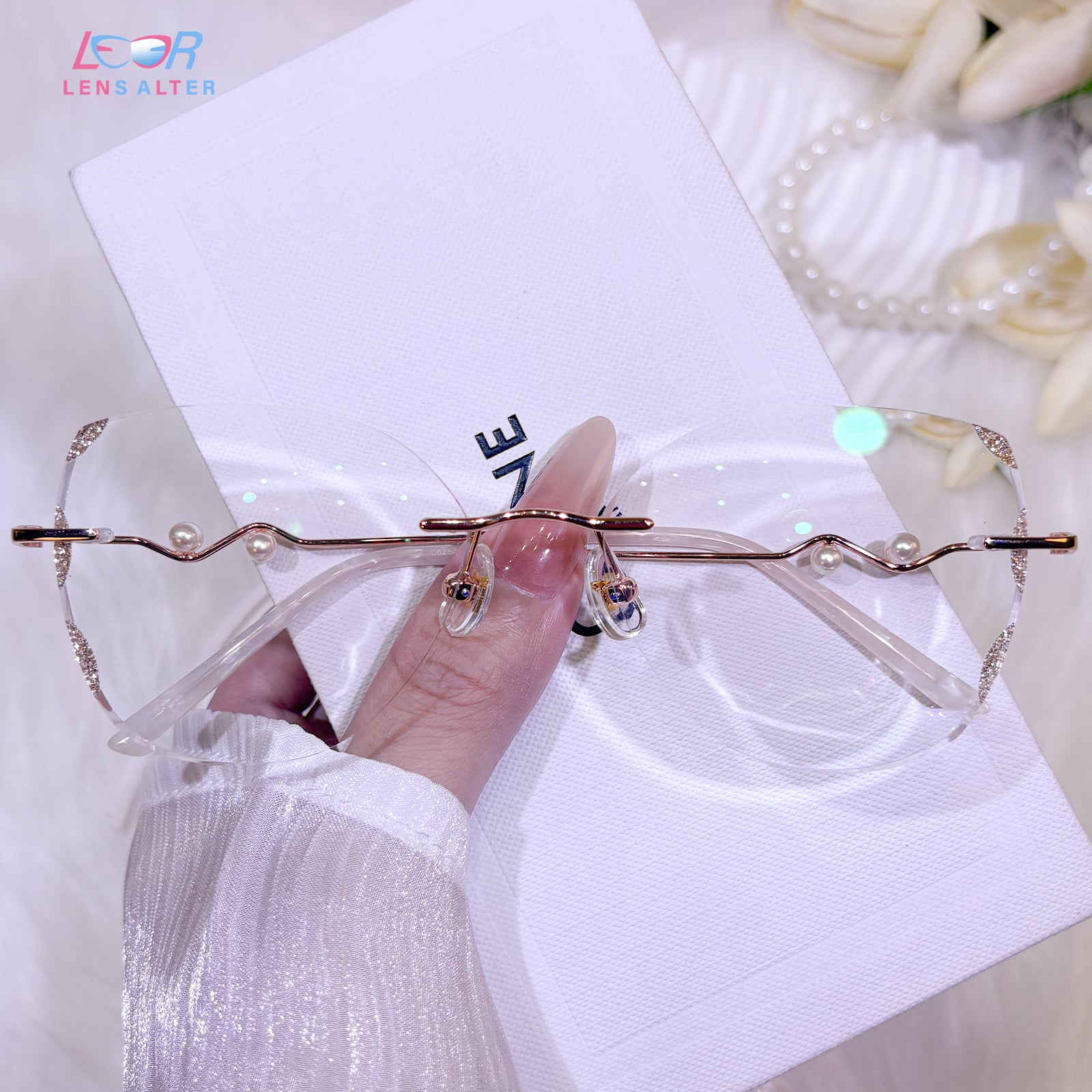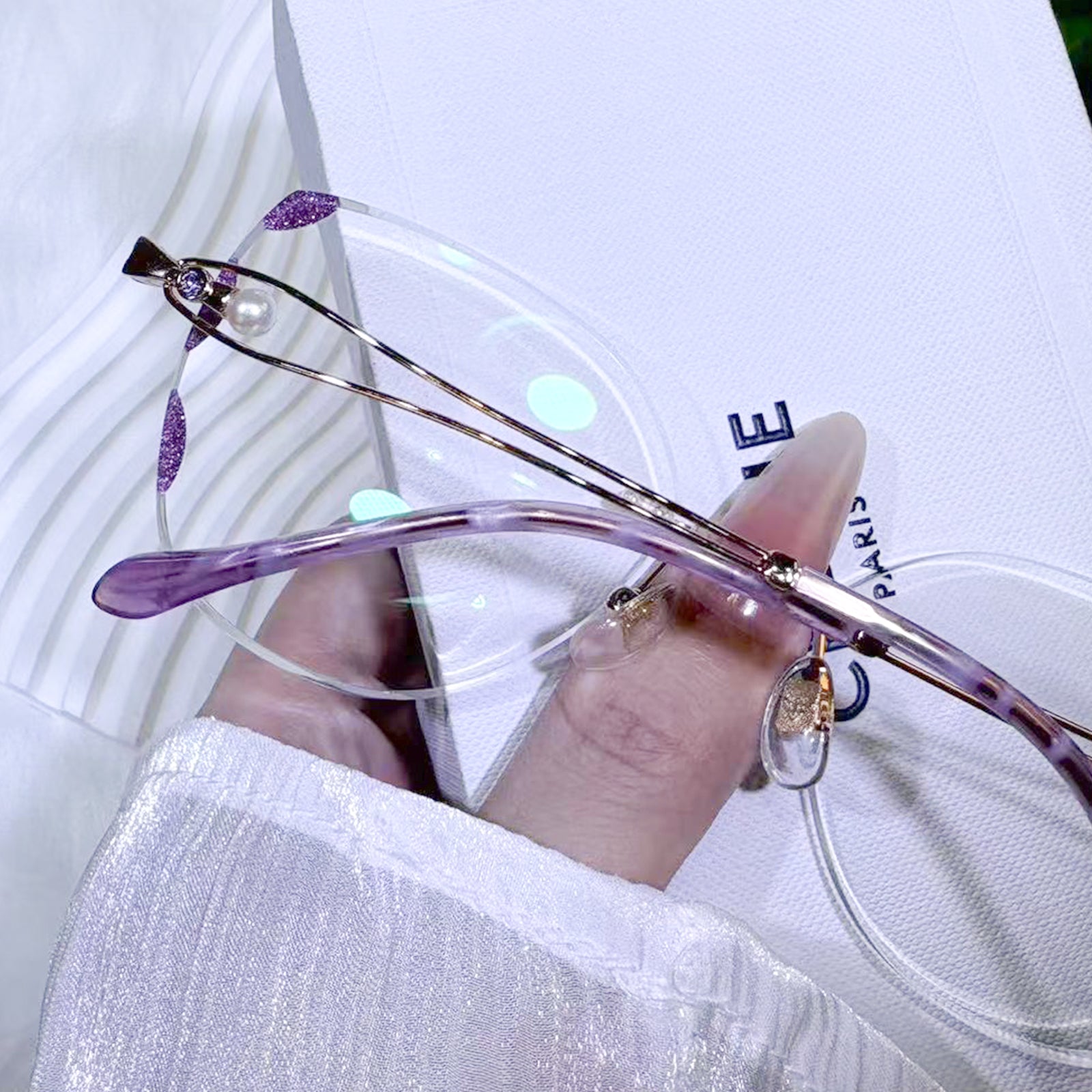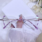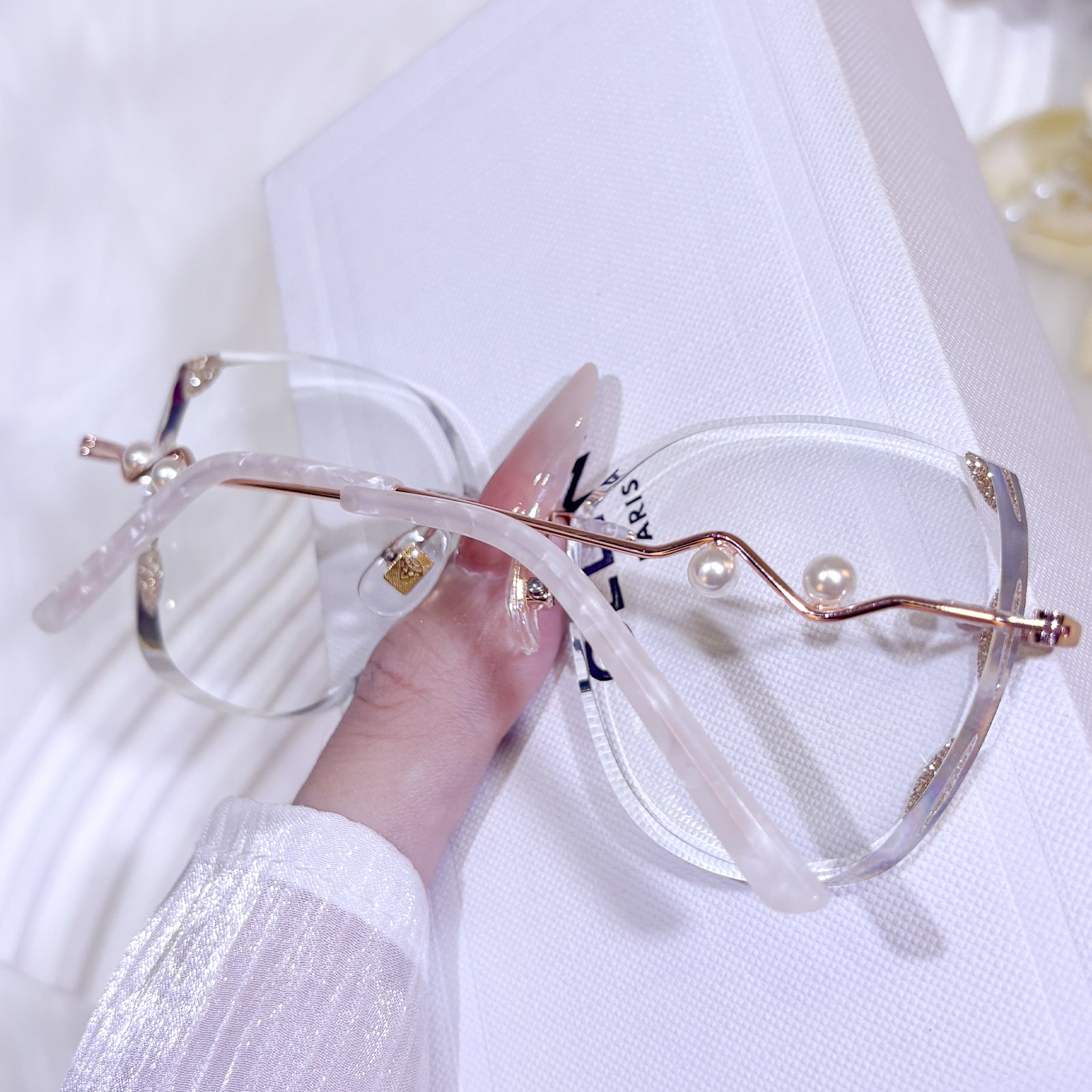 | Exclusive Design |These rimless cat-eye glasses feature lenses adorned with a touch of shimmering glitter, creating a dazzling bling-bling effect. Their glamorous design makes them a bold yet elegant statement piece for women who love sparkle and sophistication.