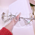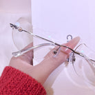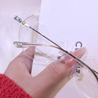 | Exclusive Design | Crafted as wearable jewelry for the eyes, these frameless glasses feature sculpted moon-phase lenses floating in delicate metalwork. The dual colorways—blushing rose and starlight silver—create an ensemble of cosmic elegance, perfect for the sophisticated woman whose style orbits between earthly refinement and celestial charm.