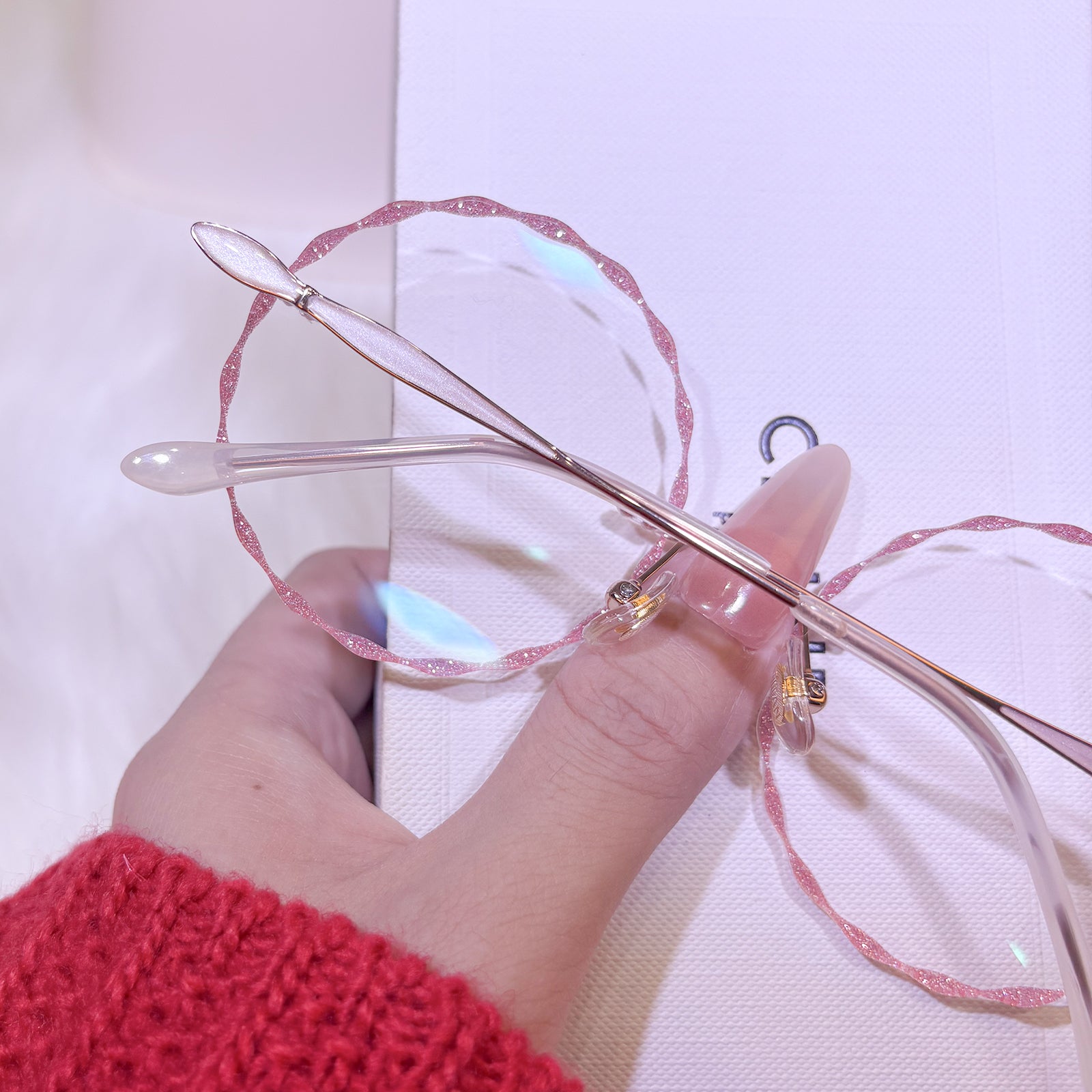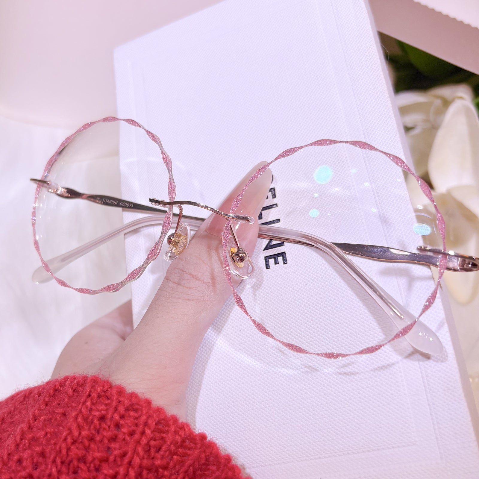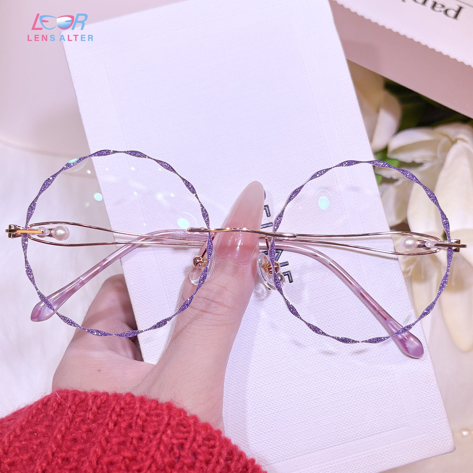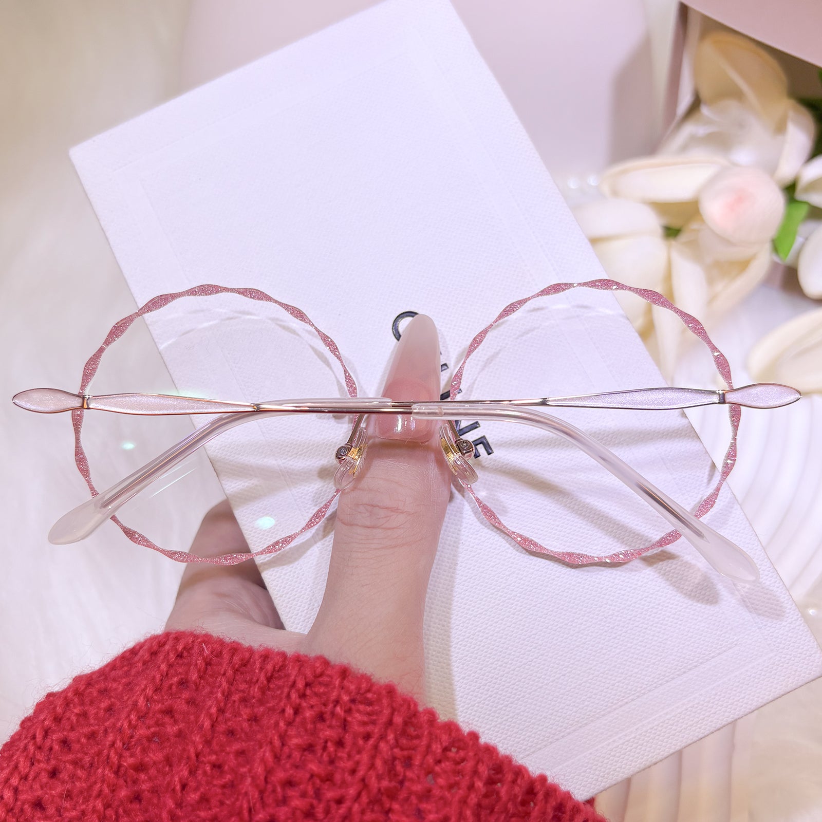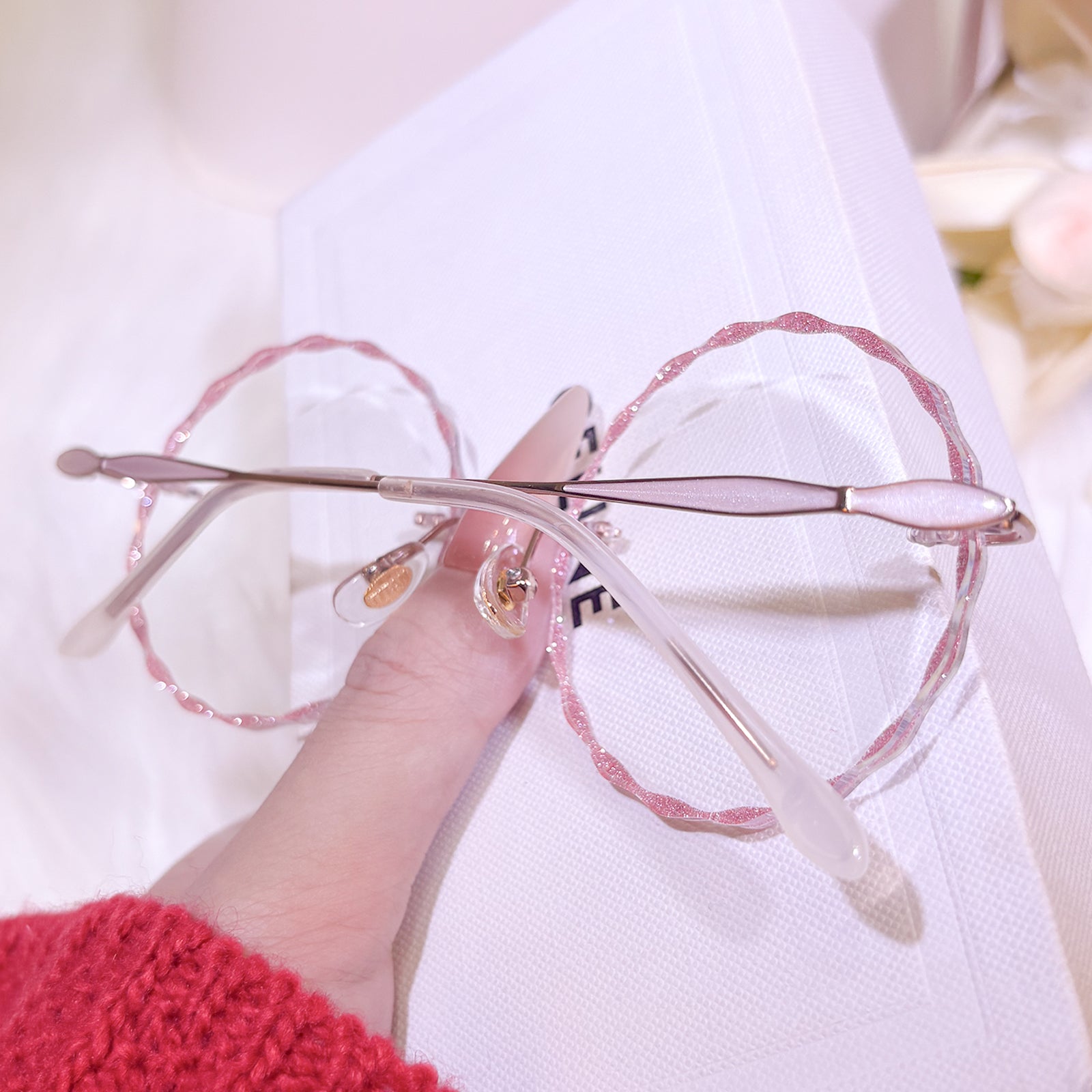 | Exclusive Design | These rimless round glasses feature a delicate pink metal frame and charming lace-shaped lenses, perfect for young women who love to express their playful and feminine side. Lightweight and stylish, Nora adds a unique touch to any outfit, making you stand out effortlessly.