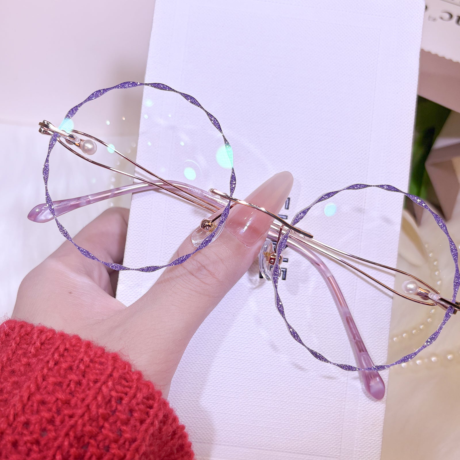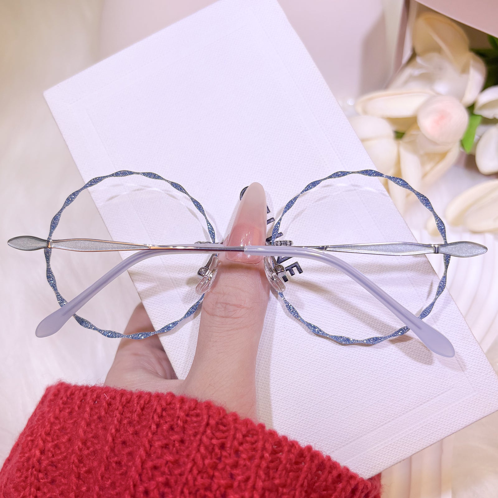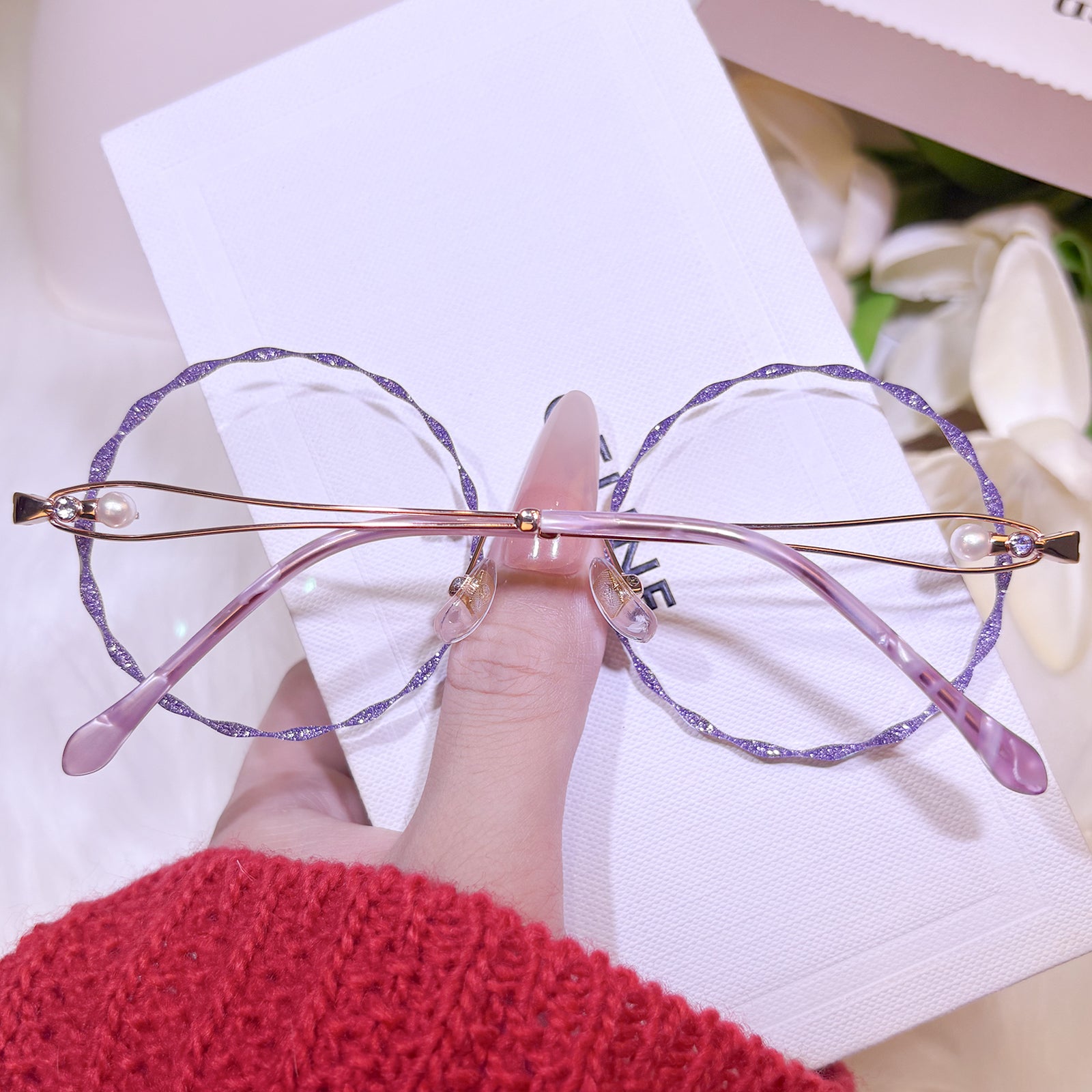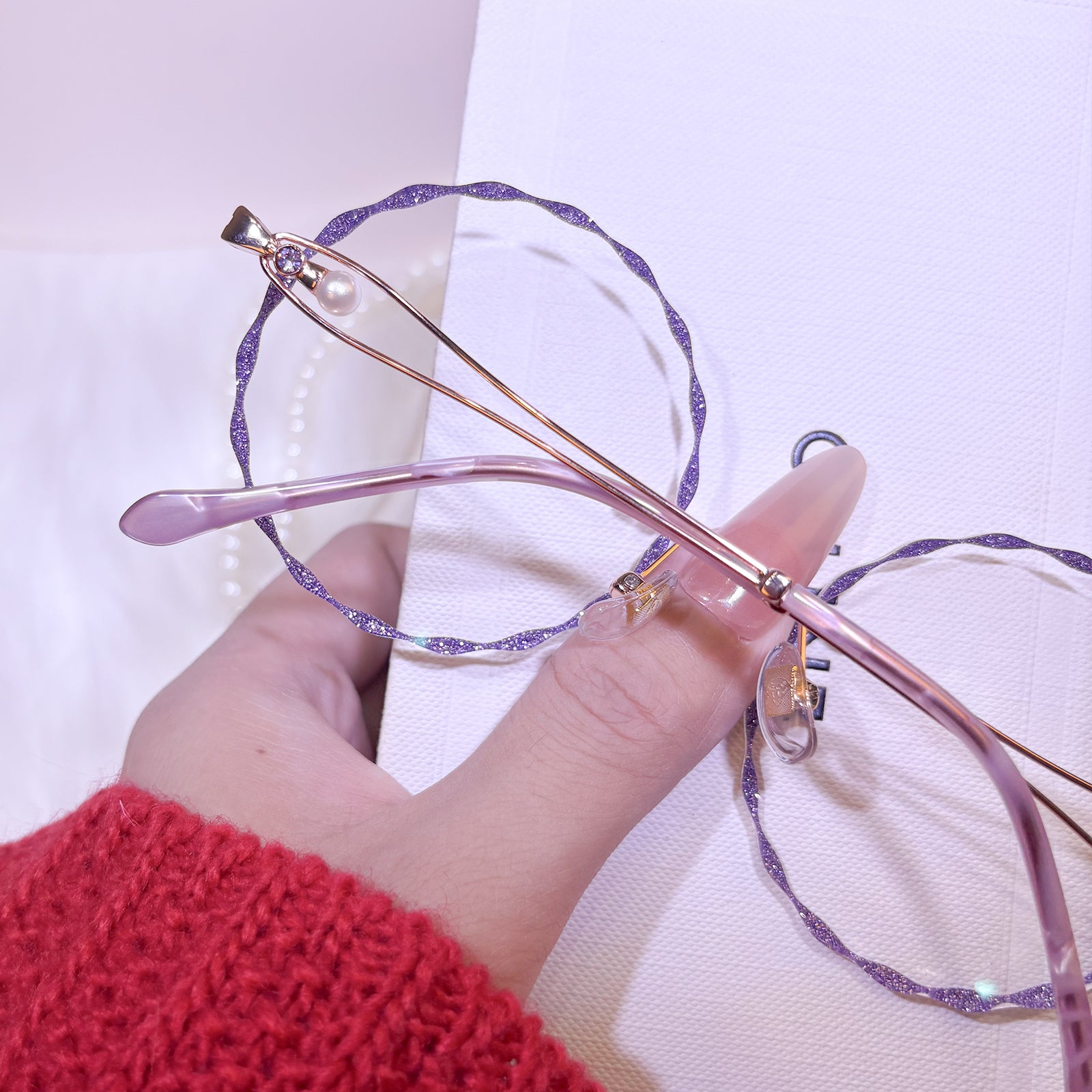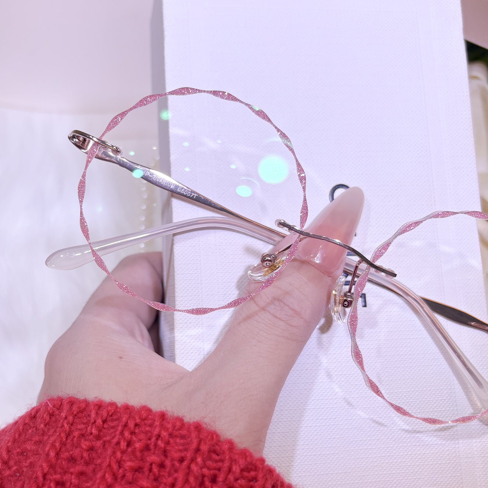 | Exclusive Design | These rimless round glasses feature a delicate pink metal frame and charming lace-shaped lenses, perfect for young women who love to express their playful and feminine side. Lightweight and stylish, Nora adds a unique touch to any outfit, making you stand out effortlessly.