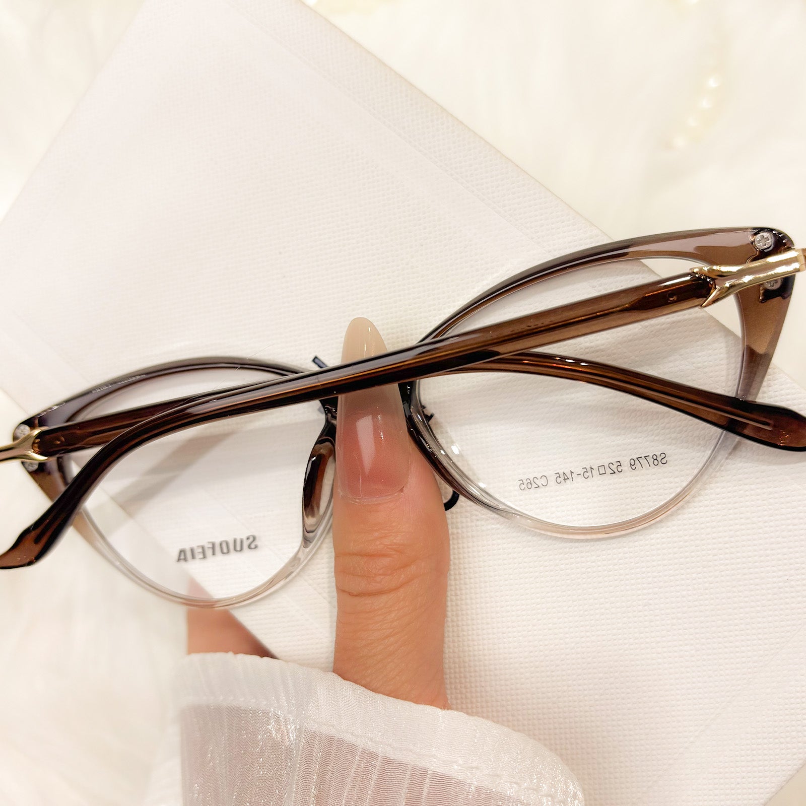 Designed to capture the magic of flight, this TR cat-eye glasses are shaped with gentle, wing-like curves that sweep upward in a soft brown ombré. Each frame feels airy and ethereal, as if painted with the soft tones of a forest butterfly—for the romantic spirit who believes style should be both grounded and free.