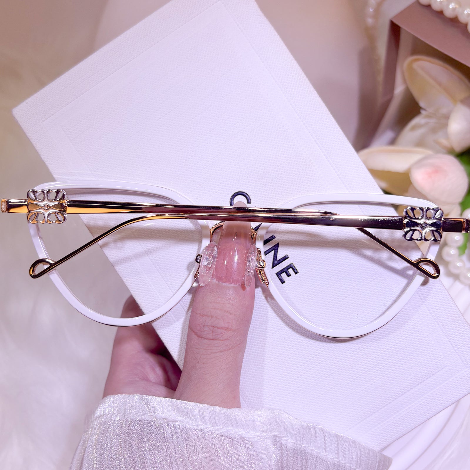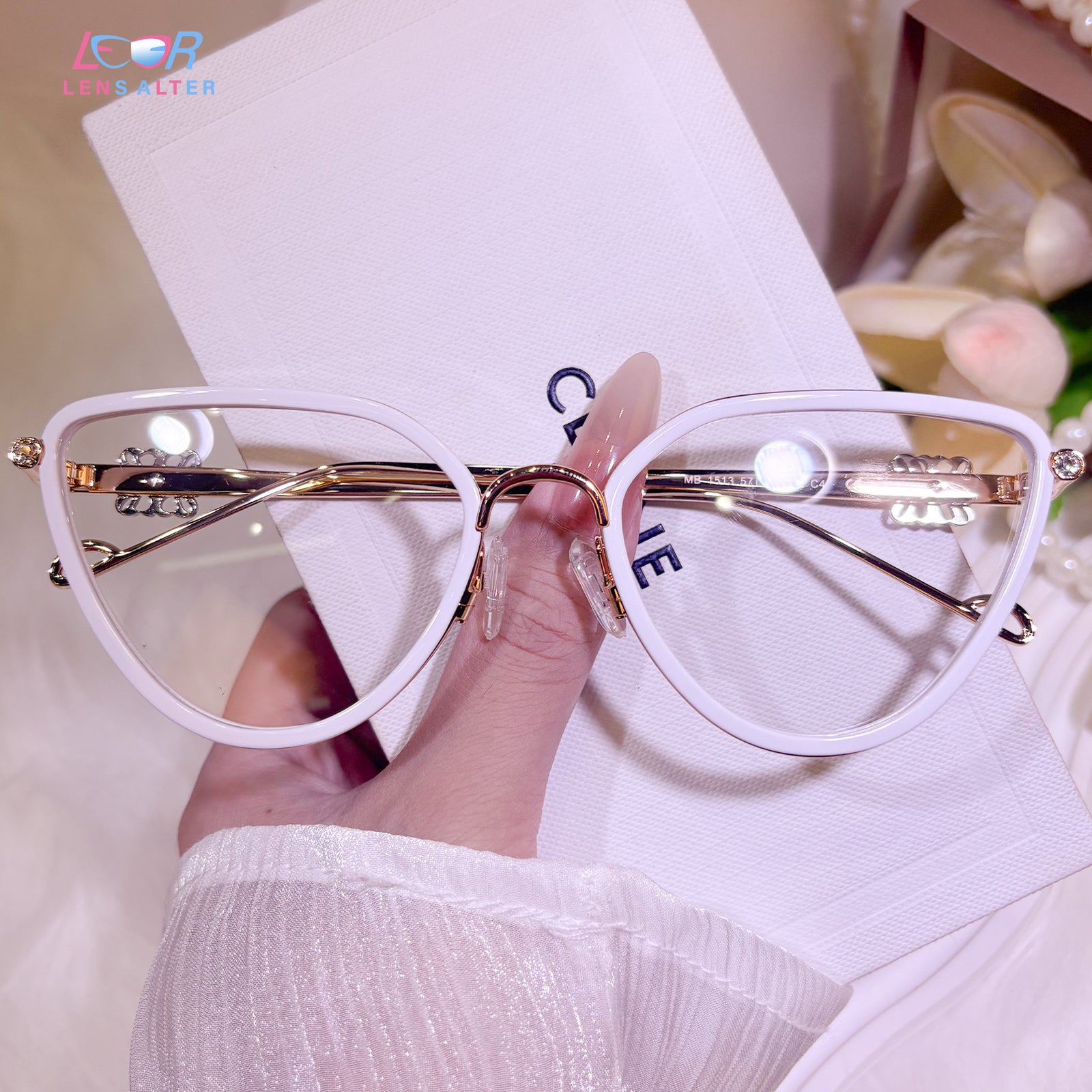 A whisper of softness, a hint of light. This metal cat-eye frame blends the gentlest pink with clean white, offering a look that is as cheerful as it is chic. Designed for days filled with grace and quiet confidence—for the woman who finds power in tenderness.