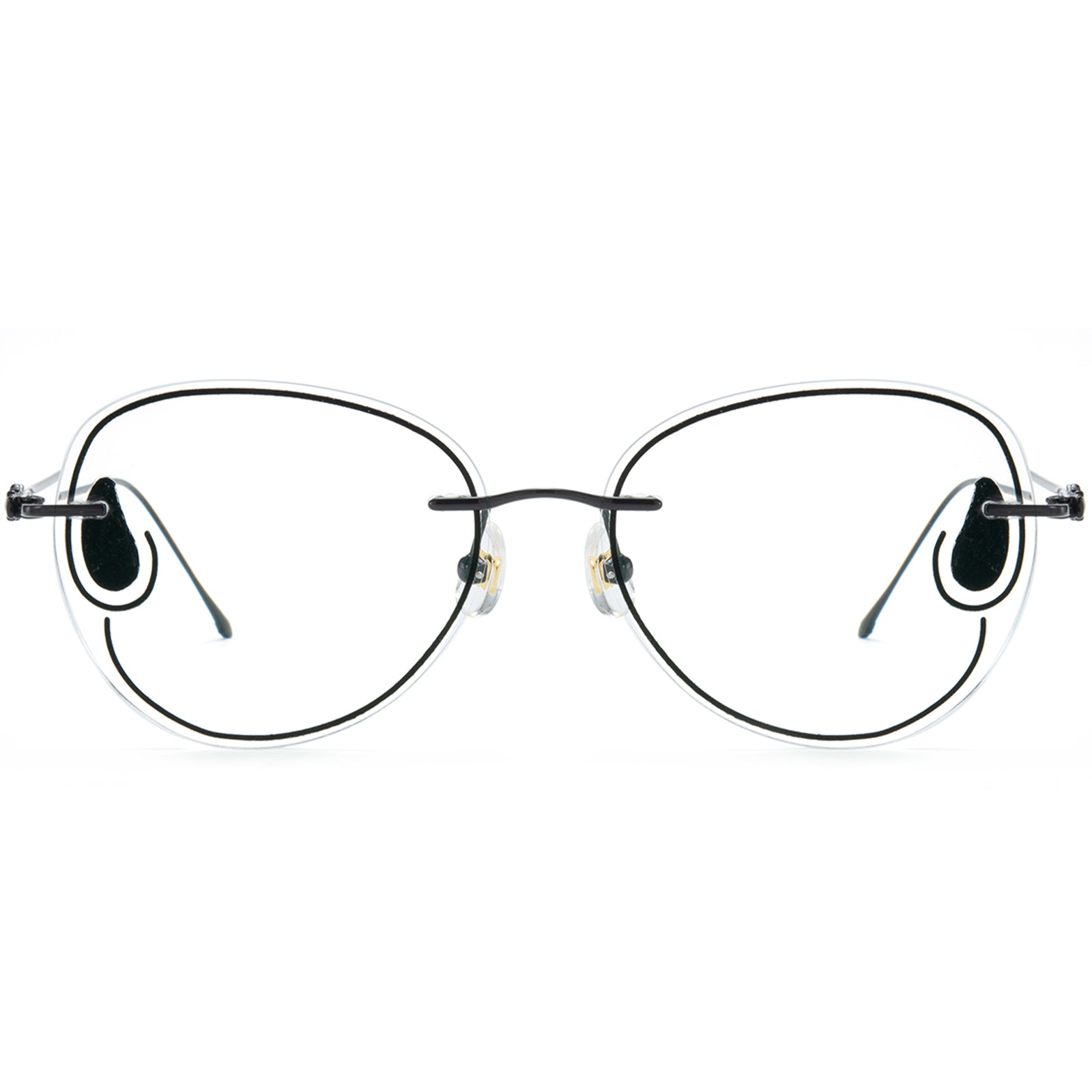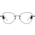 Black glasses featuring an all-inclusive Snoopy lens design that is irresistibly cute. The temples contrast this adorableness with a cool and chic design, creating a striking and unique look. Perfect for those who love playful yet edgy accessories.