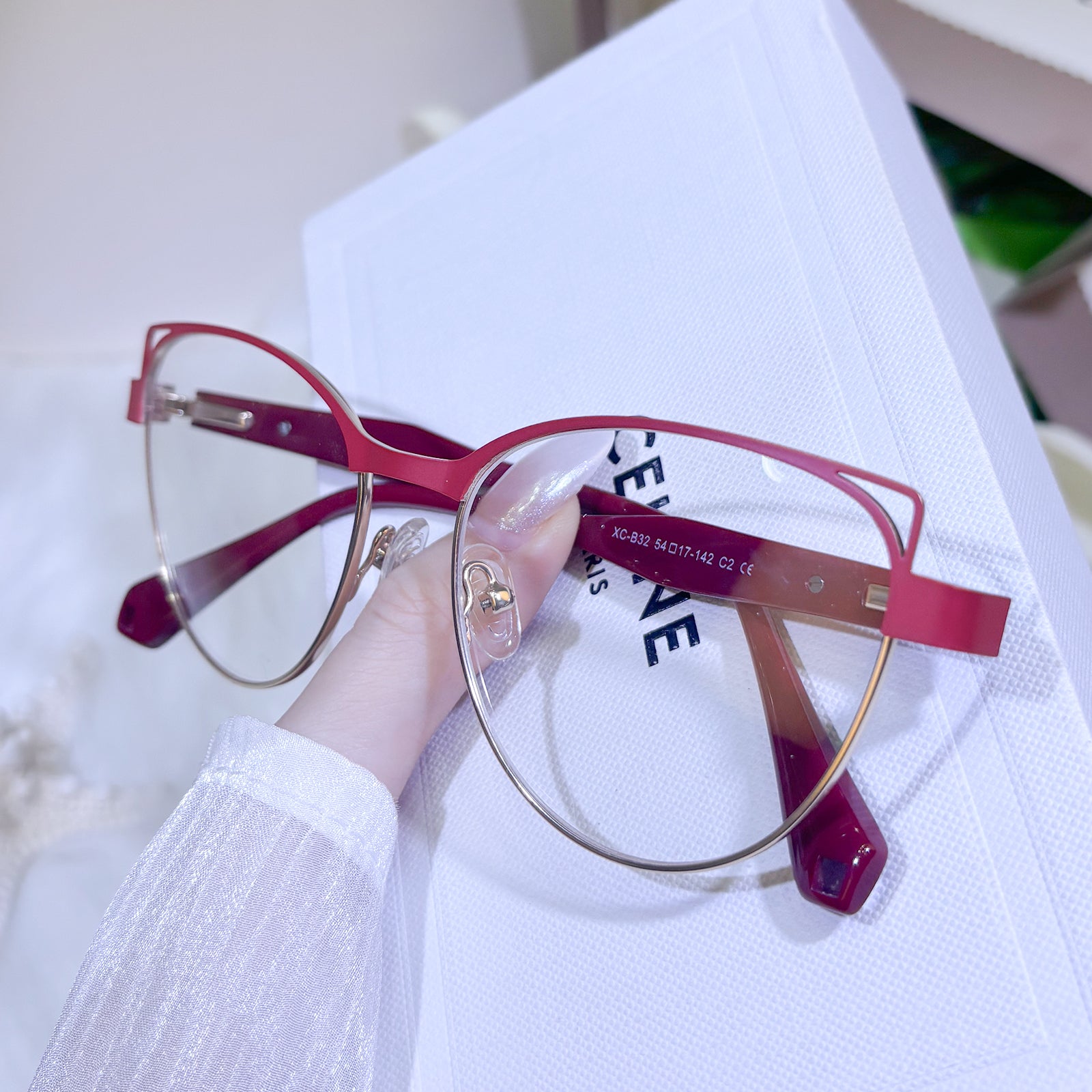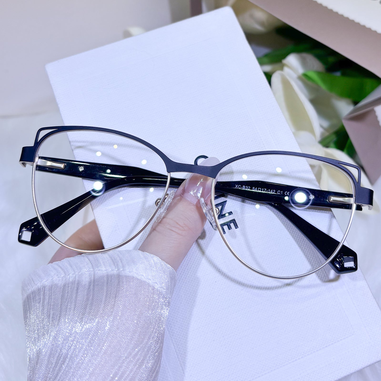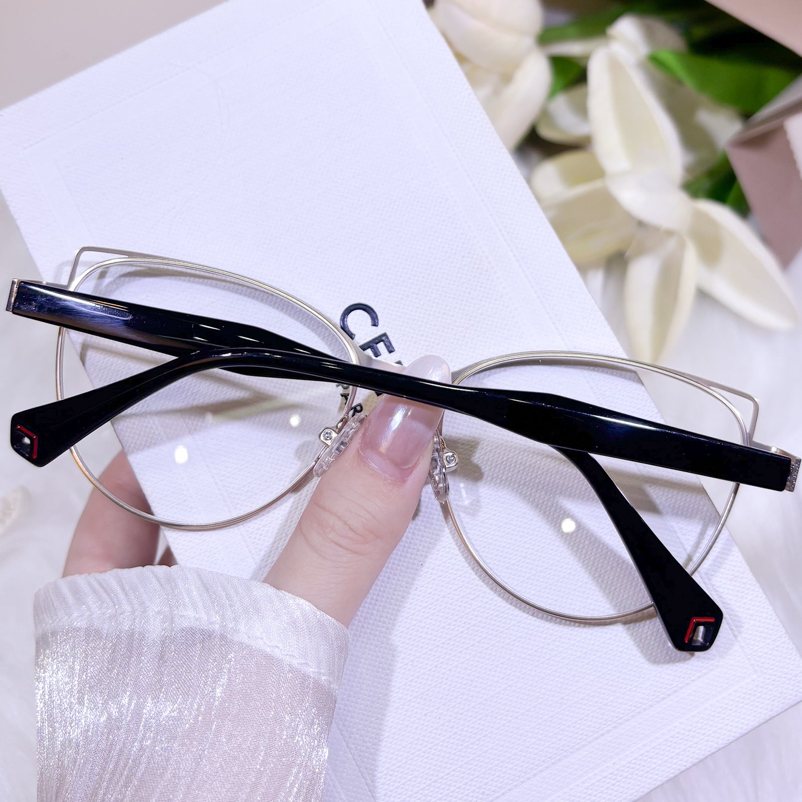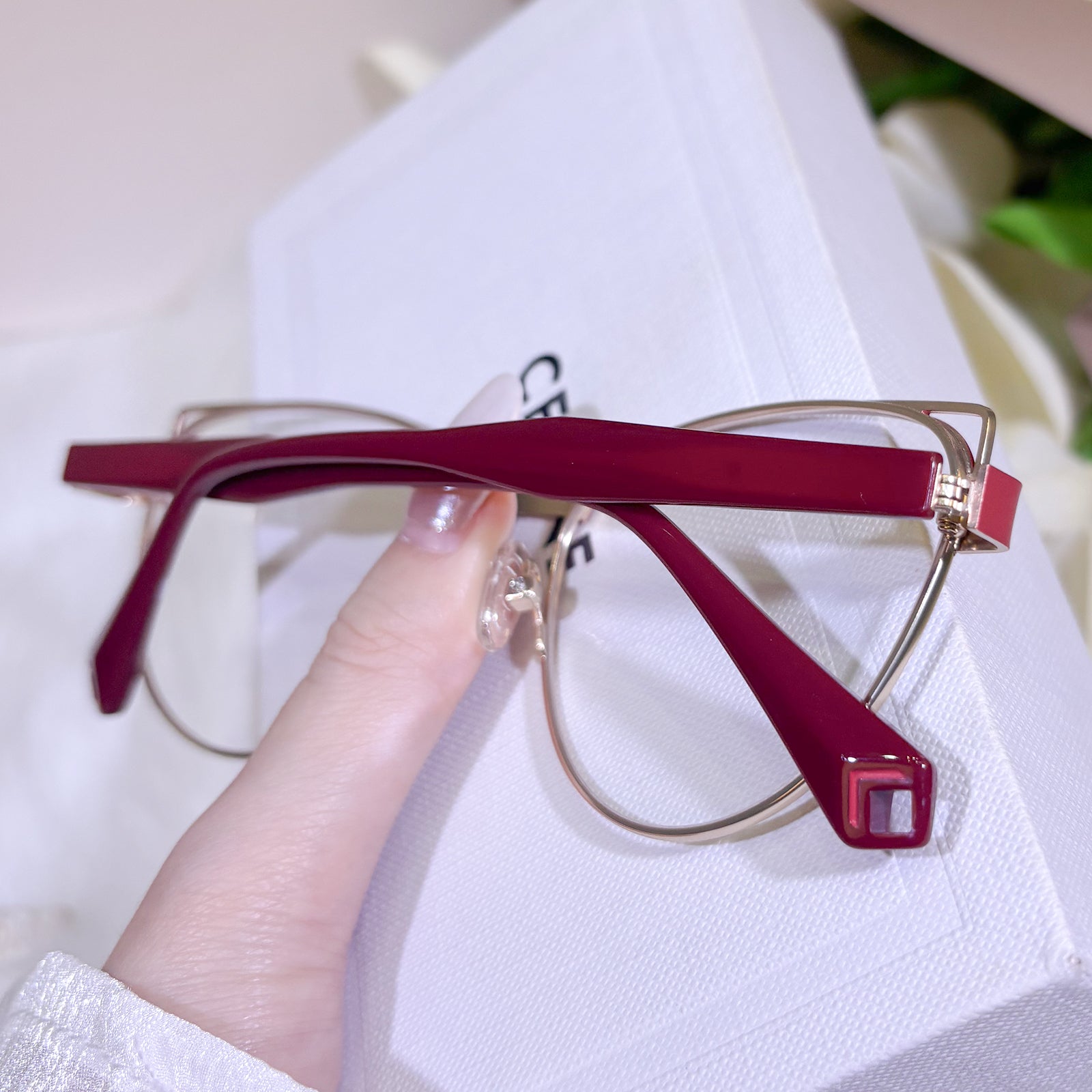 These charming cat-eye glasses combine a playful, feminine design with sleek metal construction for everyday comfort and durability. Cute yet sophisticated, they effortlessly elevate any casual look. Perfect for women who want a touch of fun in their daily style.