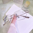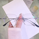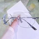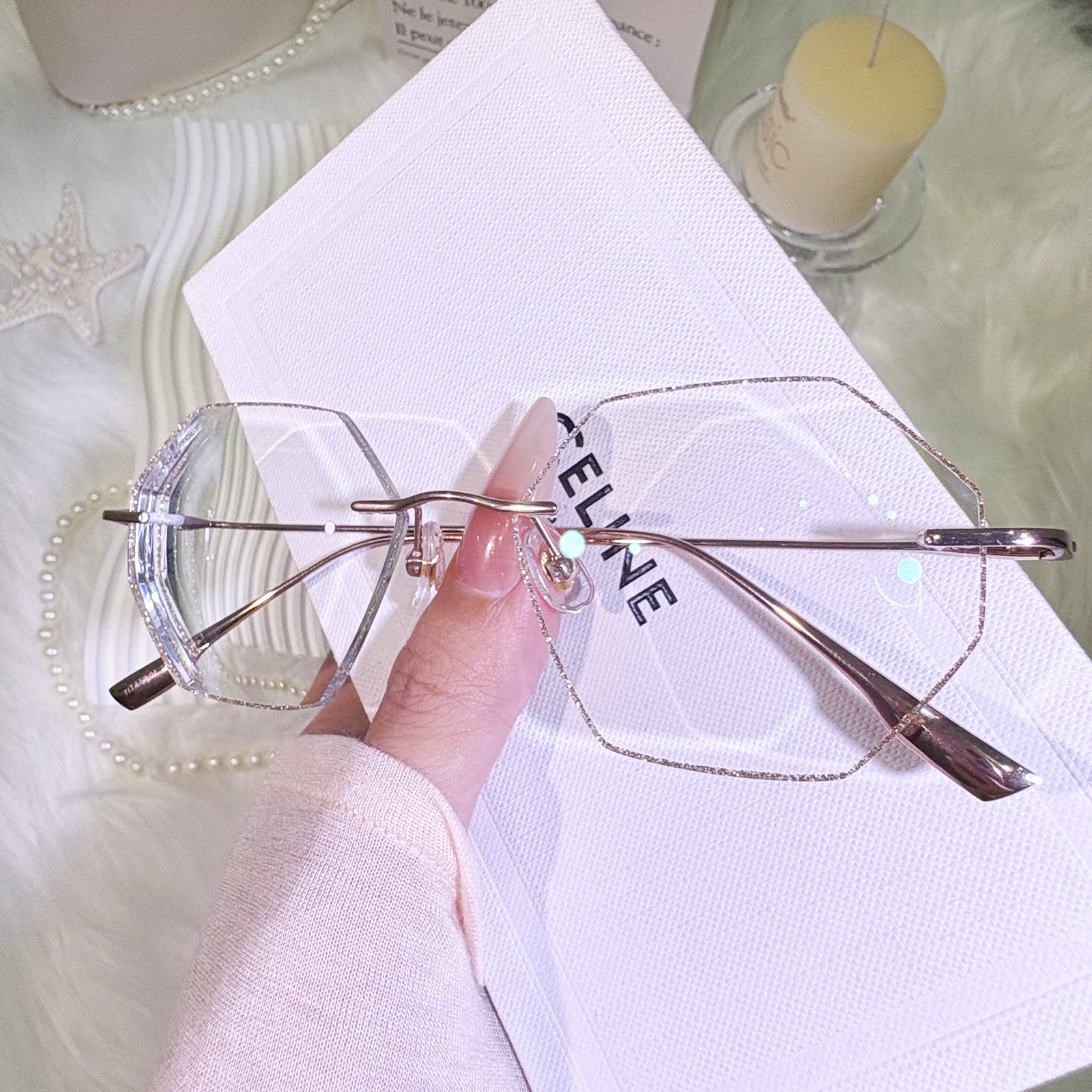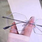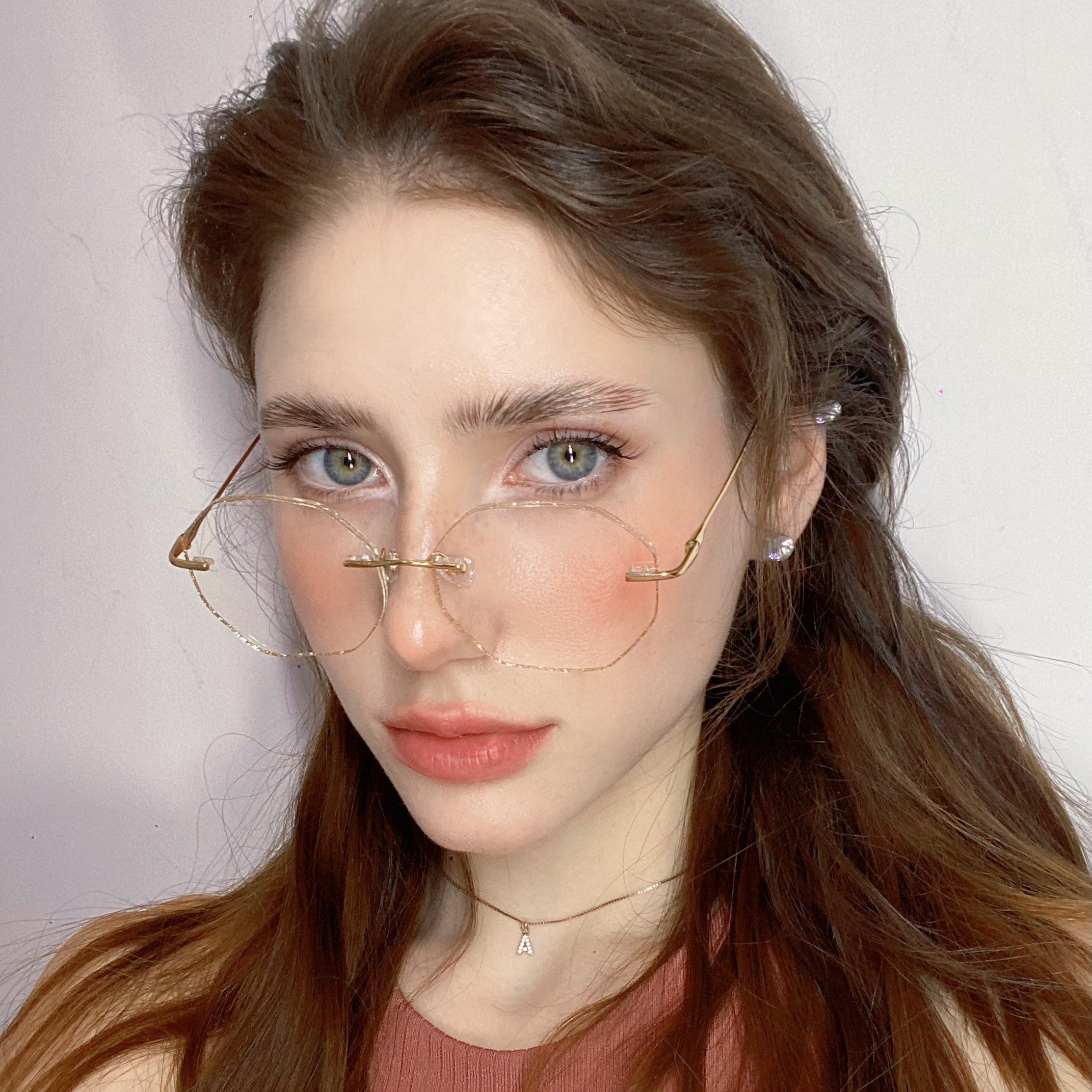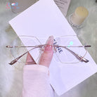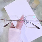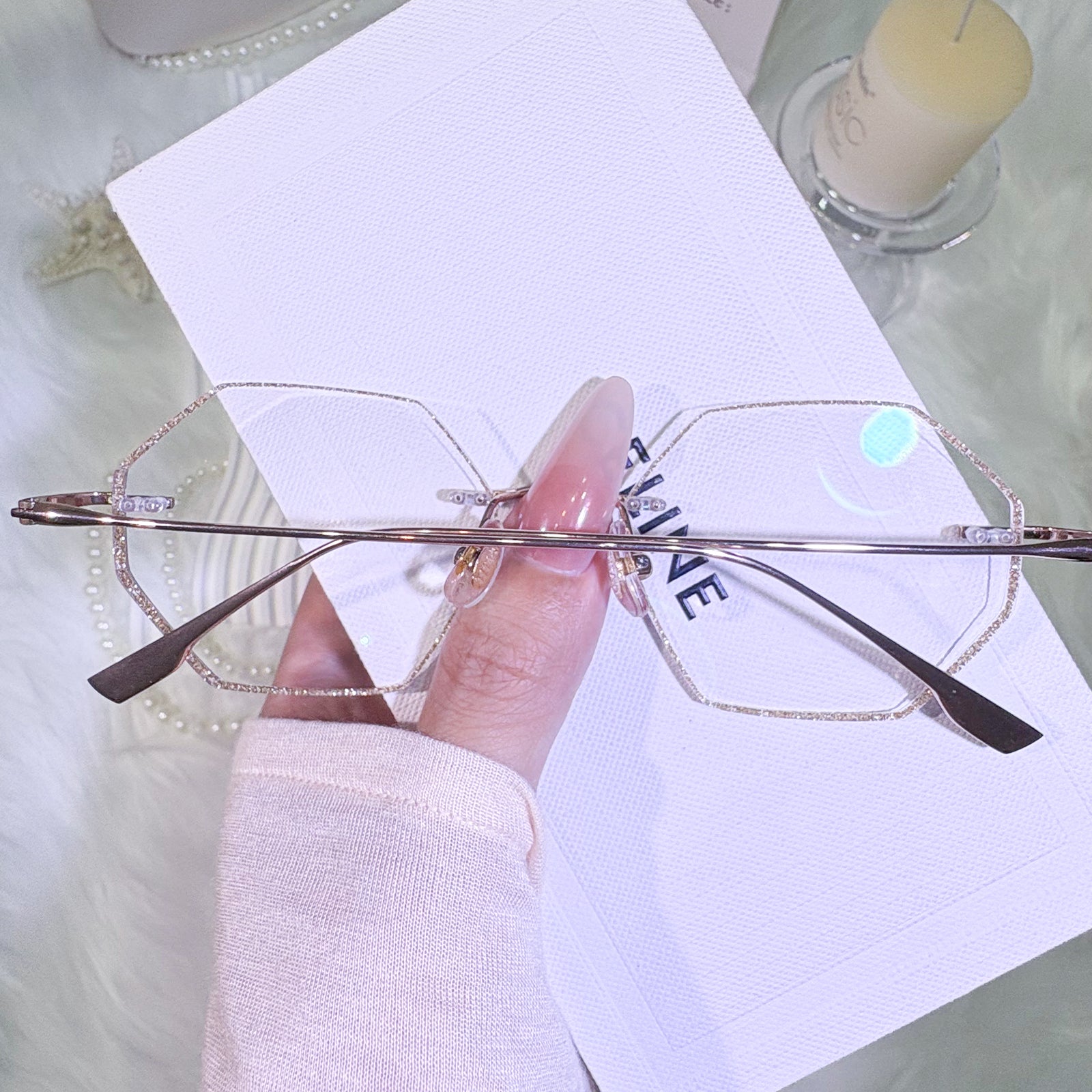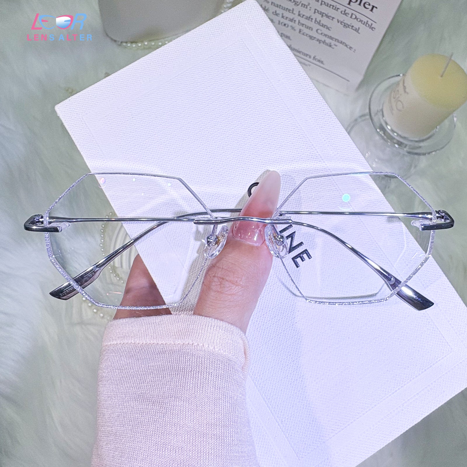 | Exlusive Design | This pair of polygonal rimless glittery glasses combines modern minimalism with timeless elegance. The unique geometric lenses are paired with ultra-thin, classic titanium temples that offer exceptional lightness and comfort. Sophisticated yet subtle, they’re perfect for everyday wear while making a chic and contemporary statement.