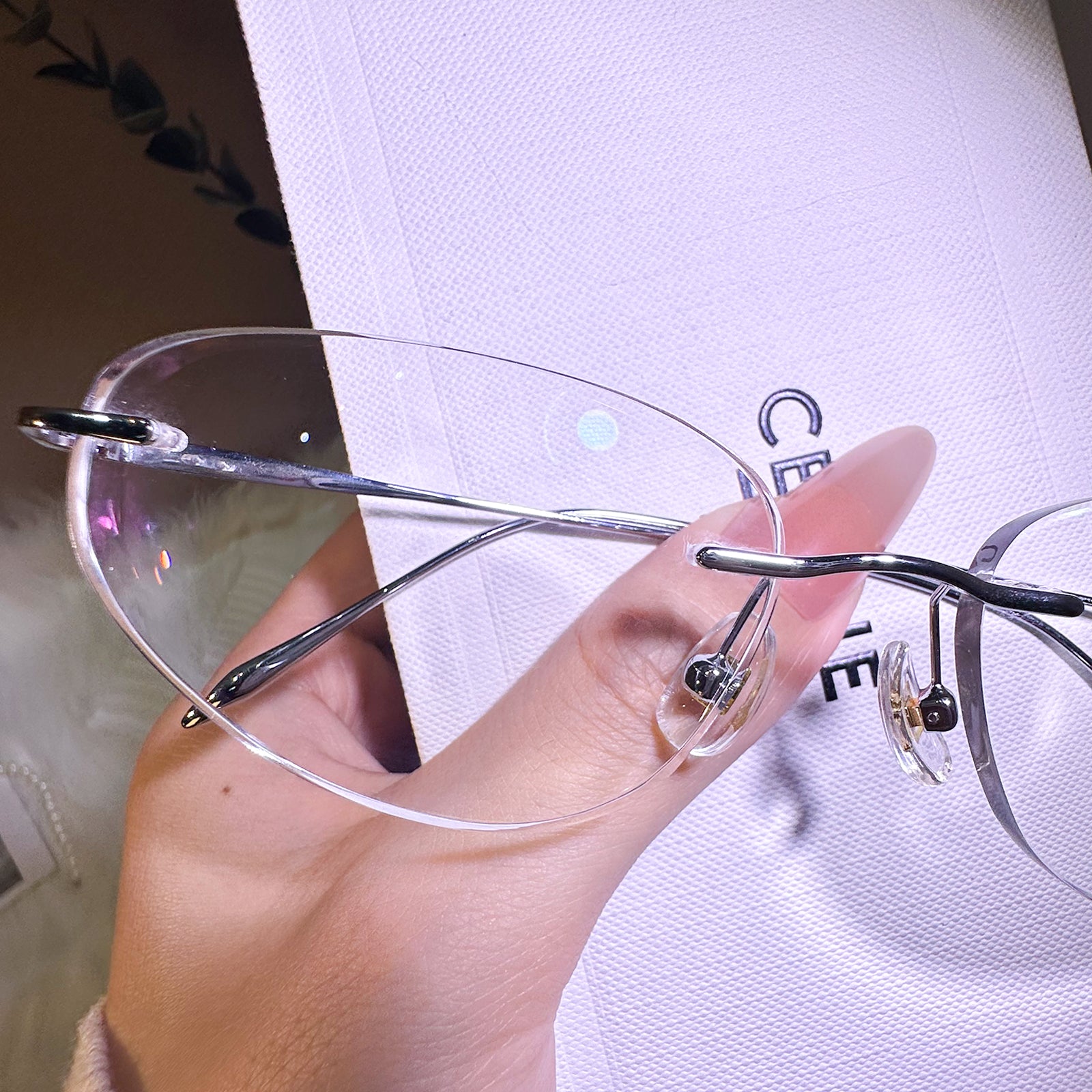 A refined rimless design paired with elegant silver temples delivers a perfect balance of modern minimalism and timeless sophistication. With an understated yet fashionable appeal, this design elevates your everyday style with graceful, contemporary charm.