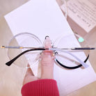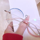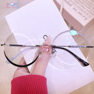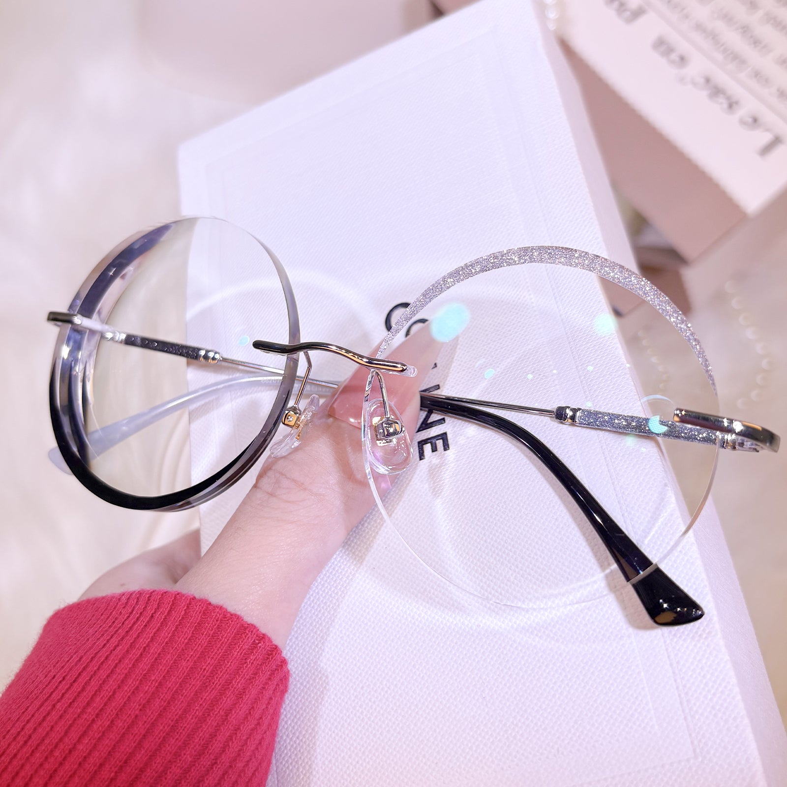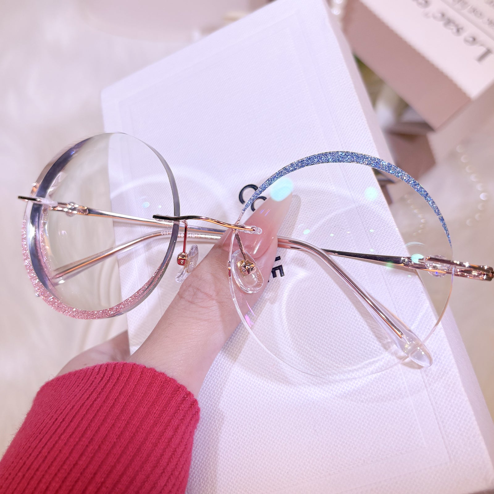 | Exclusive Design | This round, color-block rimless eyewear brings a delightfully quirky twist to your look, featuring glitter-lined lenses that sparkle from every angle. Its bold, offbeat charm makes it irresistibly cute—perfect for anyone who loves playful, unconventional style.