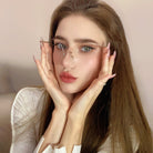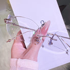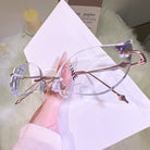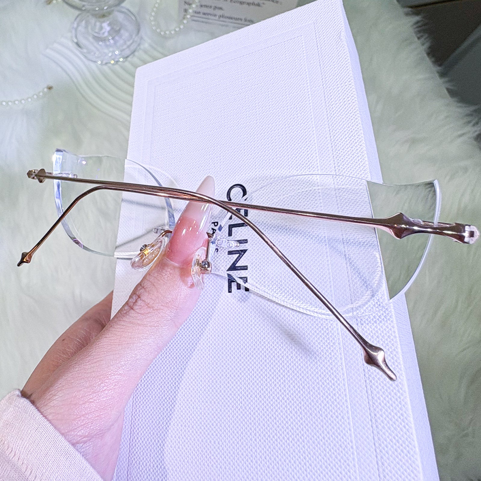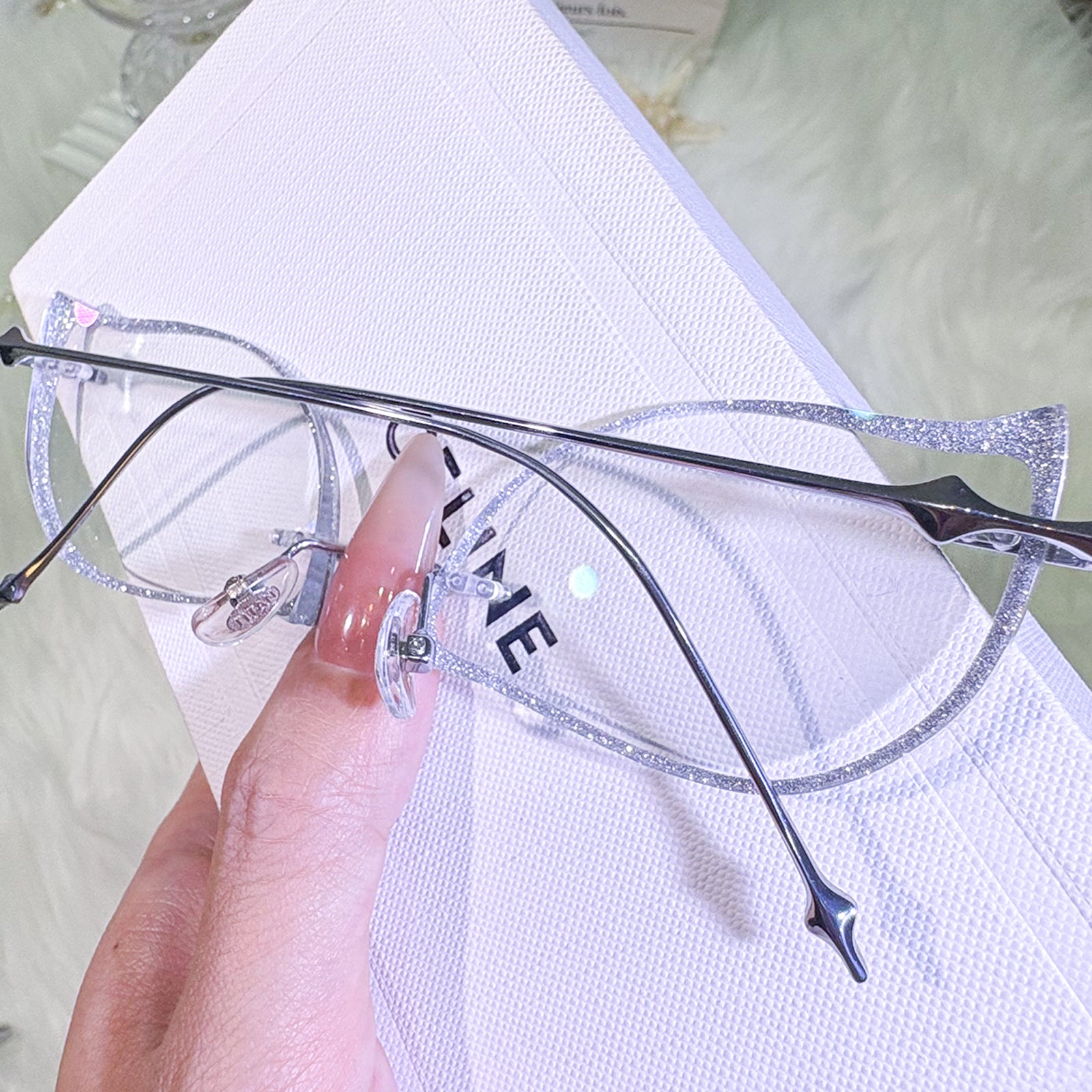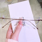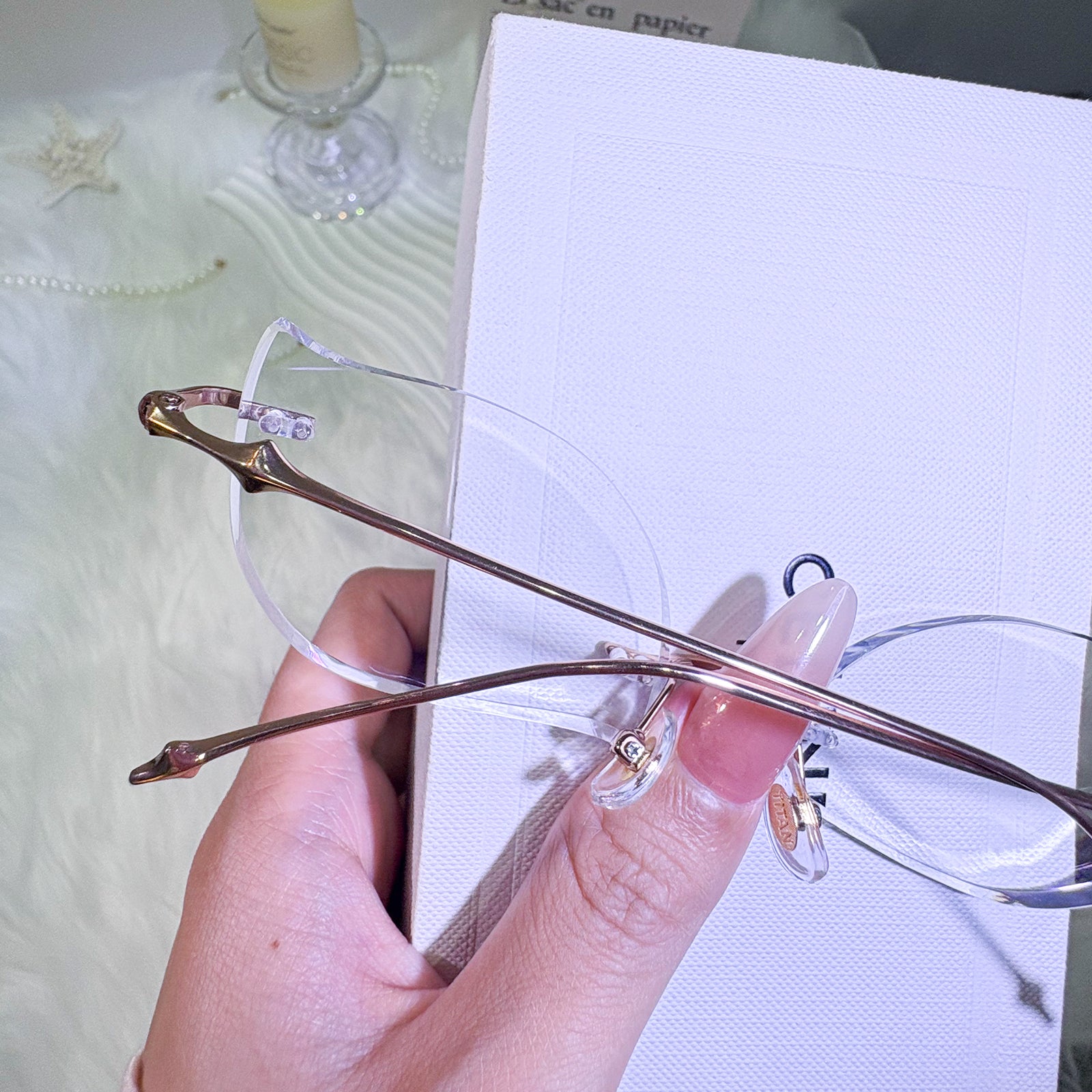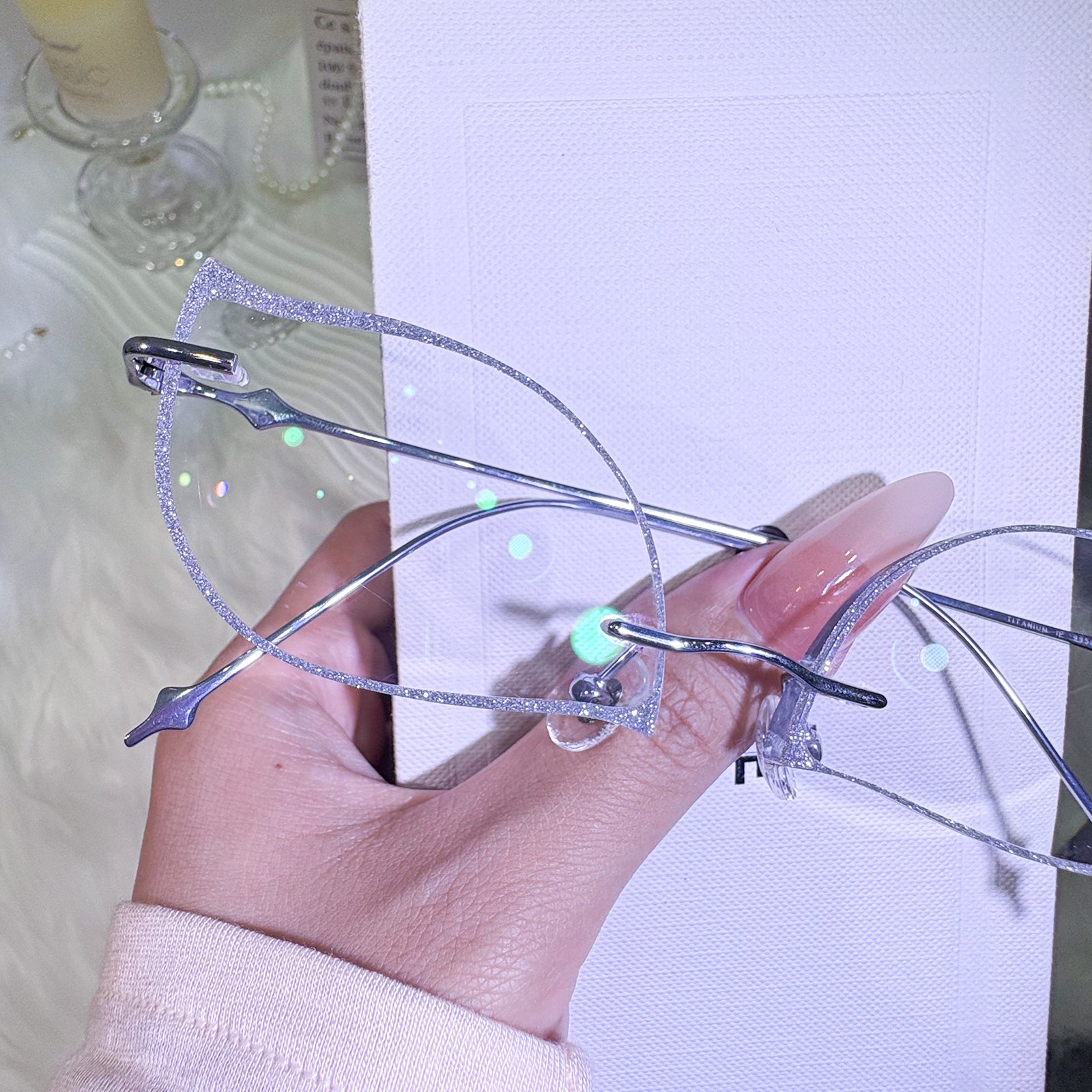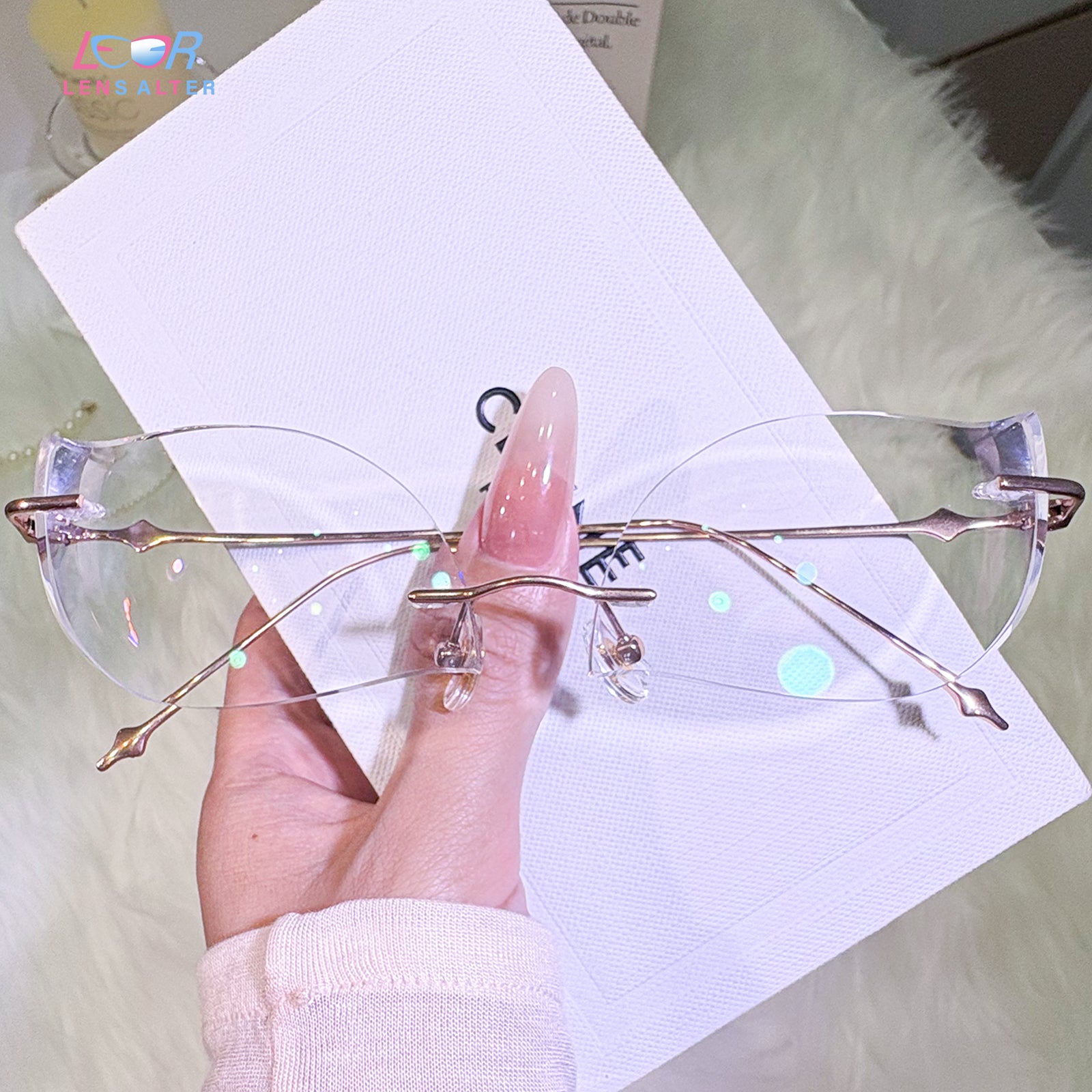 | Exlusive Design | The fox-eye rimless glasses have surprisingly made their dazzling debut! Available in two enchanting shades — glittery silver and romantic rose gold — these frames exude irresistible allure. The fox-eye silhouette adds a bold, flirtatious flair, while the ultra-lightweight titanium temples ensure lasting comfort. Perfect for the fashion-forward girl who loves a hint of mystery and glamour in her everyday look.