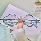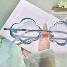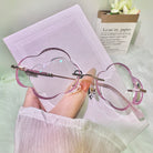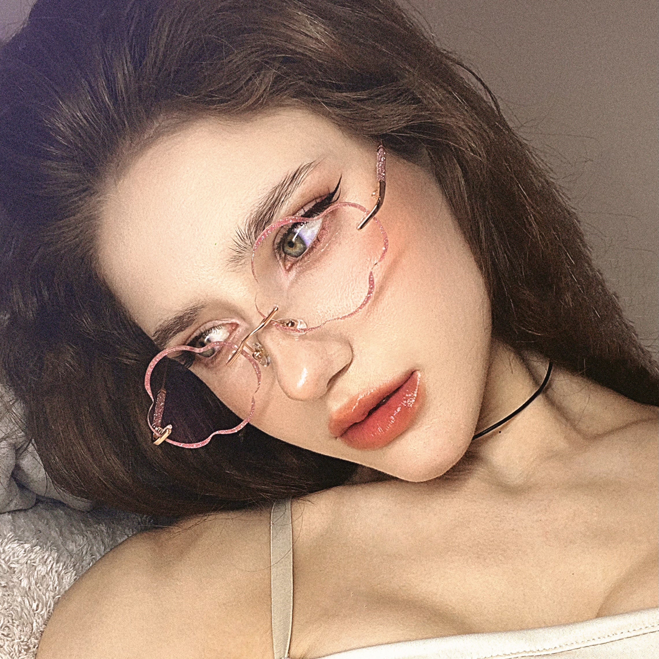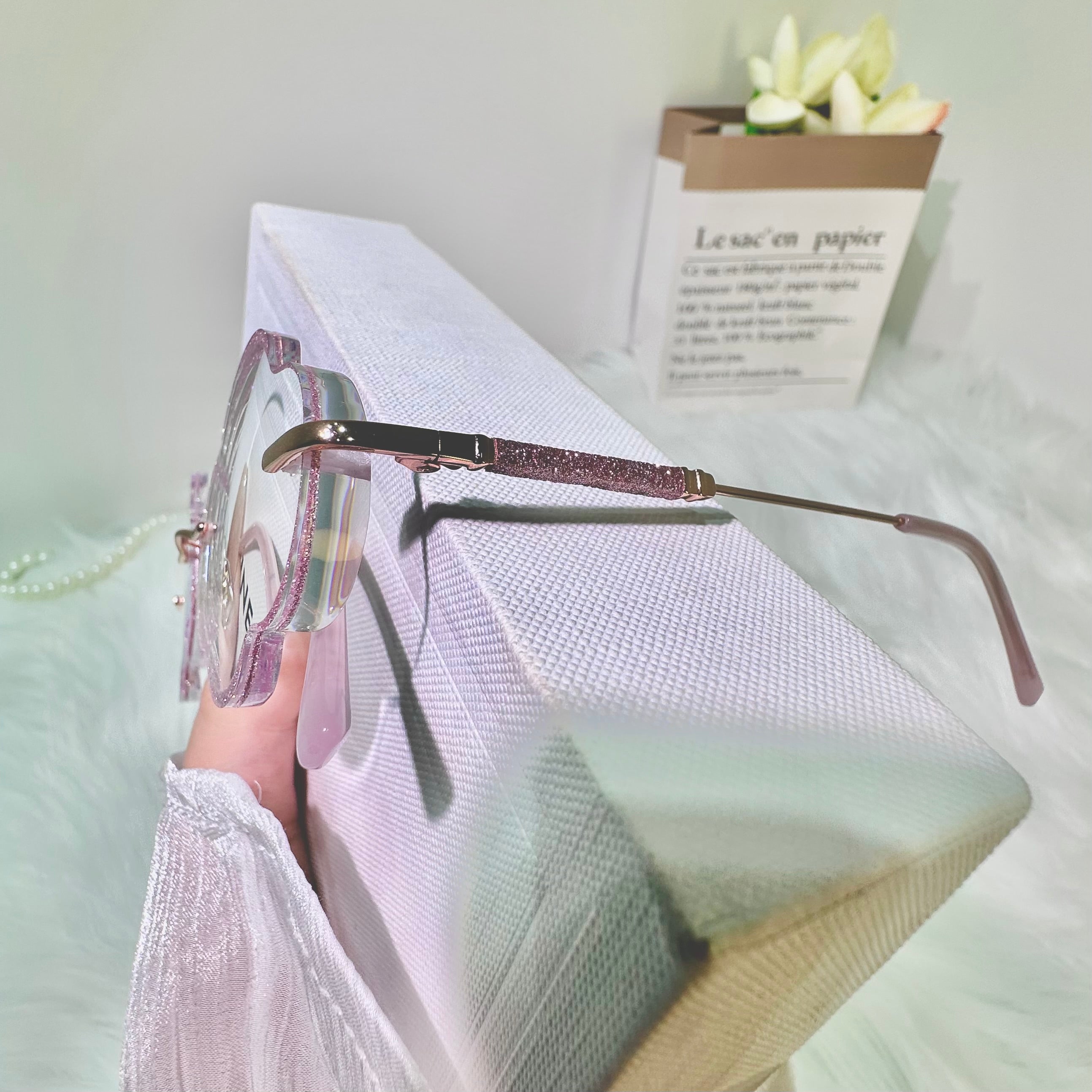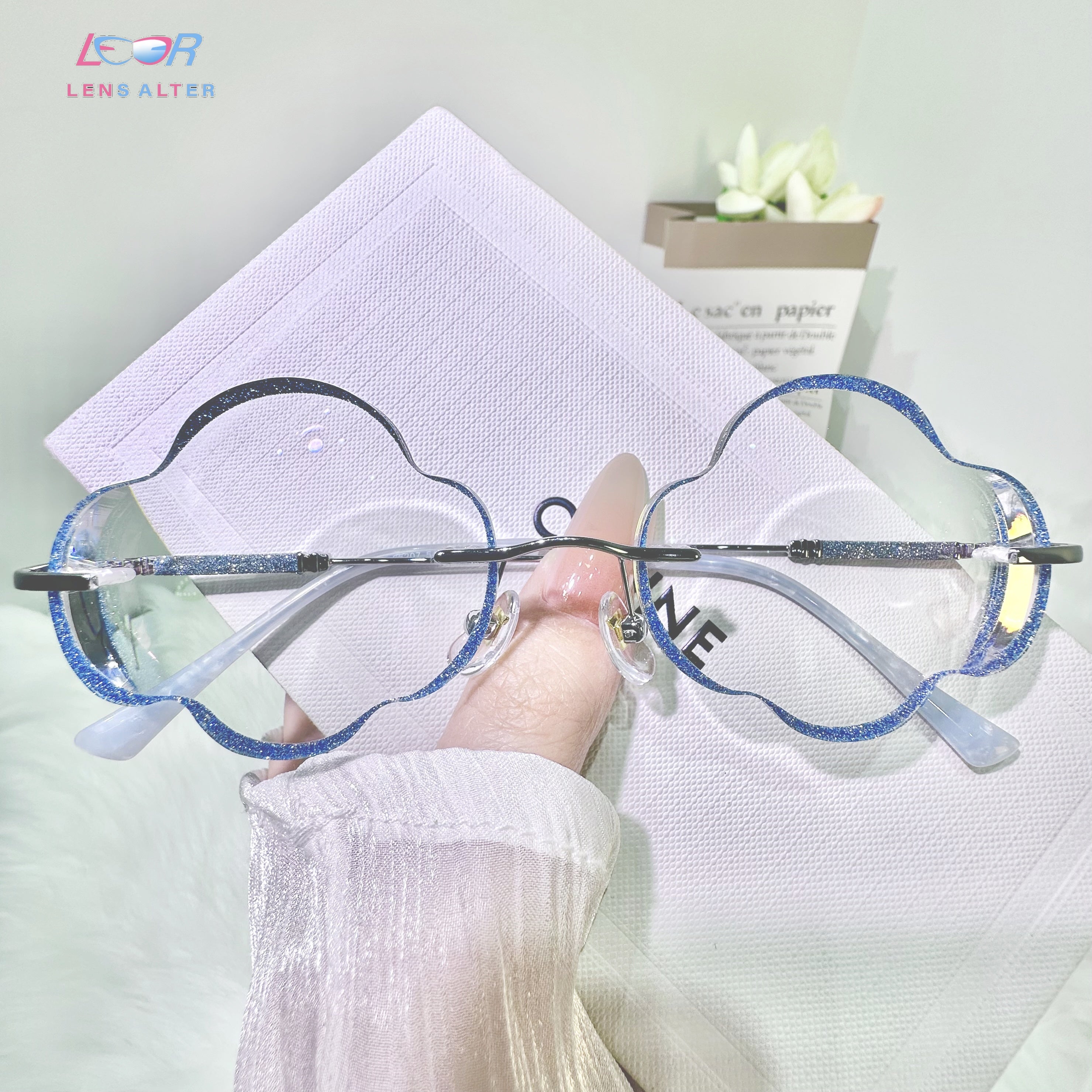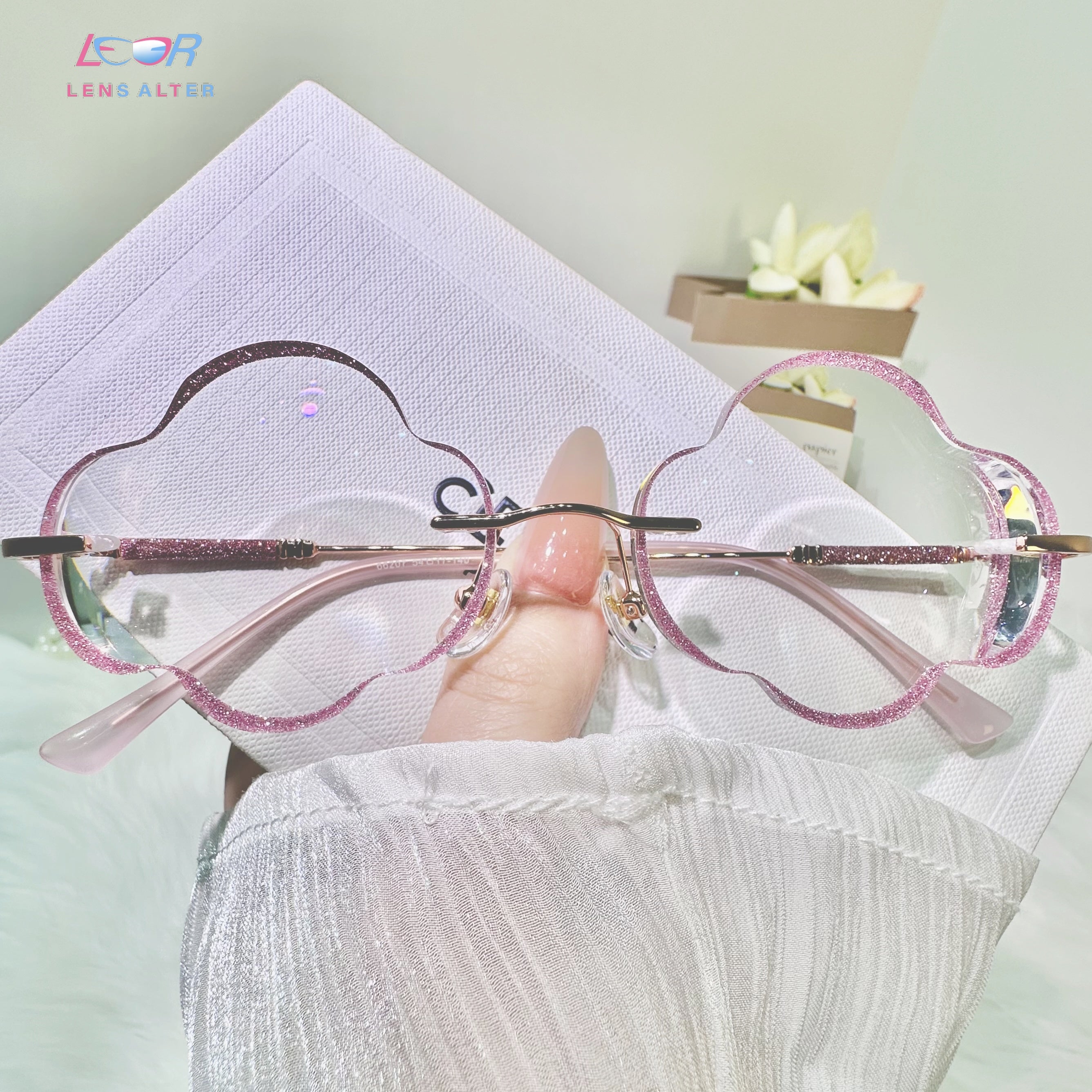 |Exclusive Design|Cloud-Shaped Rimless Glasses – dreamy, dazzling, and full of whimsy. Featuring uniquely sculpted cloud-shaped lenses sprinkled with shimmering glitter, these glasses bring a magical, fairy-tale charm to your everyday look. The delicate metal temples are adorned with sparkling details that catch the light with every movement, making this pair a perfect accessory for those who love a soft, imaginative, and standout style.