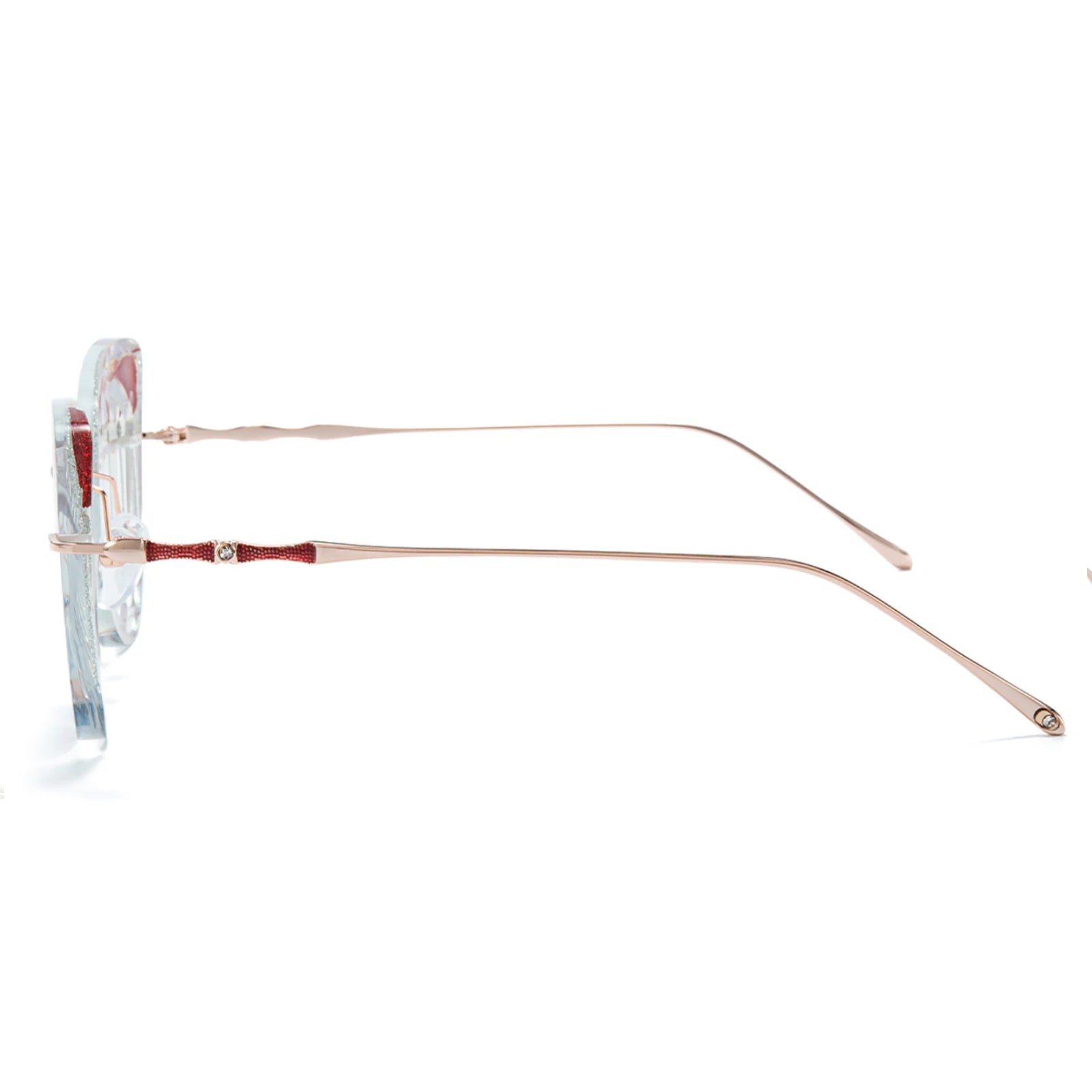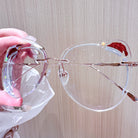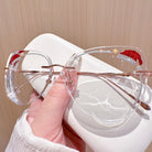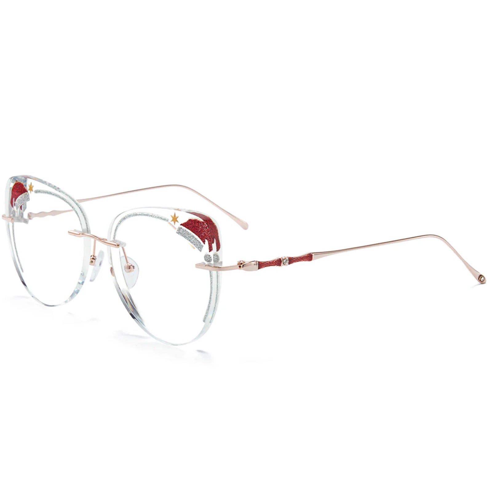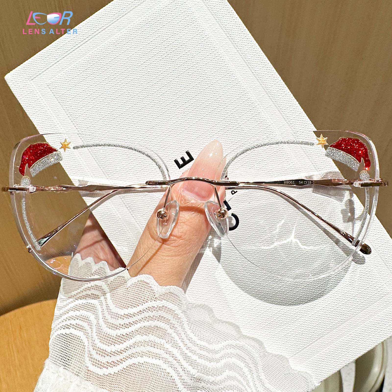 Bring the magic of the season to your style with these enchanting rimless cat-eye glasses. Featuring playful Christmas hat decorations on the lenses and festive holiday-colored temples, these frames are the ultimate winter accessory. Dreamy, whimsical, and oh-so-chic, they’re perfect for adding a touch of holiday sparkle to your look.