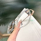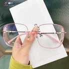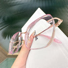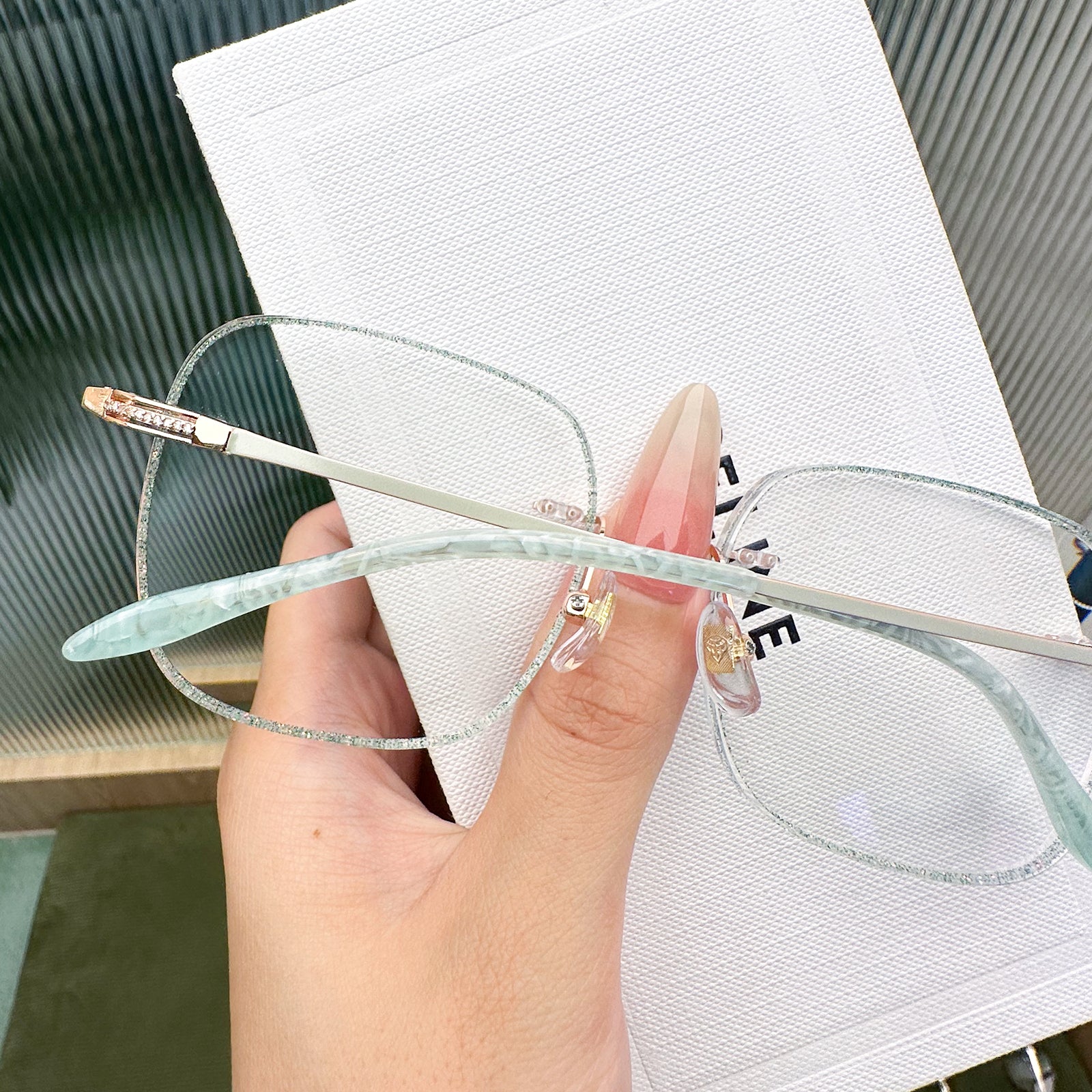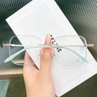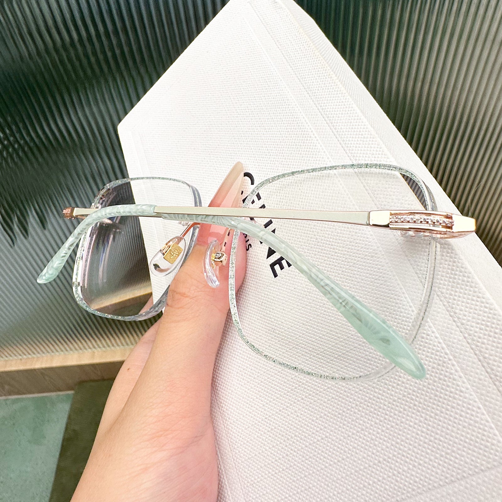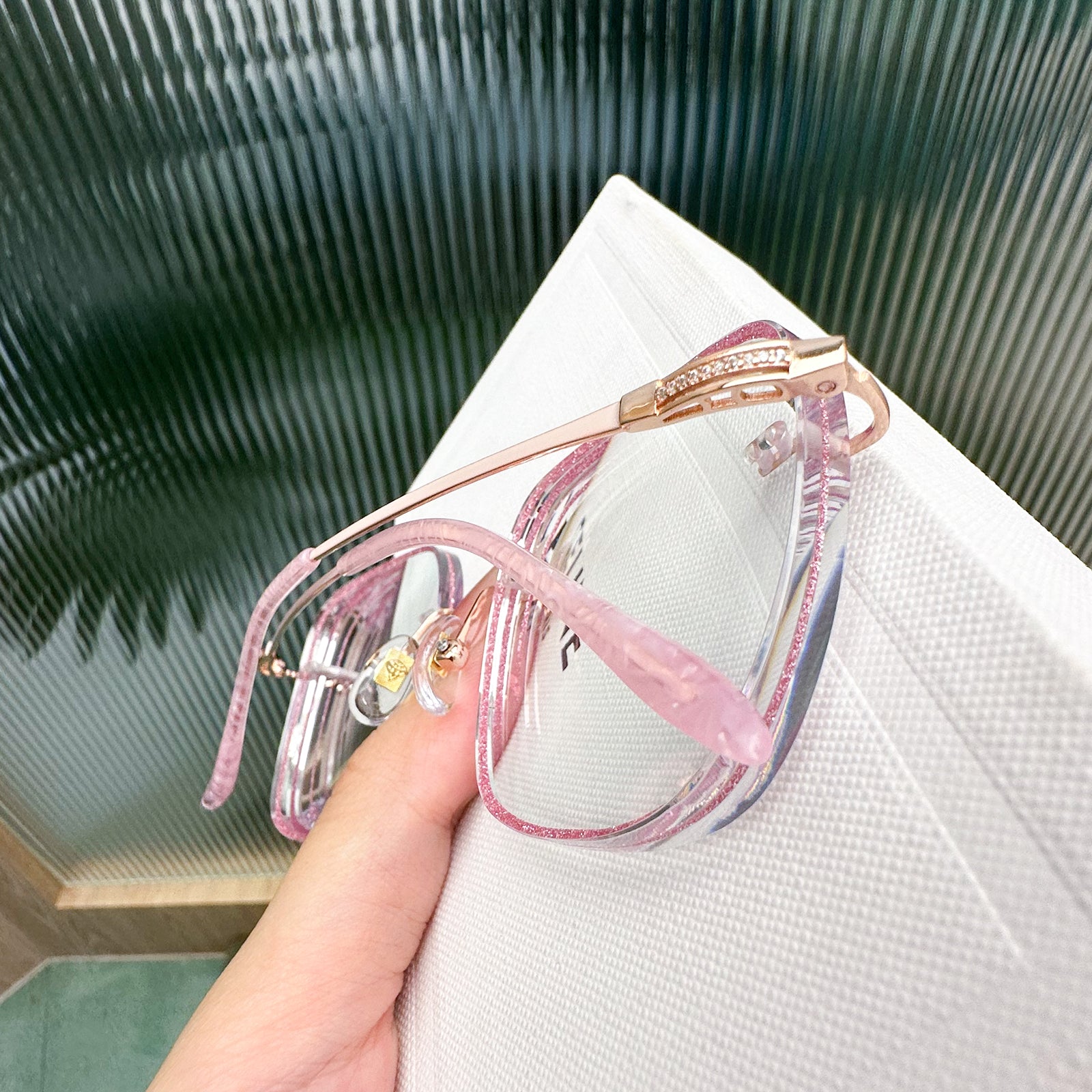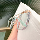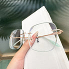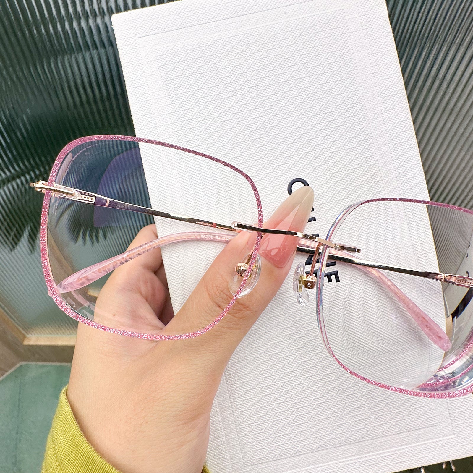 | Exlusive Design | Colorful Glitter Edge Square Rimless Glasses – This standout design features square lenses lined with vibrant, multicolored glitter along the edges, catching the light beautifully with every movement. The sleek metal temples add a modern, polished touch, balancing playful charm with elegant minimalism. A perfect statement piece for fashion-forward individuals who love a pop of sparkle.
