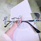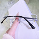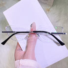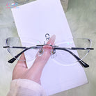 | Exlusive Design | Classic cat-eye rimless glasses — where timeless elegance meets modern minimalism. Featuring sleek, frameless cat-eye lenses and refined black temples, this pair is effortlessly chic. The clean silhouette adds a touch of sophistication, making it a versatile everyday piece for the modern woman who values subtle style with a hint of edge.