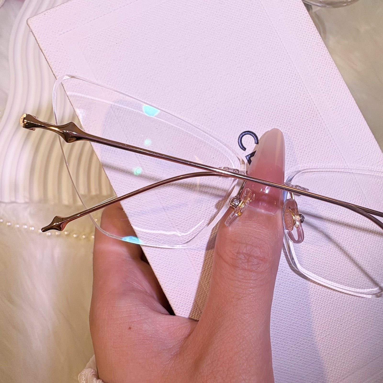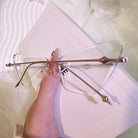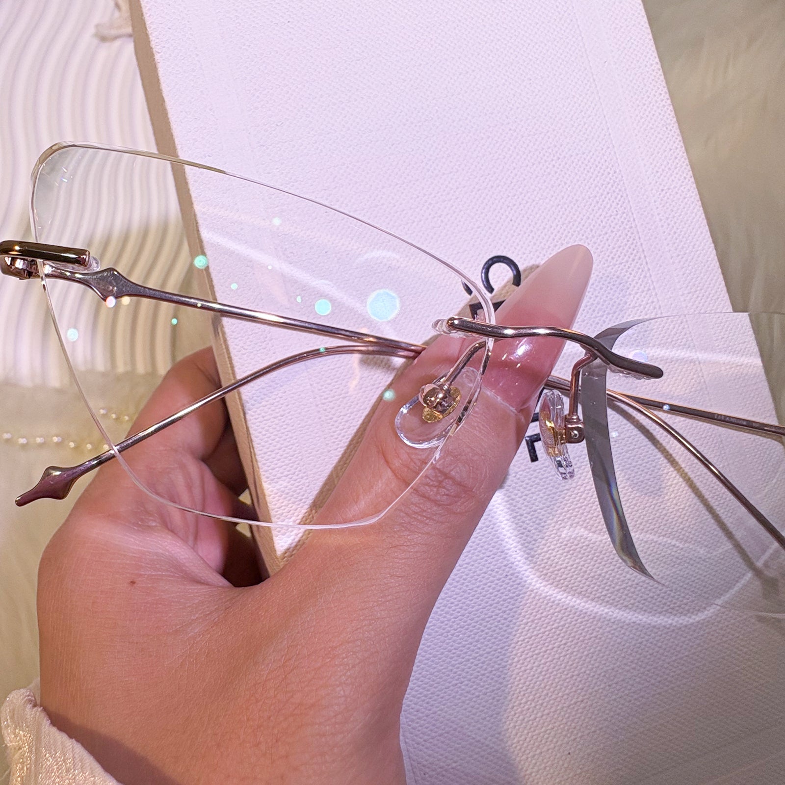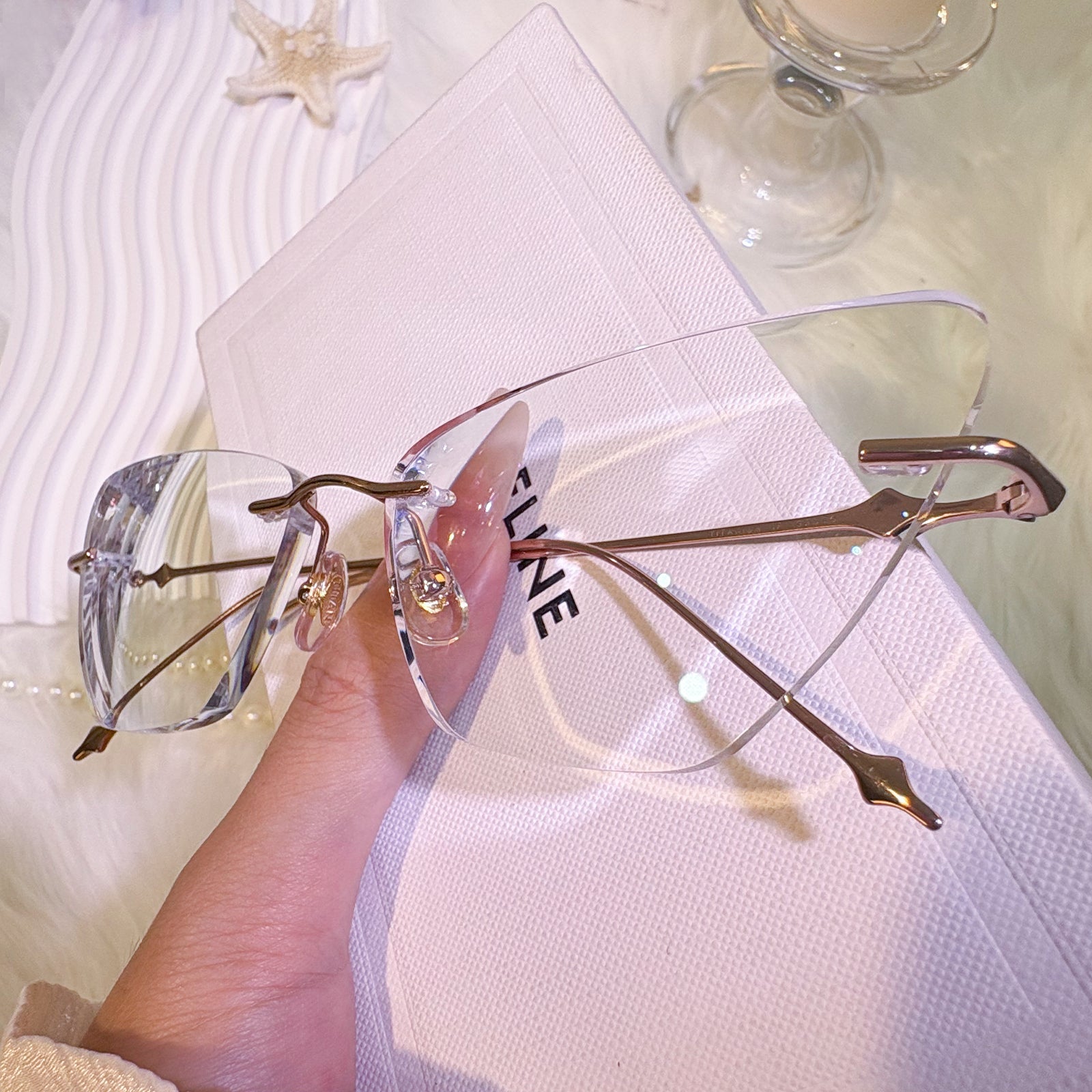 These rimless glasses feature a bold cat-eye shape that exudes effortless cool. The sleek titanium temples are smooth and feather-light, offering both style and all-day comfort. Perfect for fashion-forward girls who love a sharp, standout look with a minimalist twist.