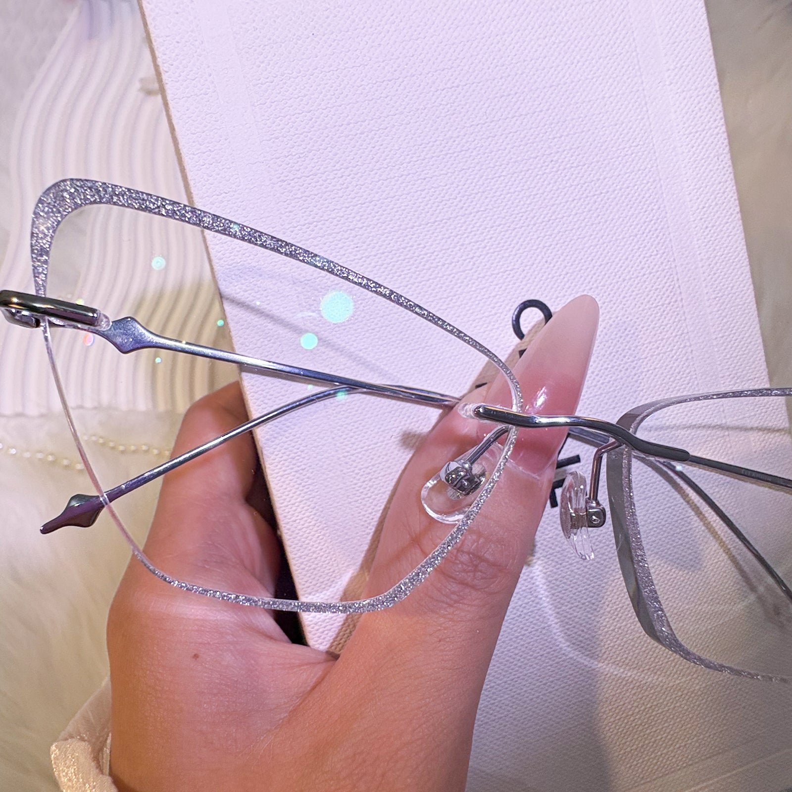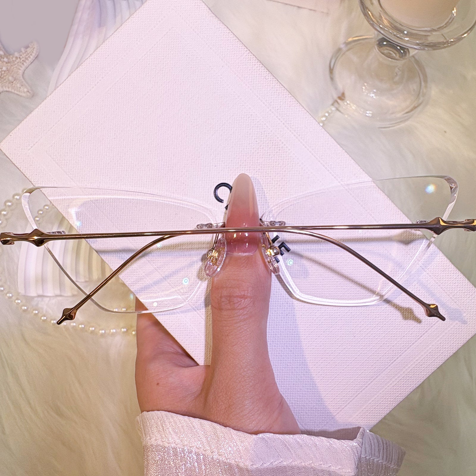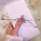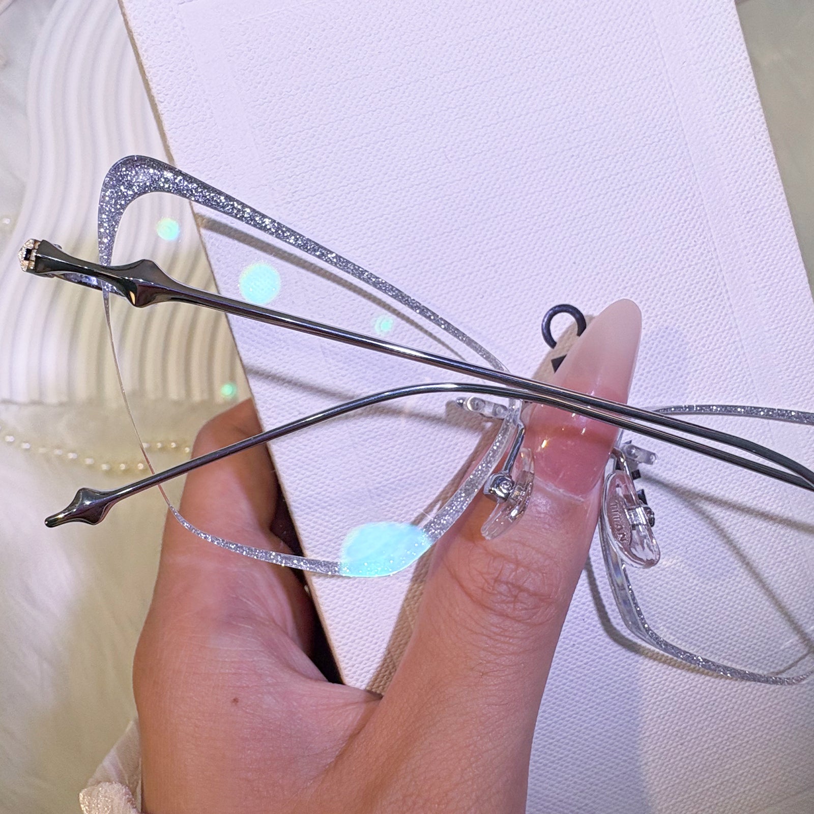 These rimless glasses feature a bold cat-eye shape that exudes effortless cool. The sleek titanium temples are smooth and feather-light, offering both style and all-day comfort. Perfect for fashion-forward girls who love a sharp, standout look with a minimalist twist.