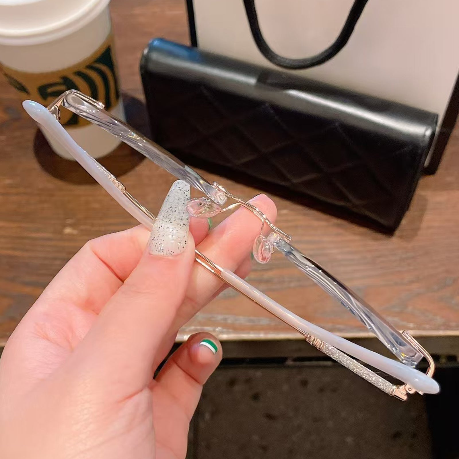Adicione um toque de brilho e sofisticação com esses óculos quadrados sem aro, projetados para a mulher elegante e graciosa. Apresentando brilho prateado cintilante nos templos, esses quadros exalam elegância e brilho, tornando -os o acessório perfeito para elevar qualquer olhar com um toque refinado e deslumbrante.
