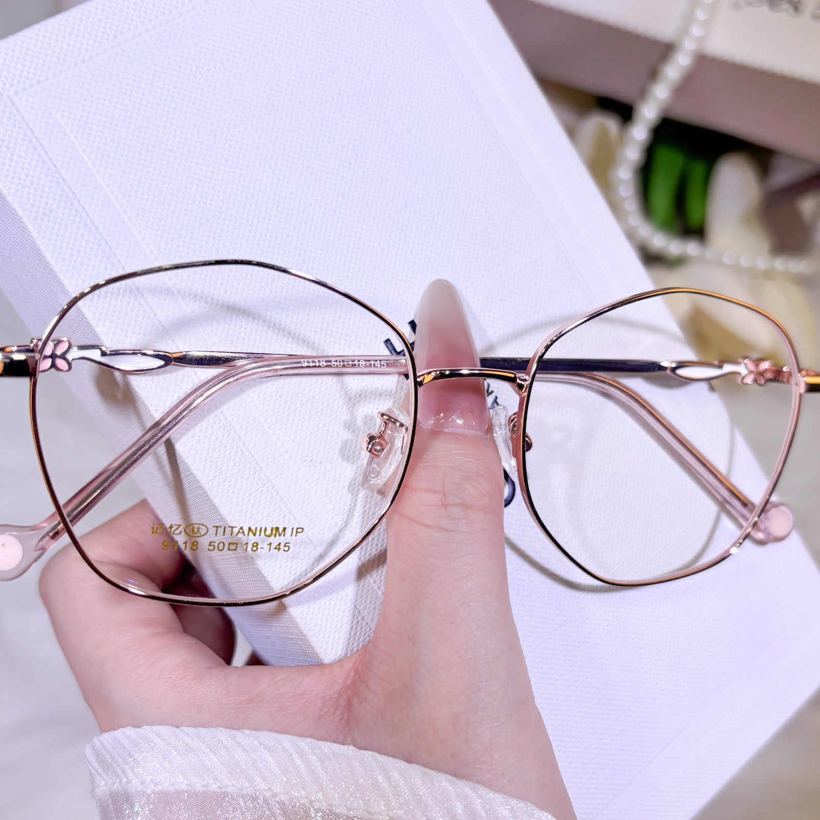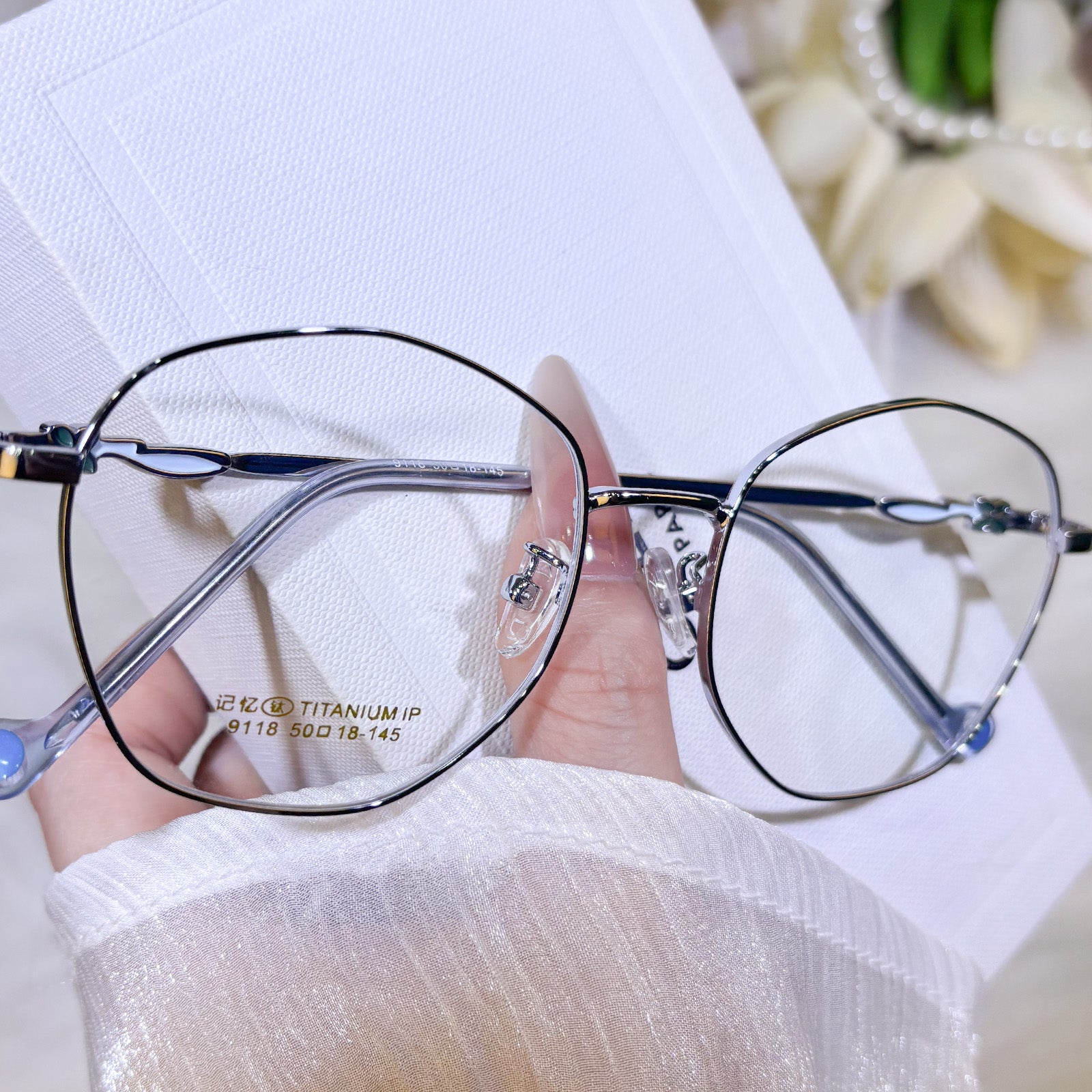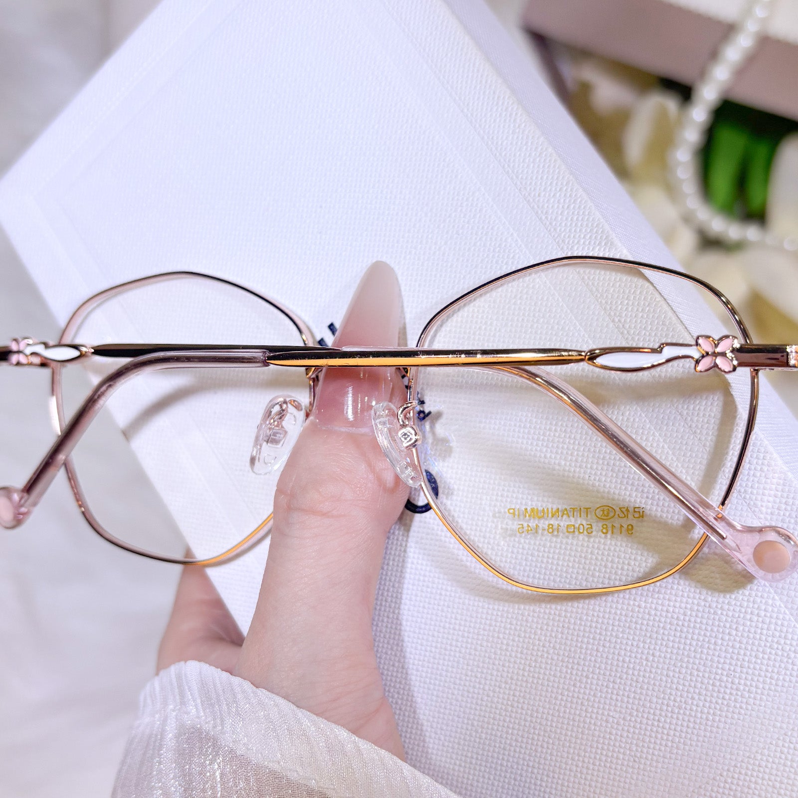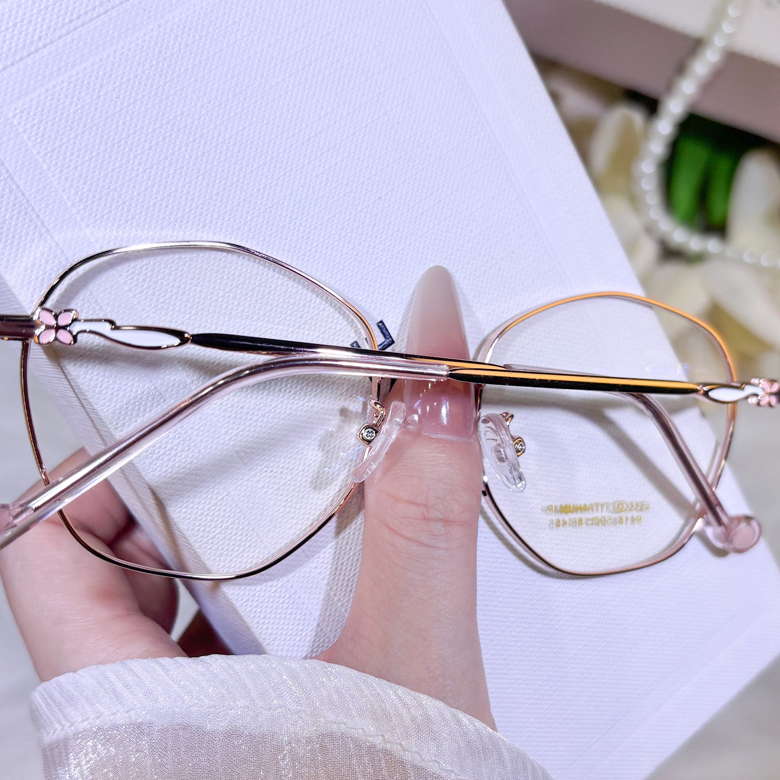 Women's classic geometric glasses, adorned with lovely floral details on the temples. Stylish and delicate design, gentle and elegant. Lightweight and versatile, perfect for daily wear.