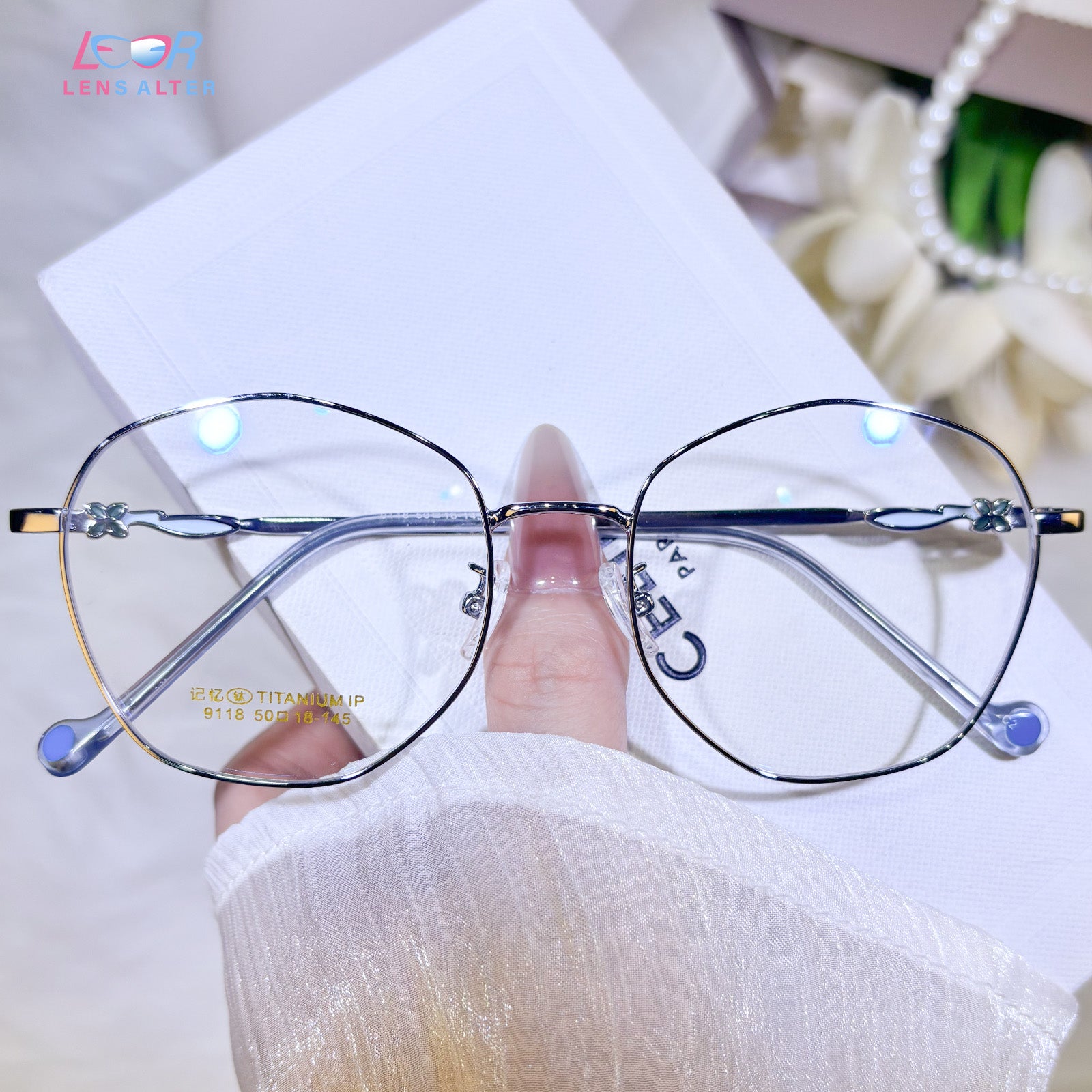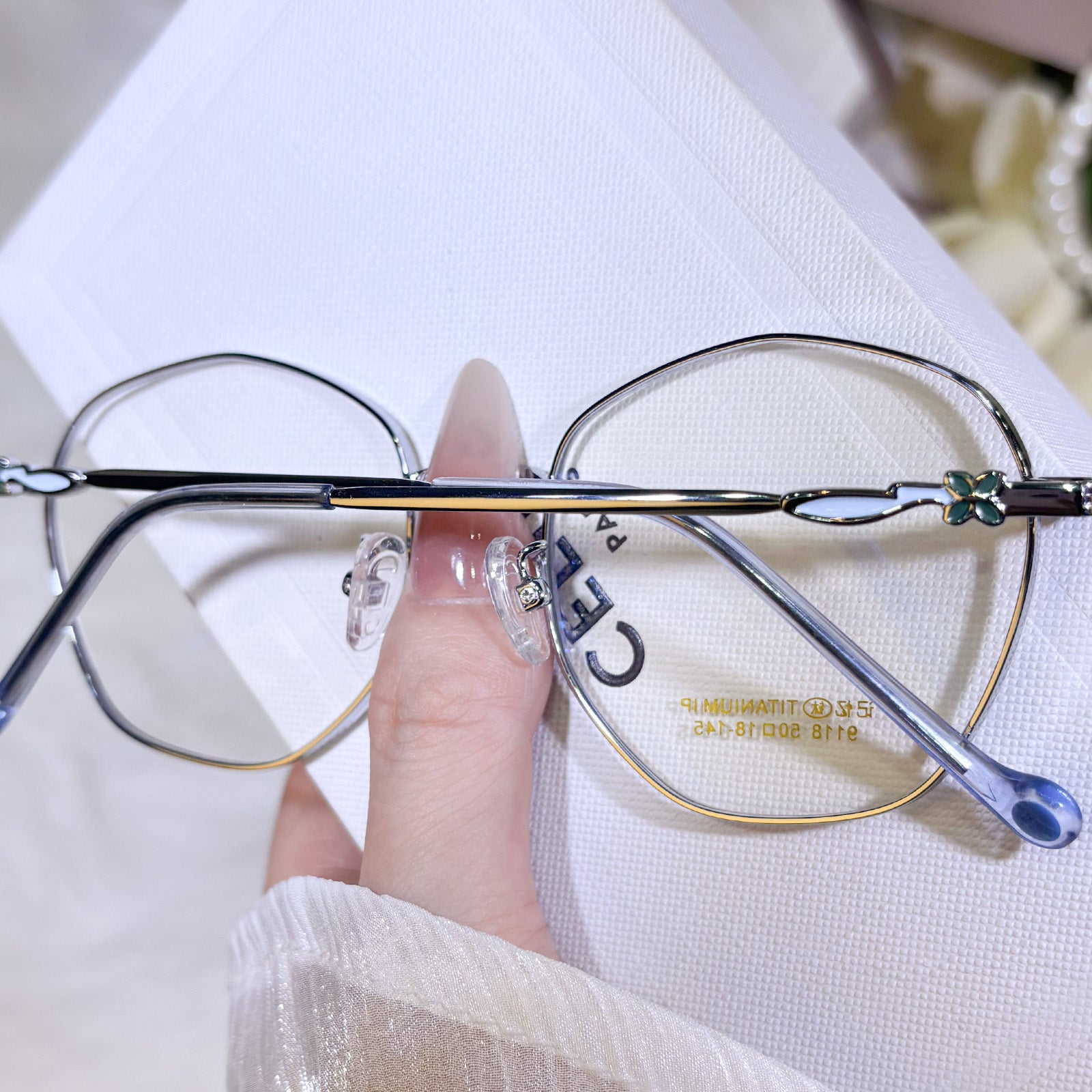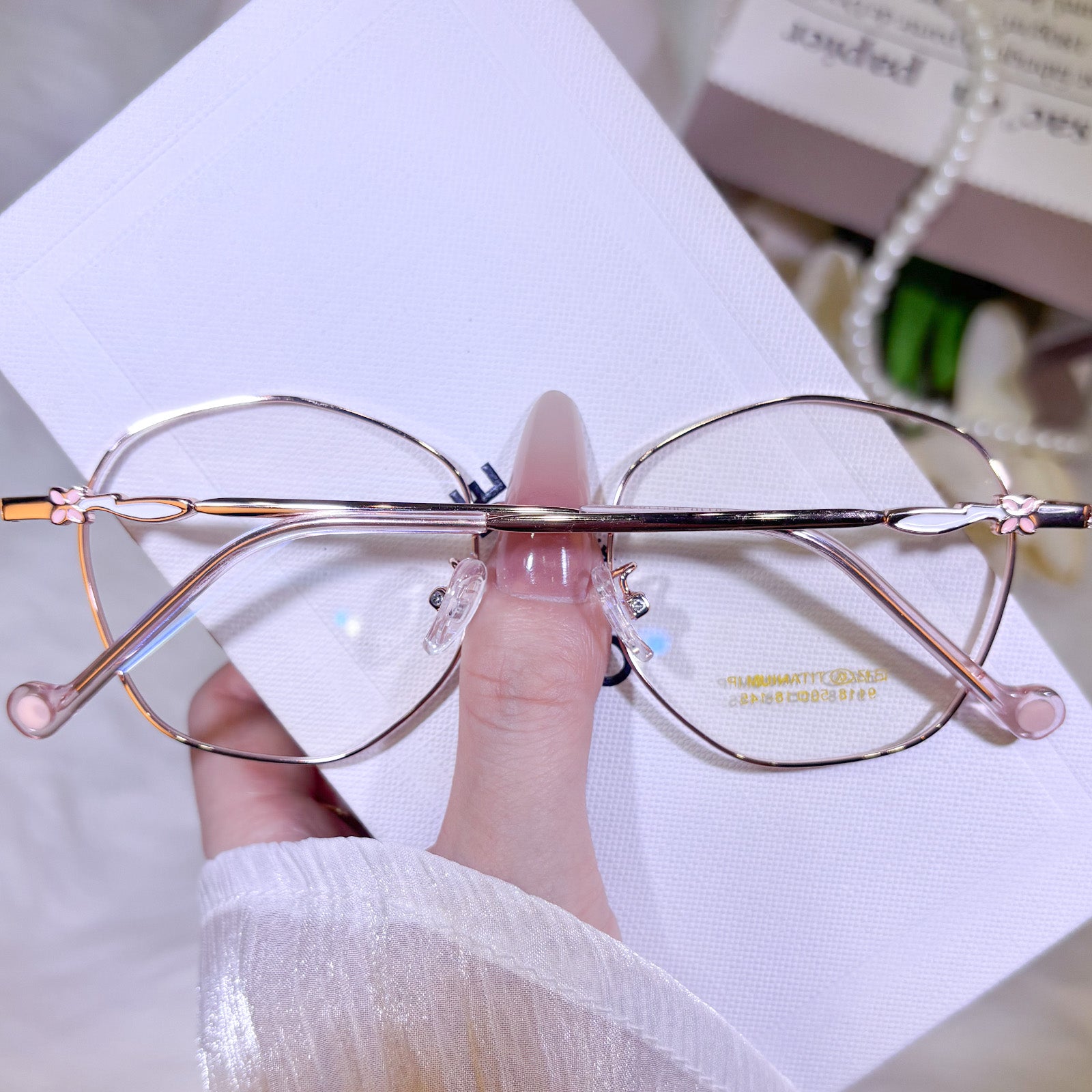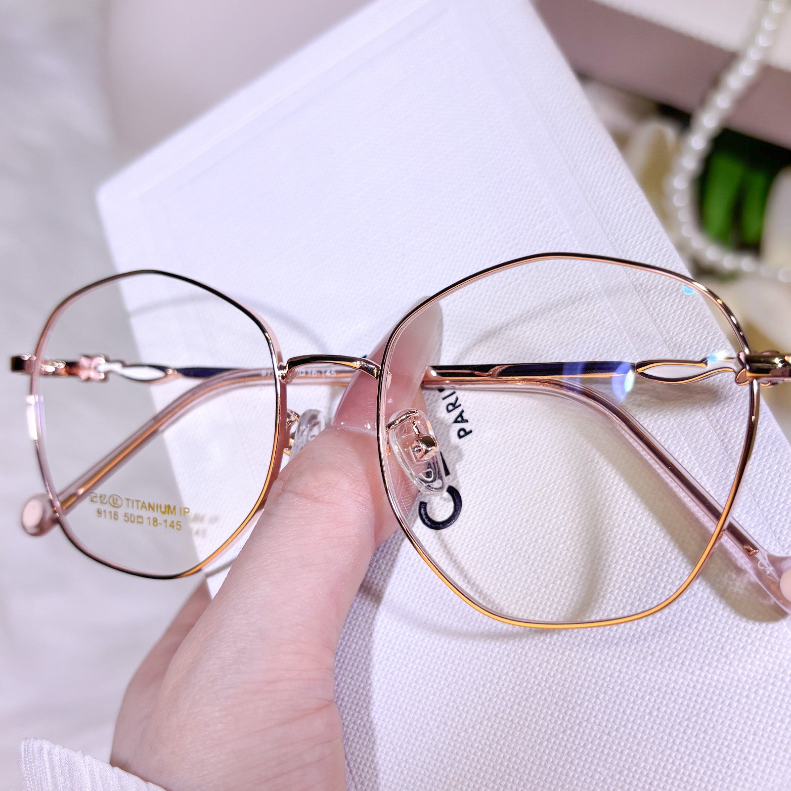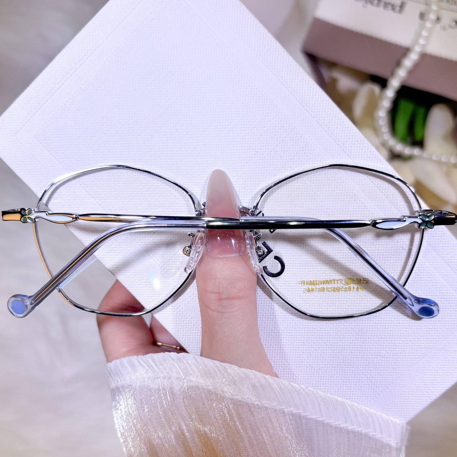 Women's classic geometric glasses, adorned with lovely floral details on the temples. Stylish and delicate design, gentle and elegant. Lightweight and versatile, perfect for daily wear.