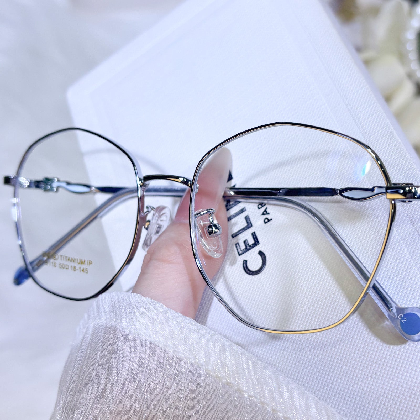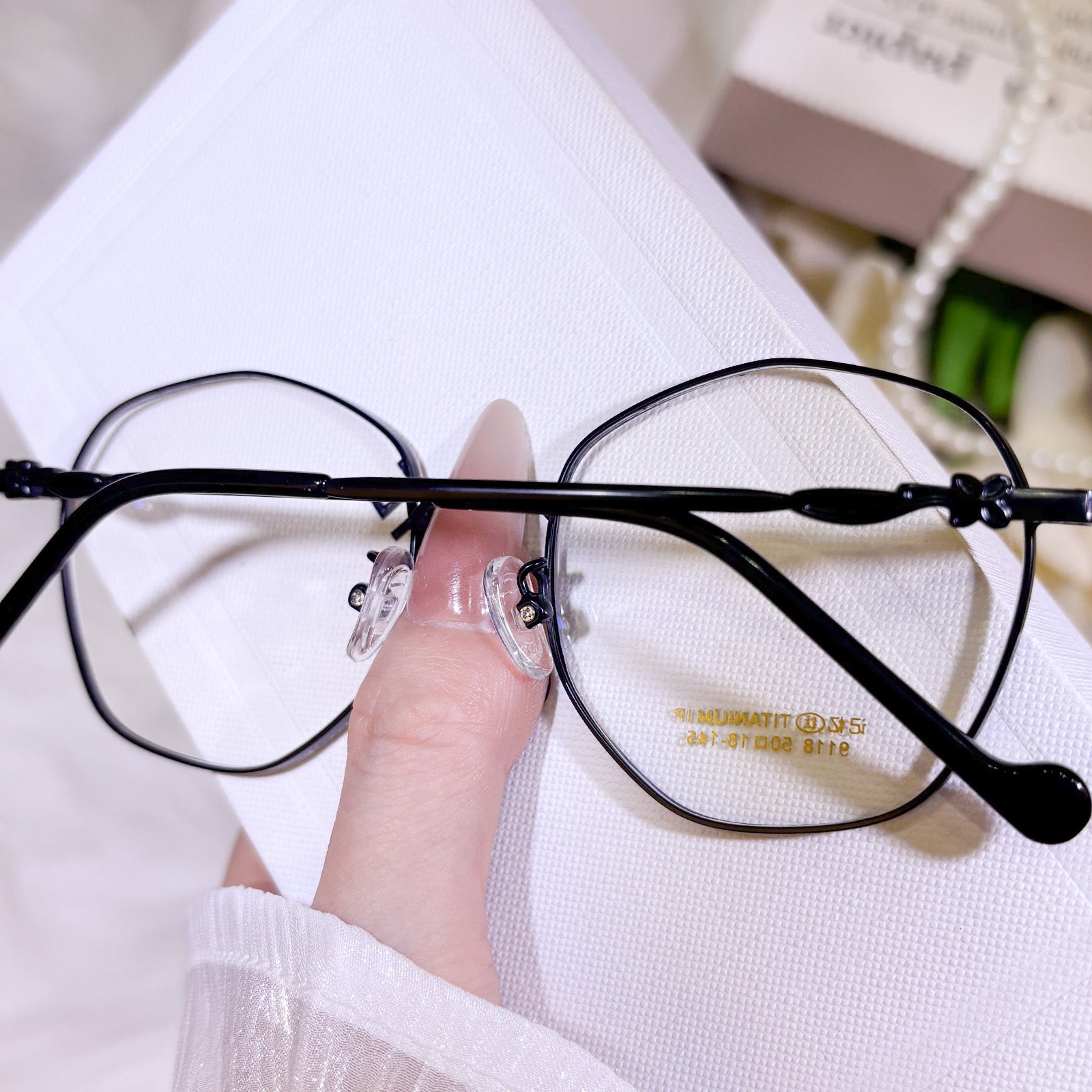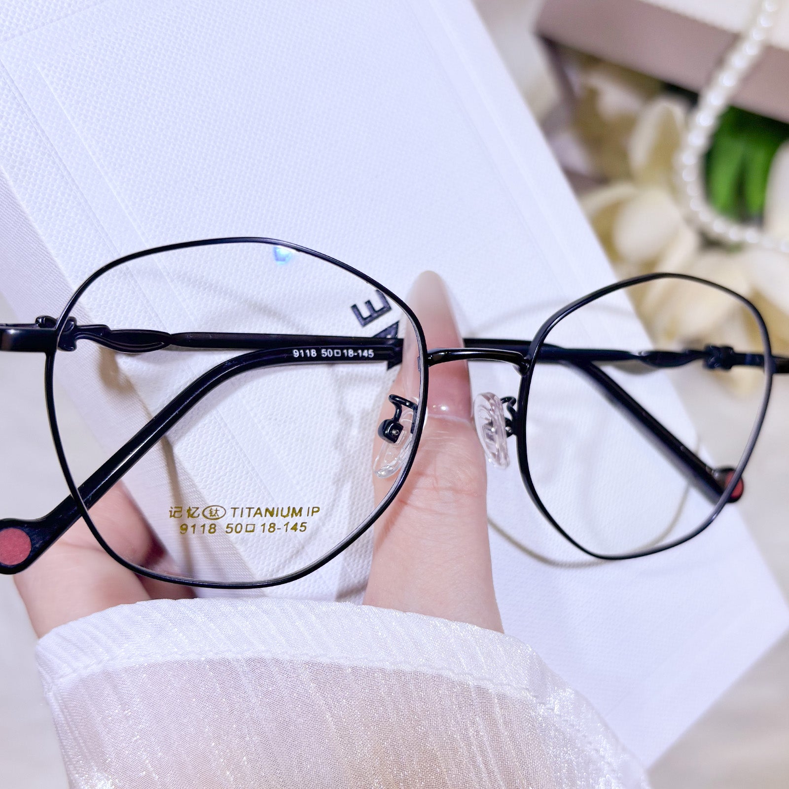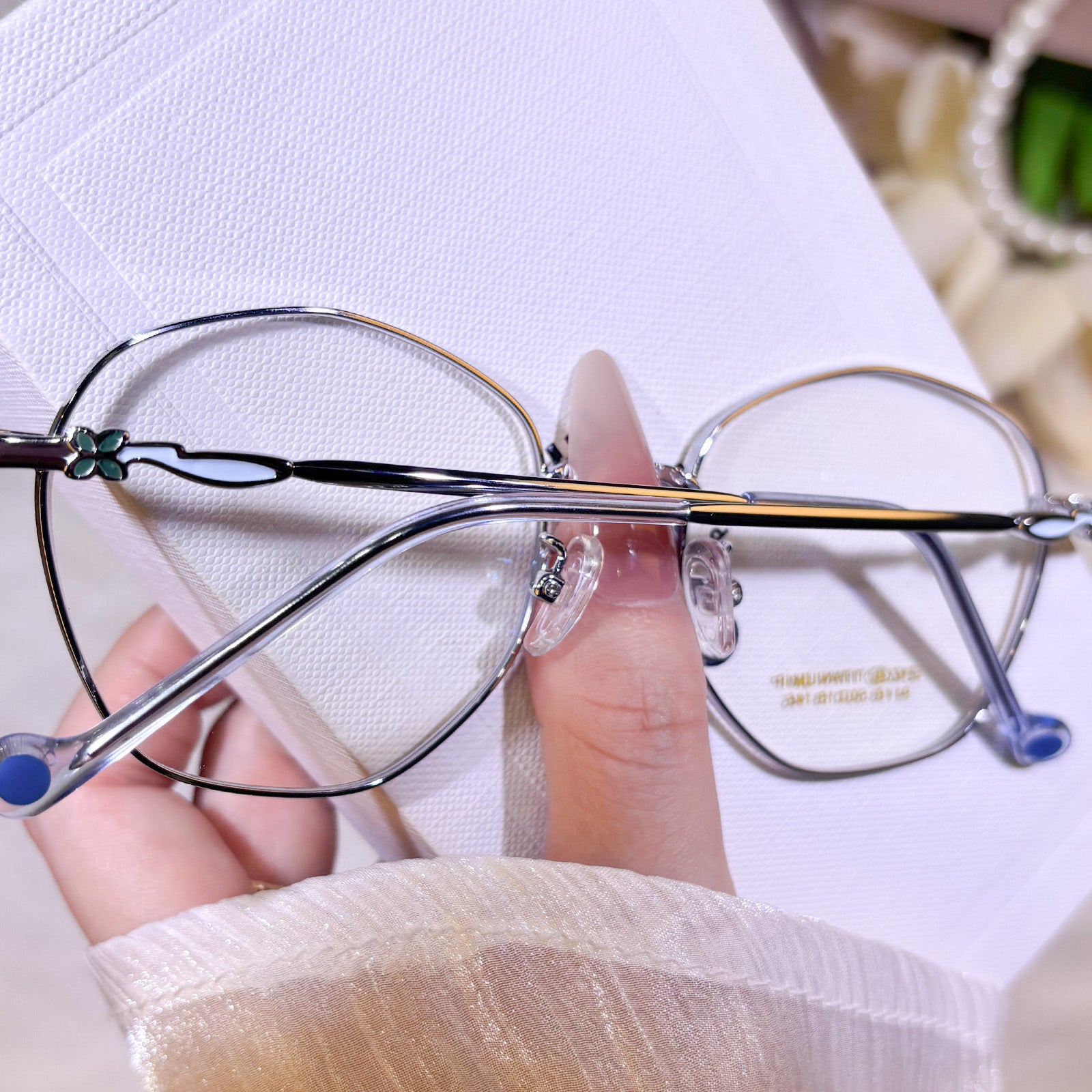 Women's classic geometric glasses, adorned with lovely floral details on the temples. Stylish and delicate design, gentle and elegant. Lightweight and versatile, perfect for daily wear.