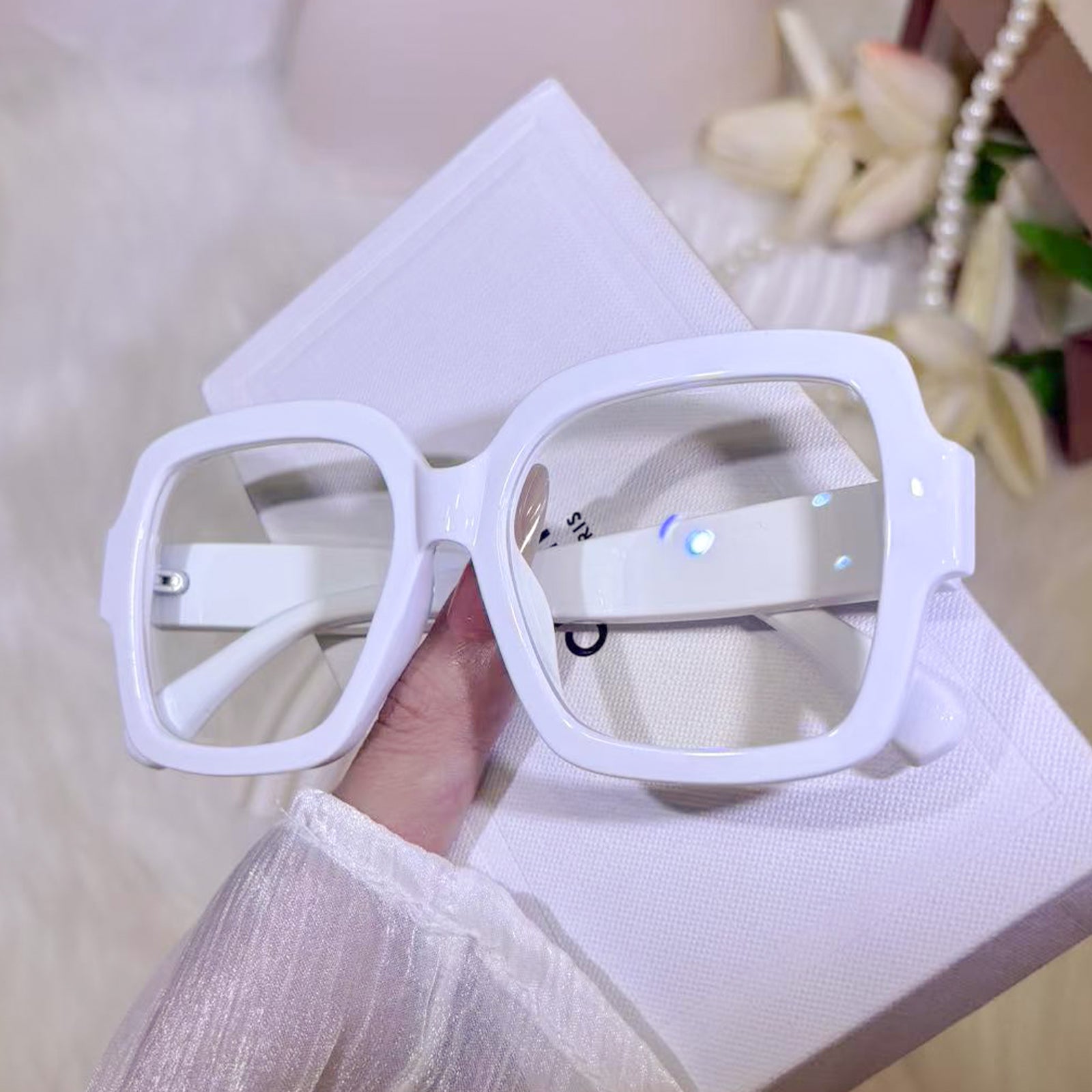 These oversized square glasses are a perfect mix of fashion and function. The bold frame not only adds a trendy touch but also beautifully flatters and balances the face shape. Versatile and stylish, they’re an easy match for both casual looks and chic outfits.