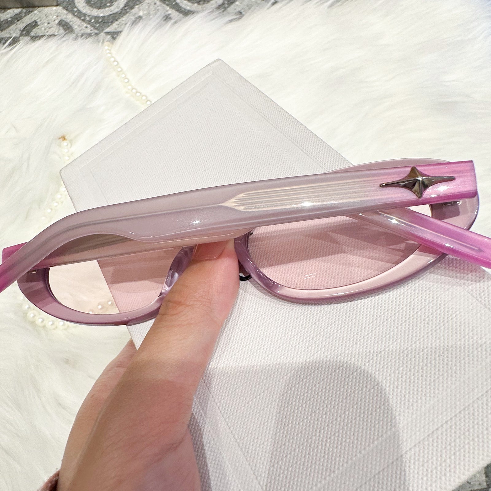 Light Pink-Purple Oval Sunglasses – featuring a fresh and dreamy color palette that instantly brings a youthful, girly charm. The soft tones and elegant oval shape create a playful yet sophisticated look, perfect for adding a sweet touch to any sunny day outfit.