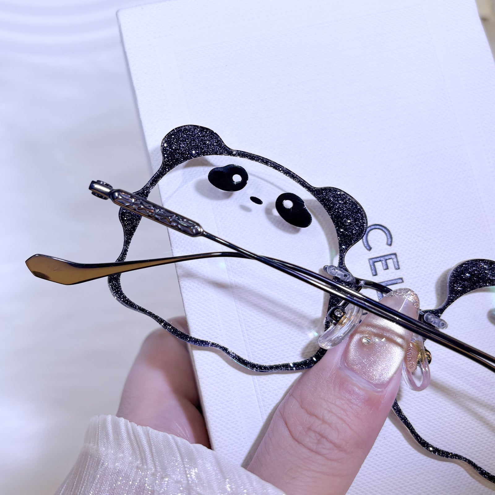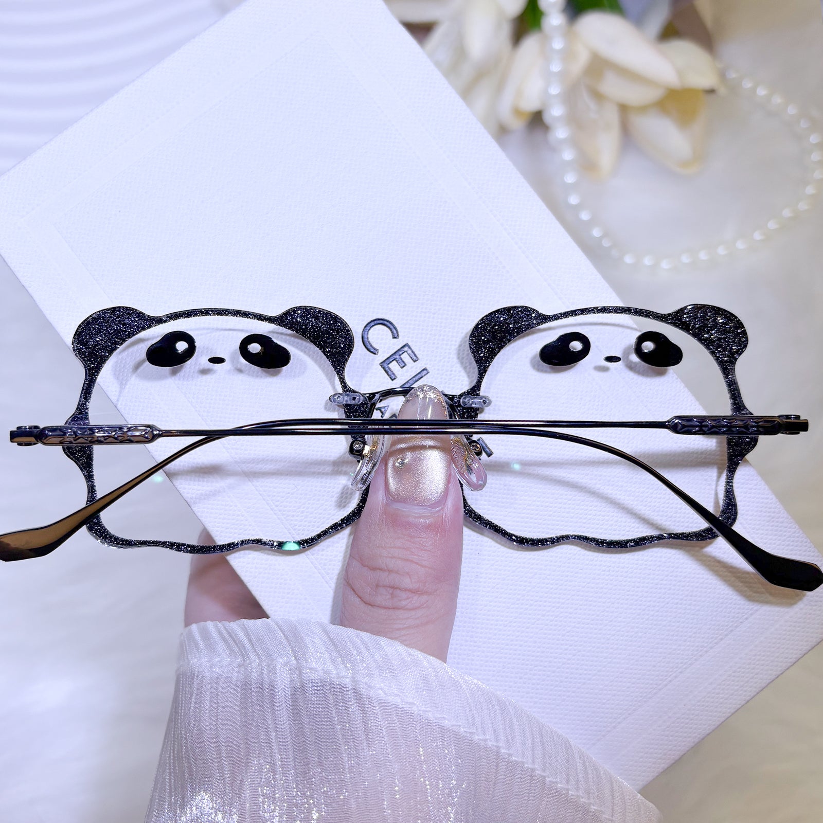 | Exclusive Design | Irresistibly cute and full of charm, this panda-shaped rimless eyewear features an all-black colorway for a classic, versatile look. The lenses are designed in the shape of an adorable little panda face, complete with tiny rounded ears that make the silhouette extra playful. Sweet, fun, and eye-catching — the perfect accessory for anyone who loves cute statement pieces.