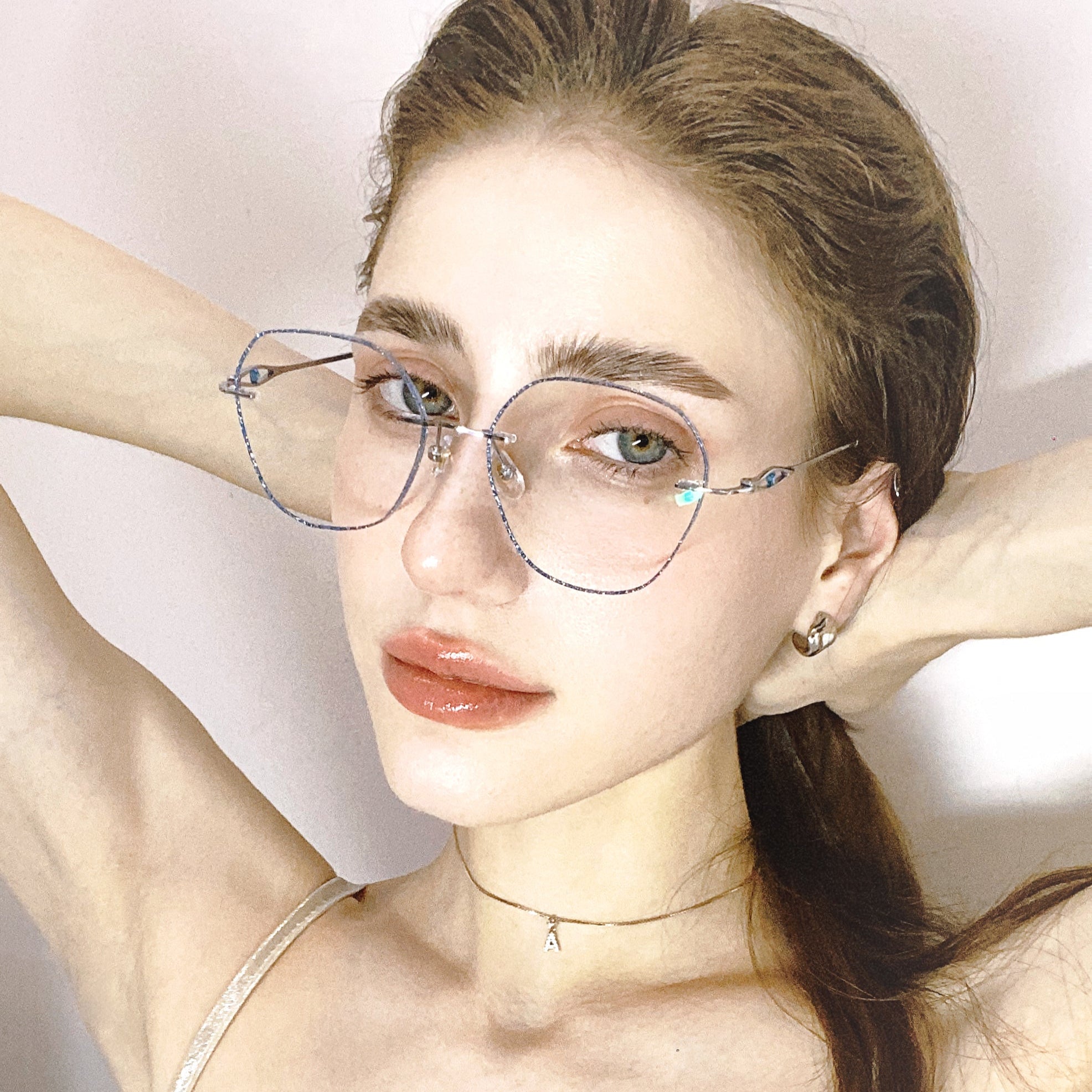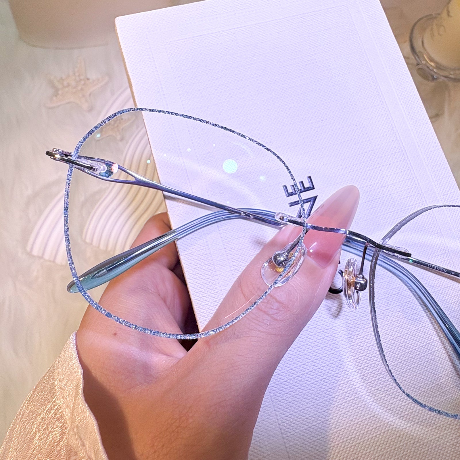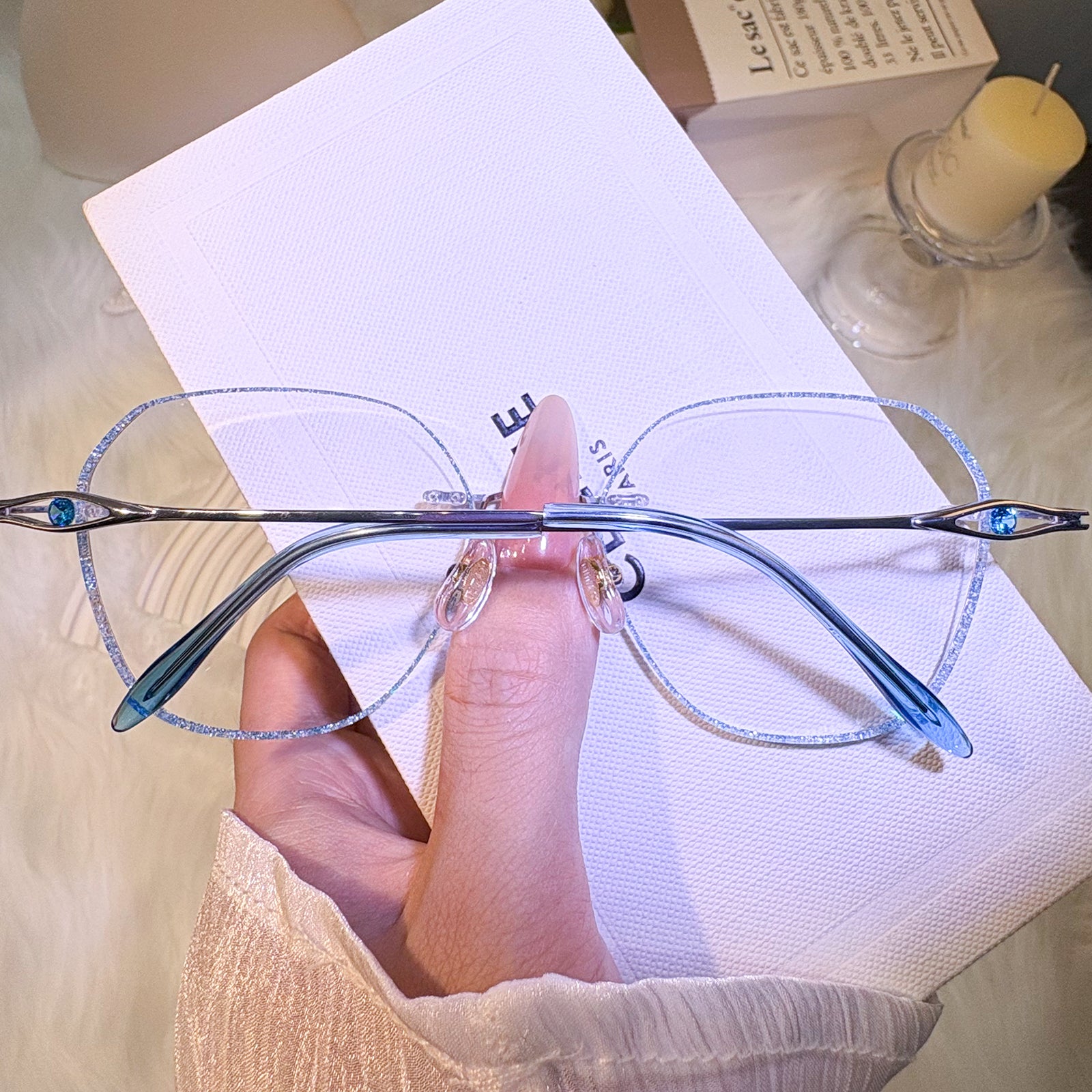| Exclusive Design | These rimless glasses exude elegance and refinement, delicately encircled by soft-toned glitter that adds a subtle yet captivating shimmer to the lenses. The temples sparkle with matching glitter accents, creating a harmonious and eye-catching finish. Lightweight and graceful, this pair is perfect for those who appreciate understated luxury with a radiant touch.